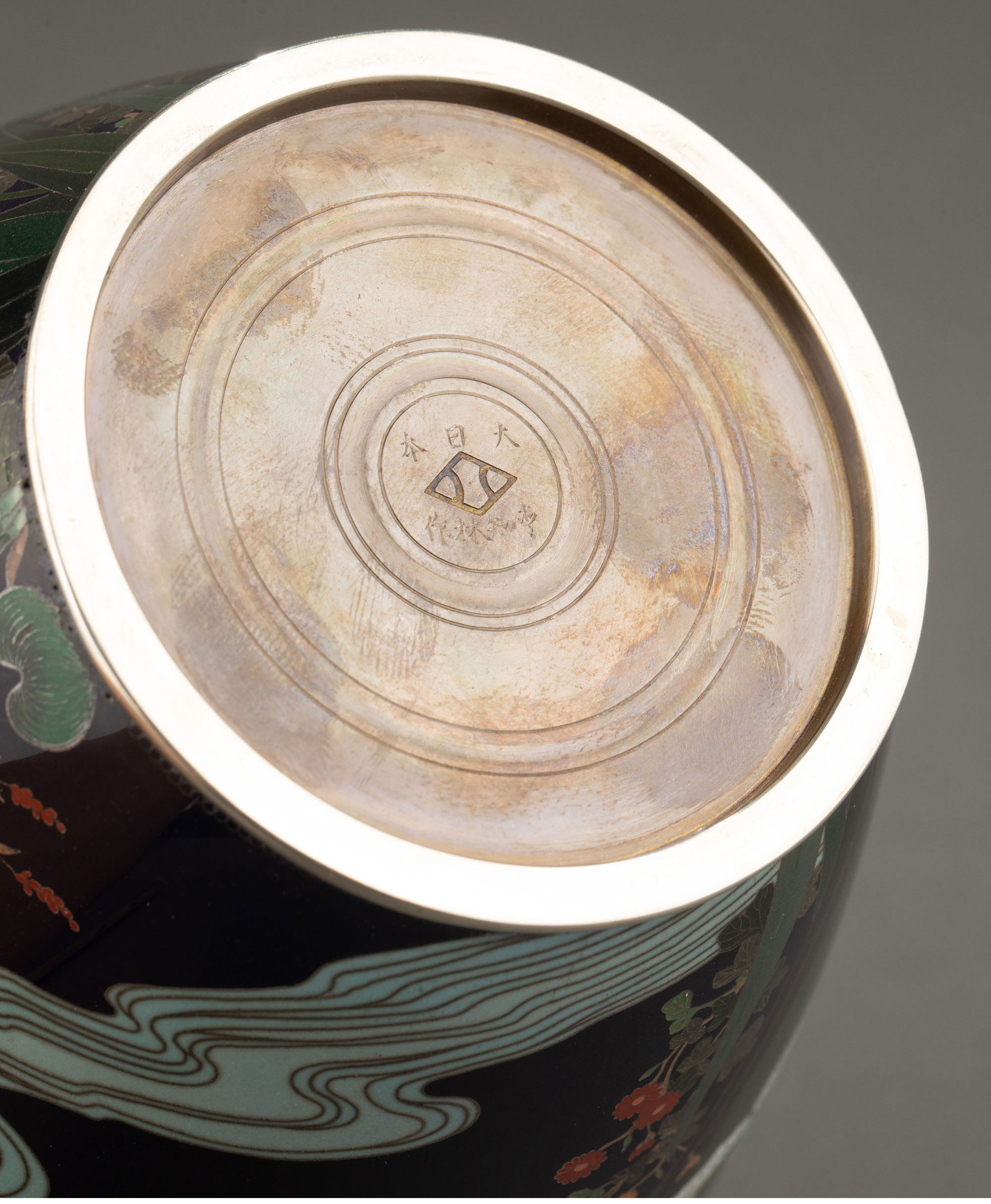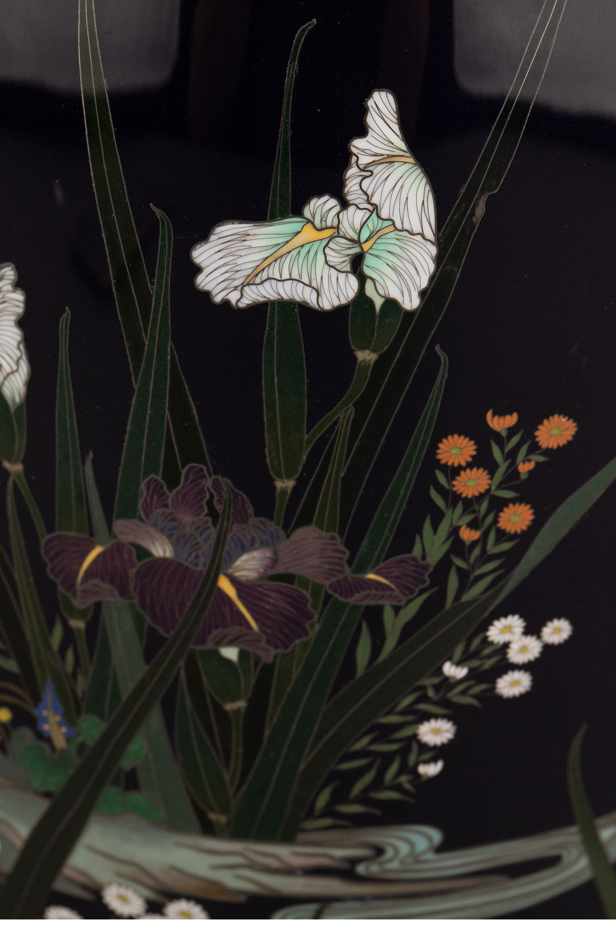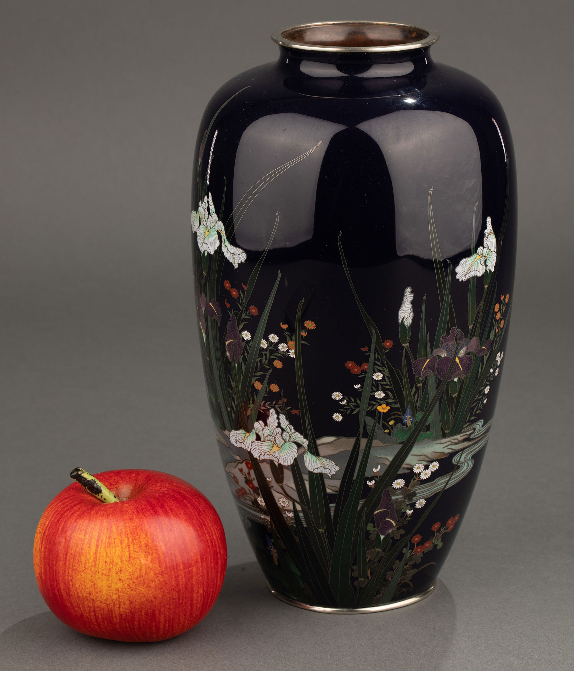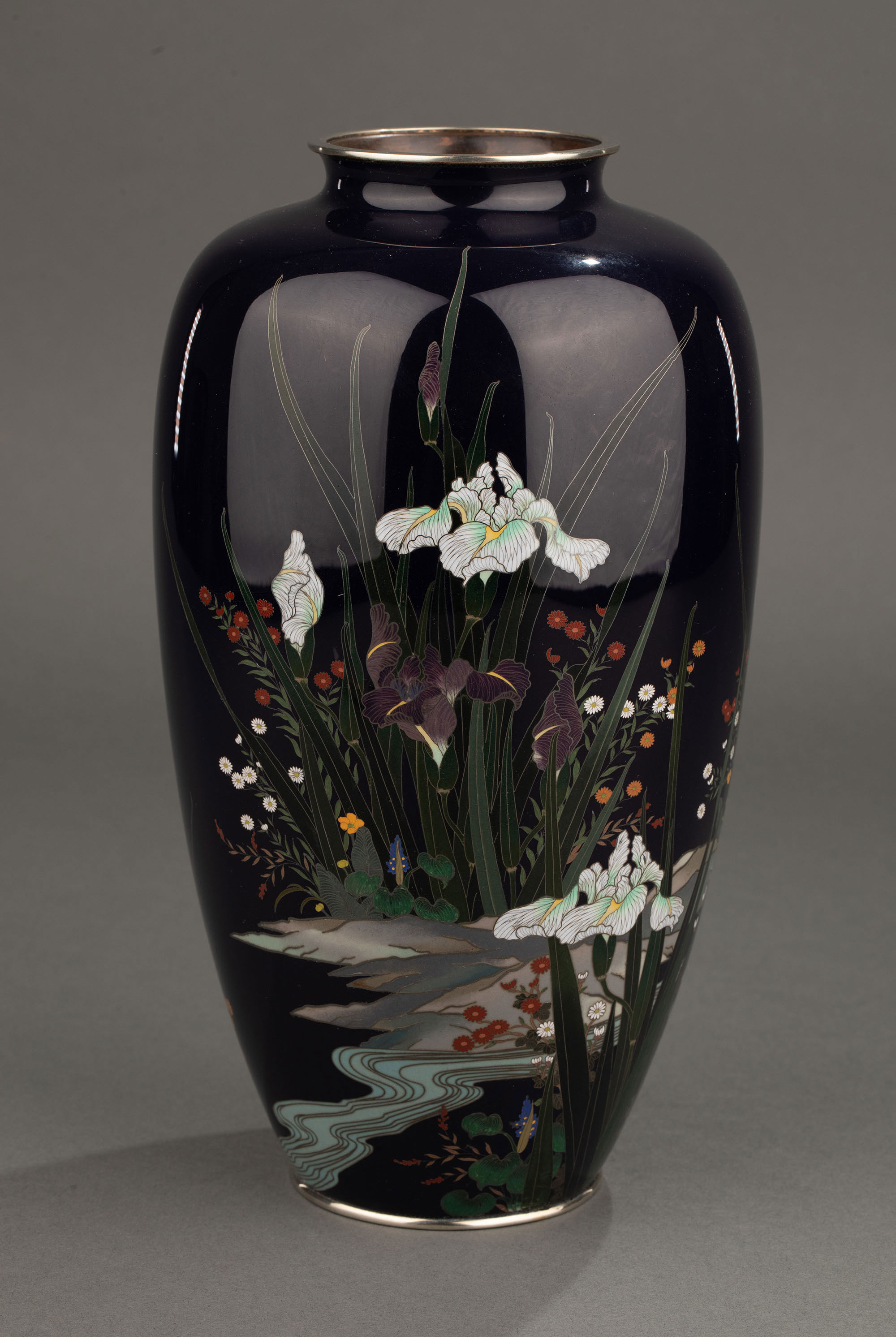 1910年代日本明治时期出品「鸢尾」主题银胎七宝烧花瓶