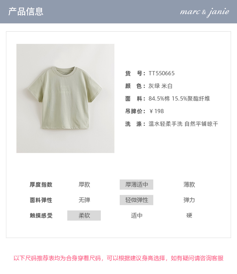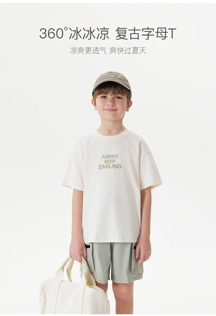 【凉感透气】马克珍妮男女童字母运动短袖T恤 儿童上衣夏装550665