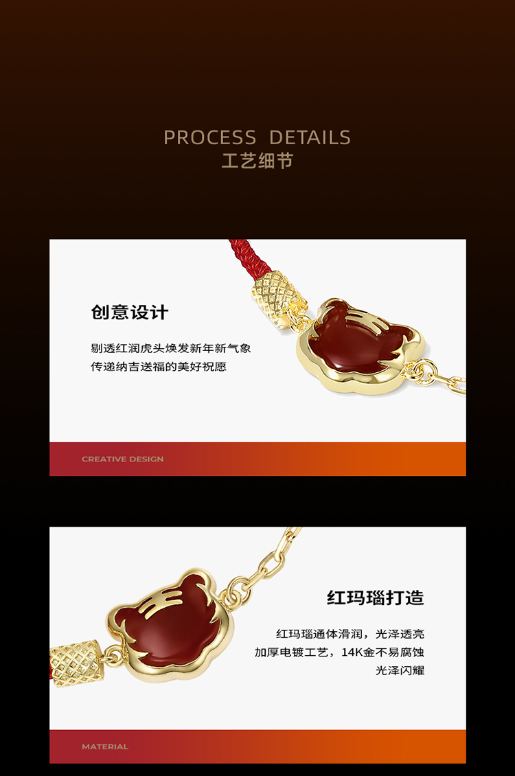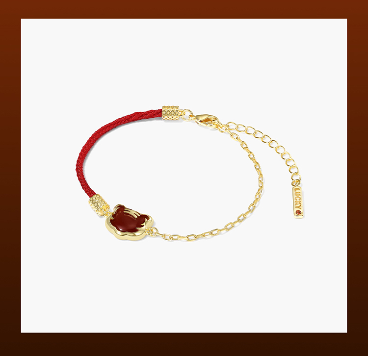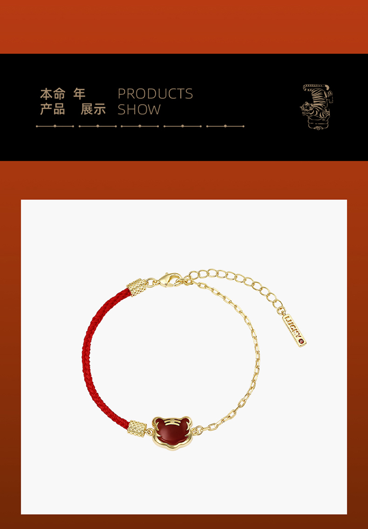 ZEGL设计师本命年礼物虎年鸿运女红绳手链生肖属虎红玛瑙小众手饰
