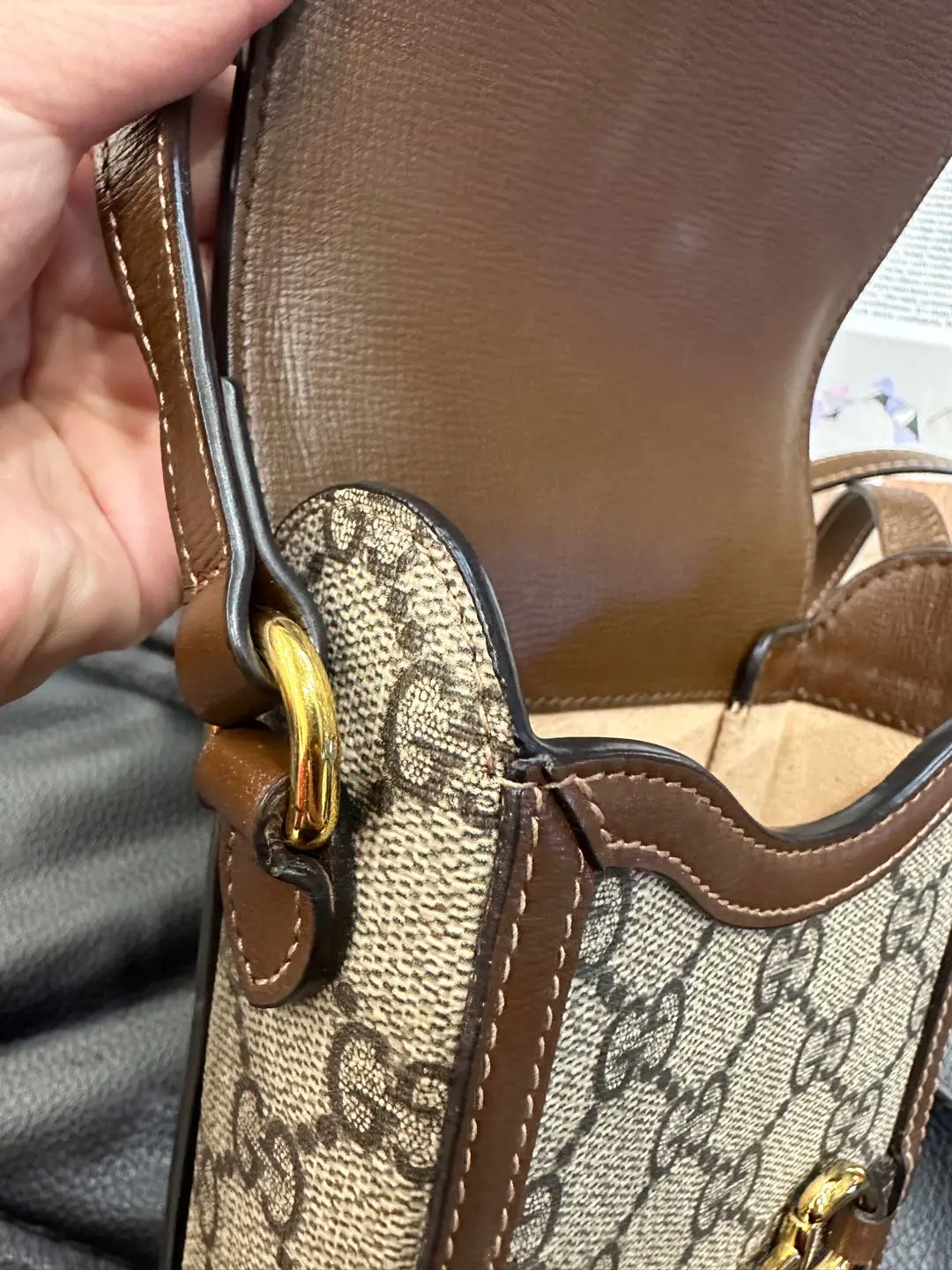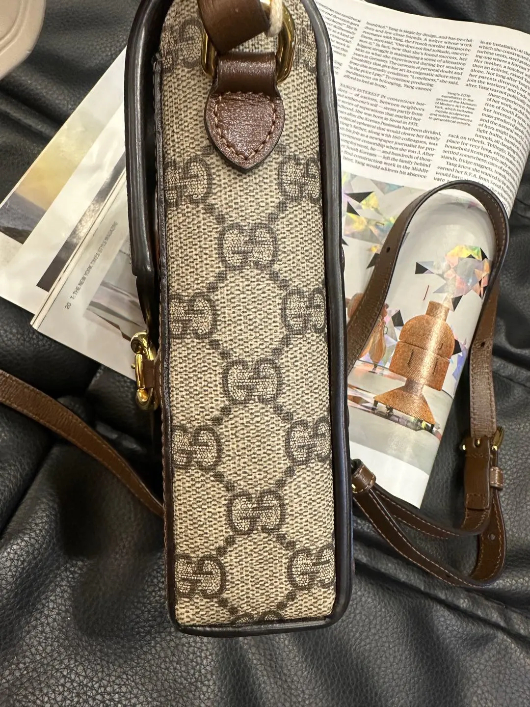 【商品详情】正品二手 Gucci 老花 拼皮 1955 手机包📱95新 11*17。磁吸扣正常使用感。复古时尚
