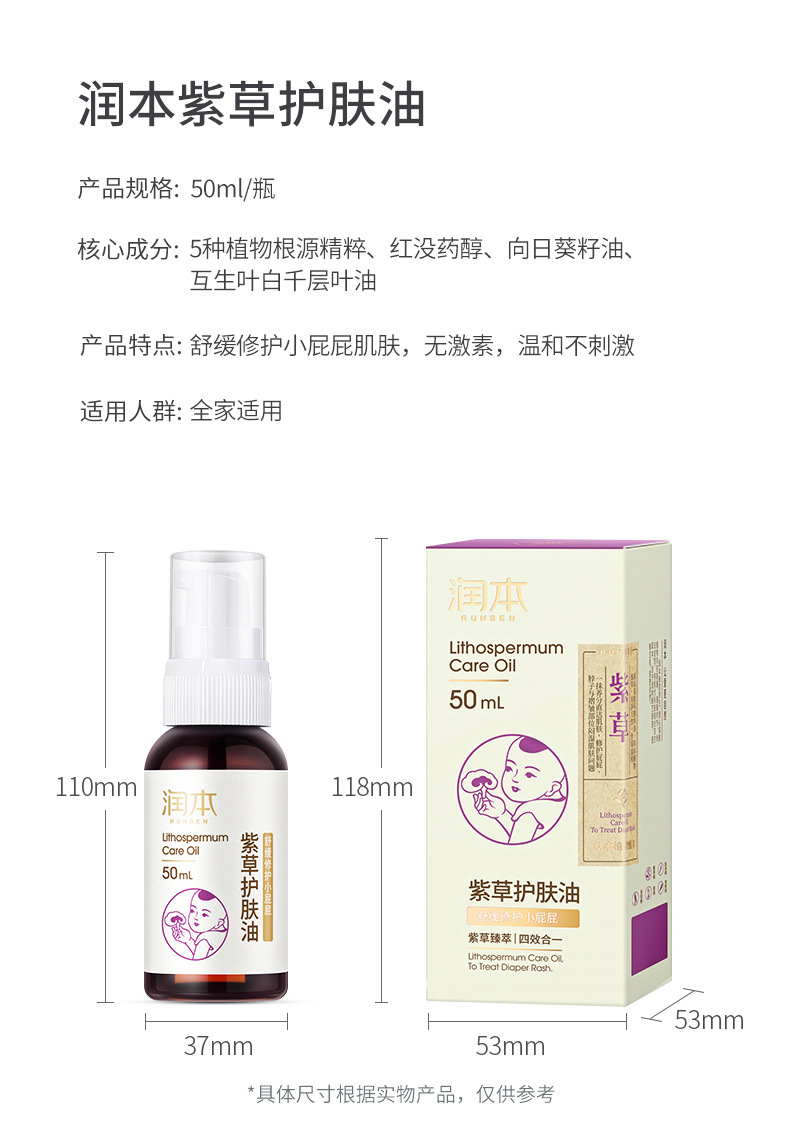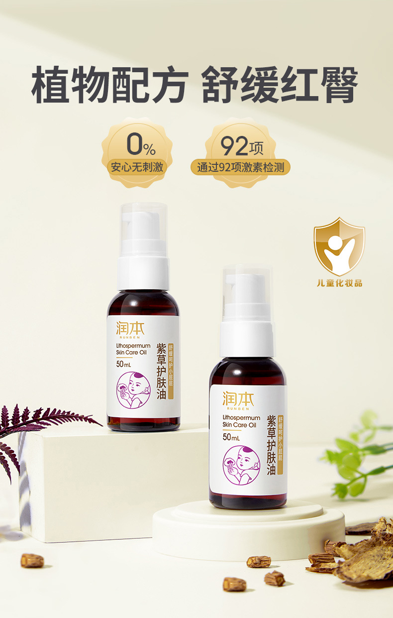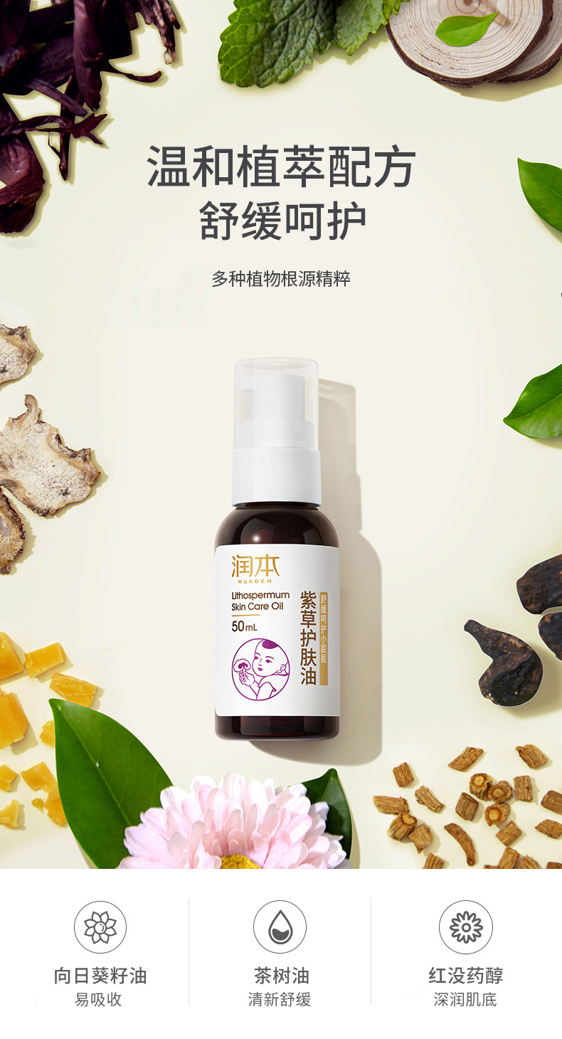 【2瓶装】润本紫草护肤油婴儿防淹脖润肤按摩油舒缓修护小屁屁新生儿护臀油