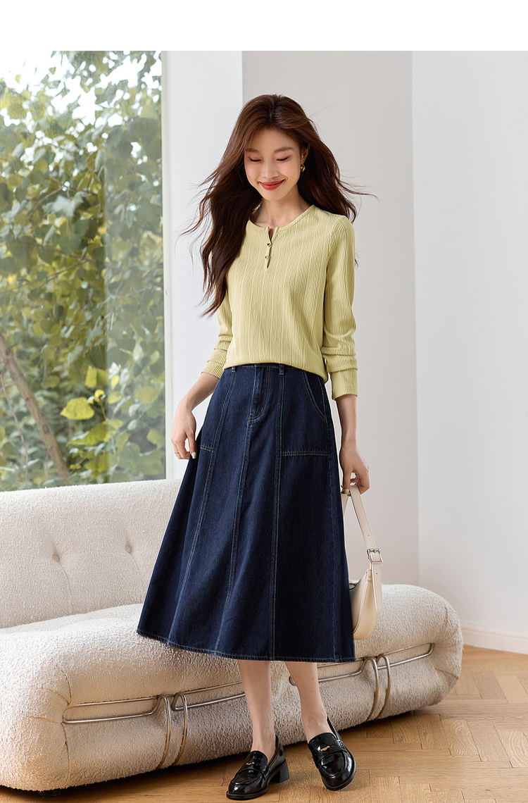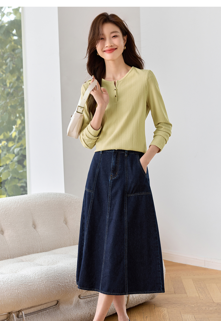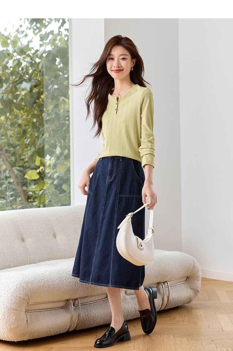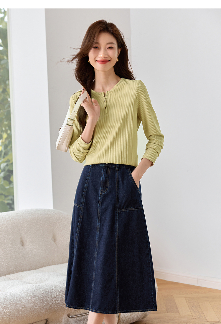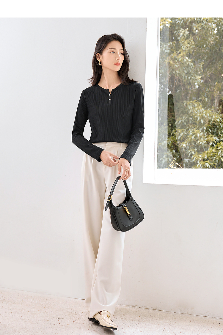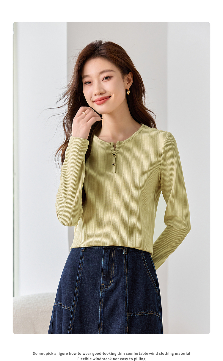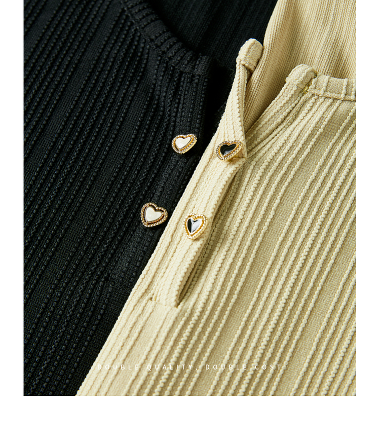 【专属特价】熙世界爱心纽扣肌理针织T恤长袖2025新款宽松圆领减龄打底上衣