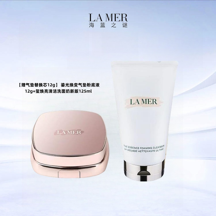 【气垫赠同款替换芯12g】海蓝之谜 鎏光焕变气垫粉底液12g+碧玺焕亮清洁洗面奶新版125ml