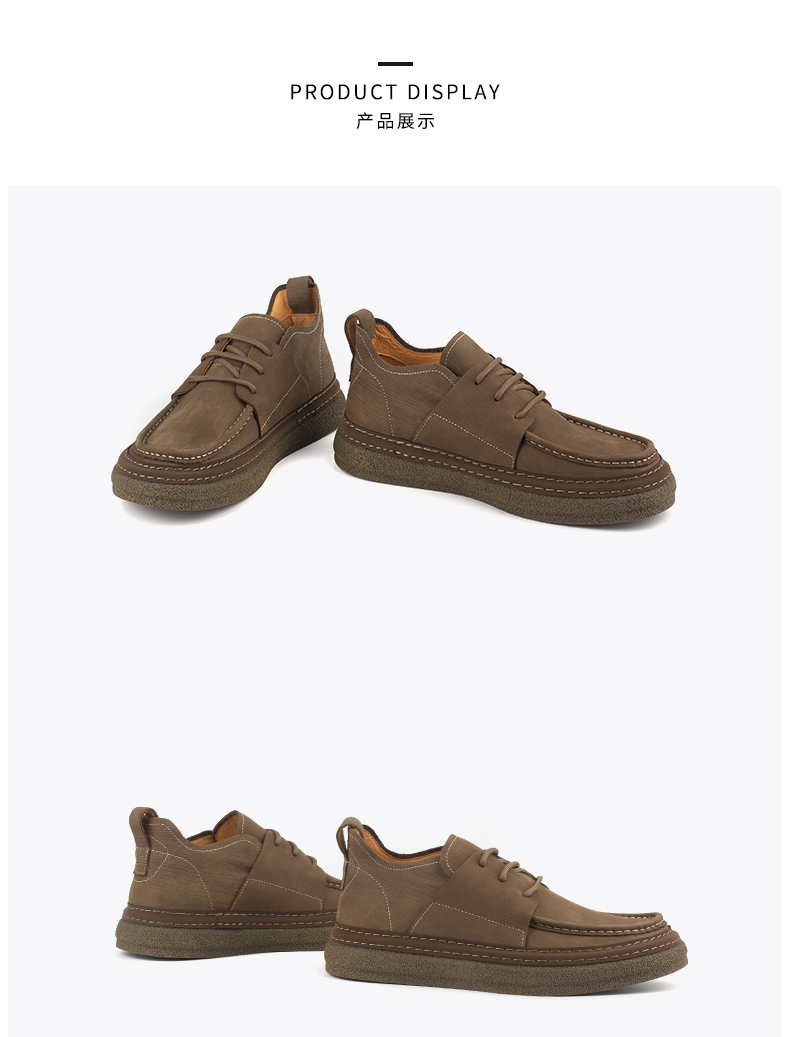 和诚行 2024秋冬新款复古真皮磨砂百搭系带休闲鞋男工装鞋1320082