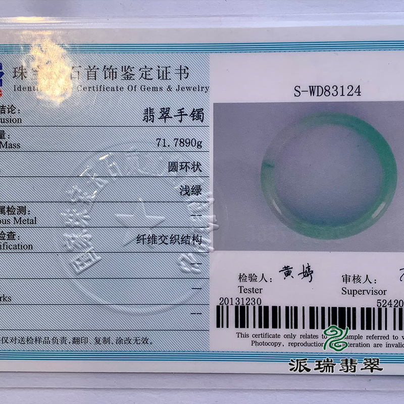 派瑞翡翠 翡翠手镯 糯种 浅绿