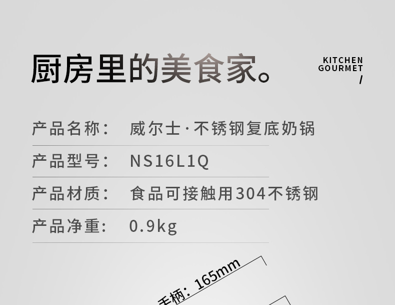 【分仓直发包邮】爱仕达威尔士不锈钢复底奶锅NS16L1Q