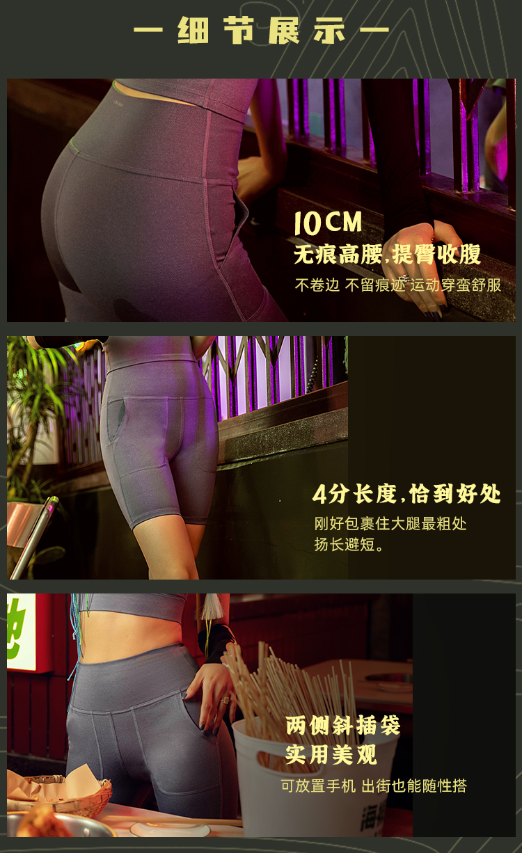 【高弹面料】火锅国潮丹宁系列10cm高腰提臀运动裤四分裤紧身瑜伽裤女