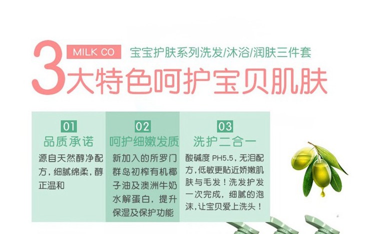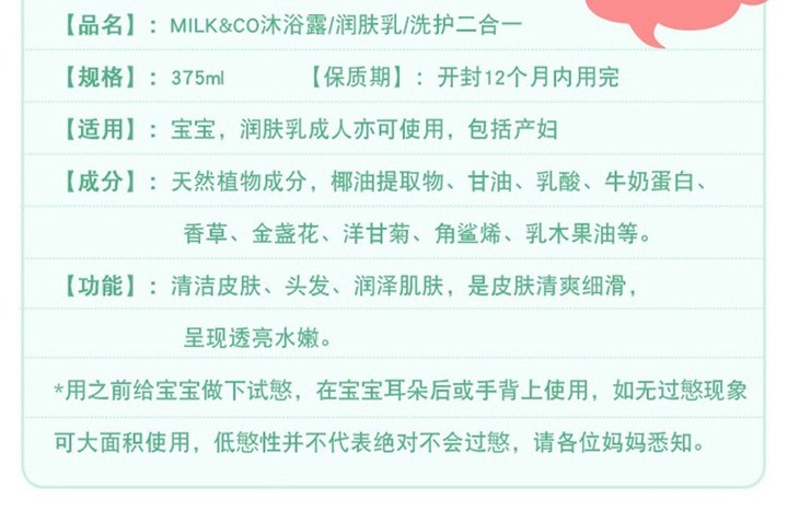 【保税仓】Milk&Co 婴儿挤压式洗发护发二合一 375ml/瓶 新款