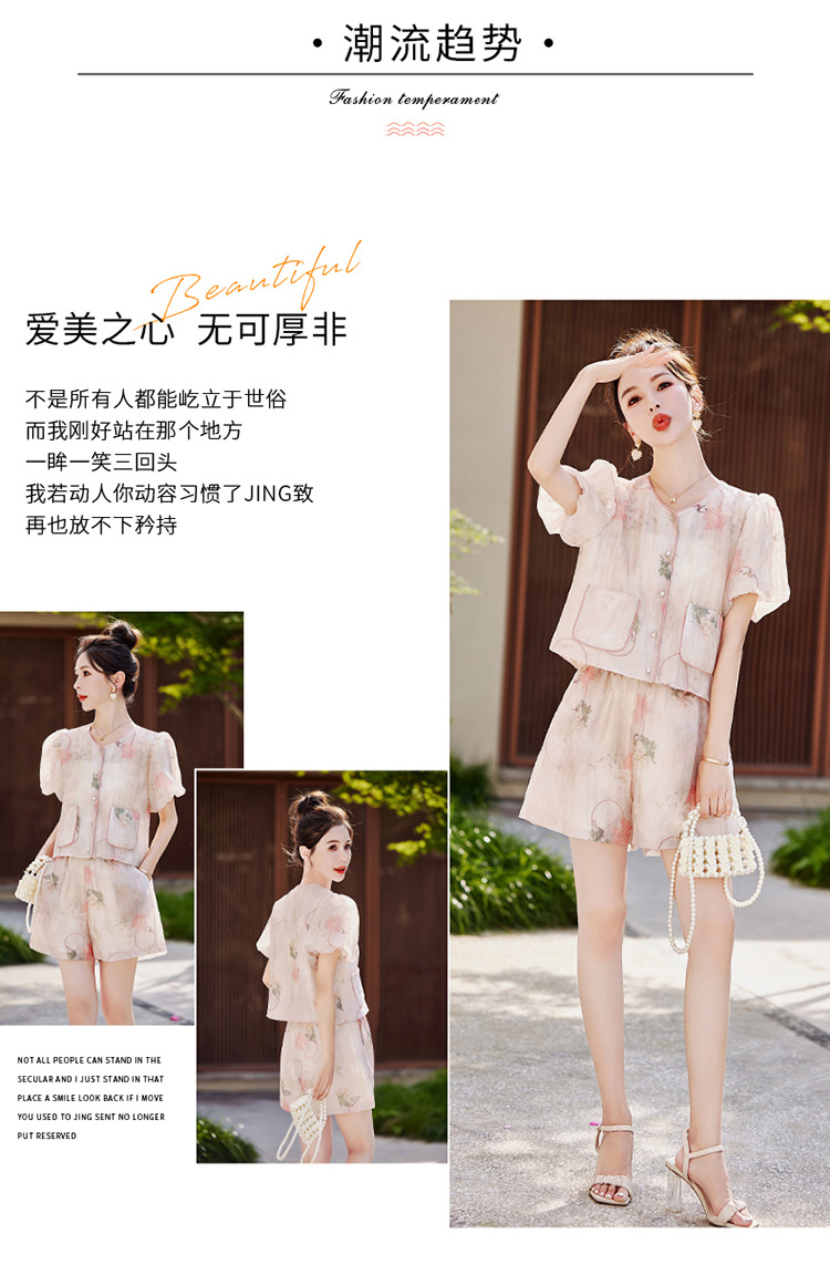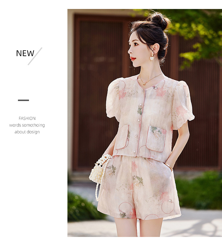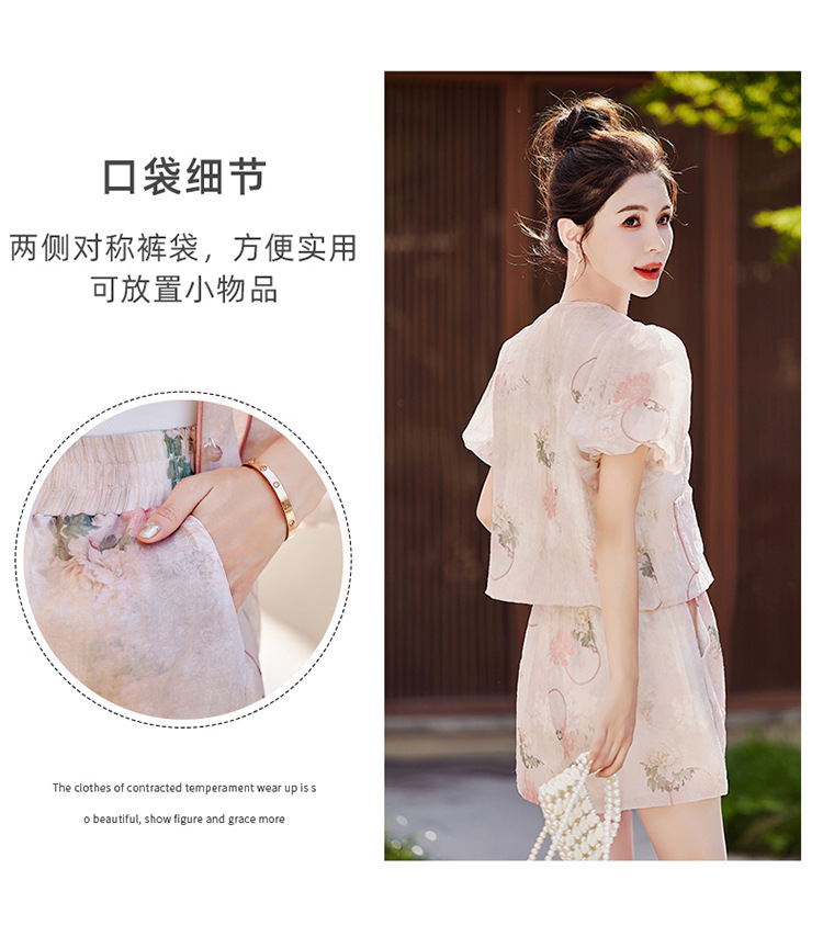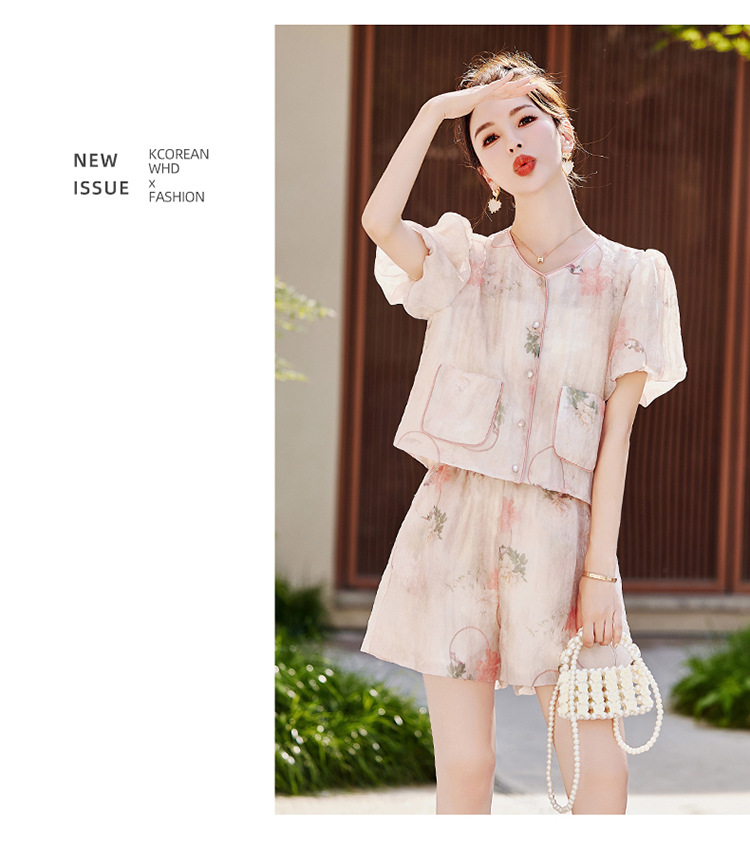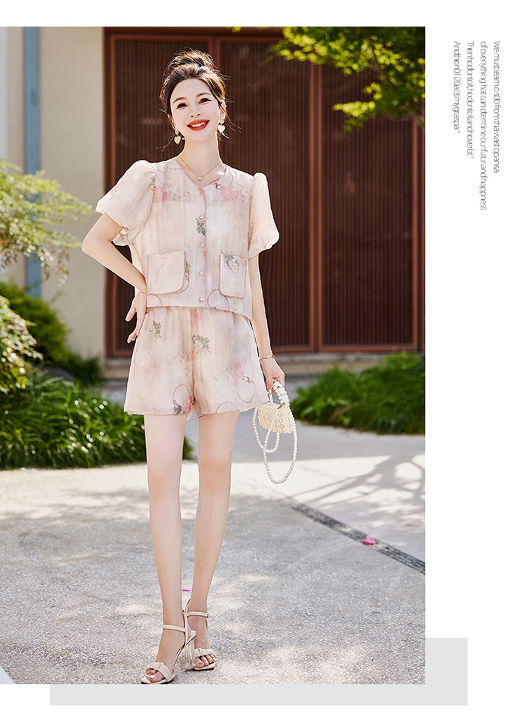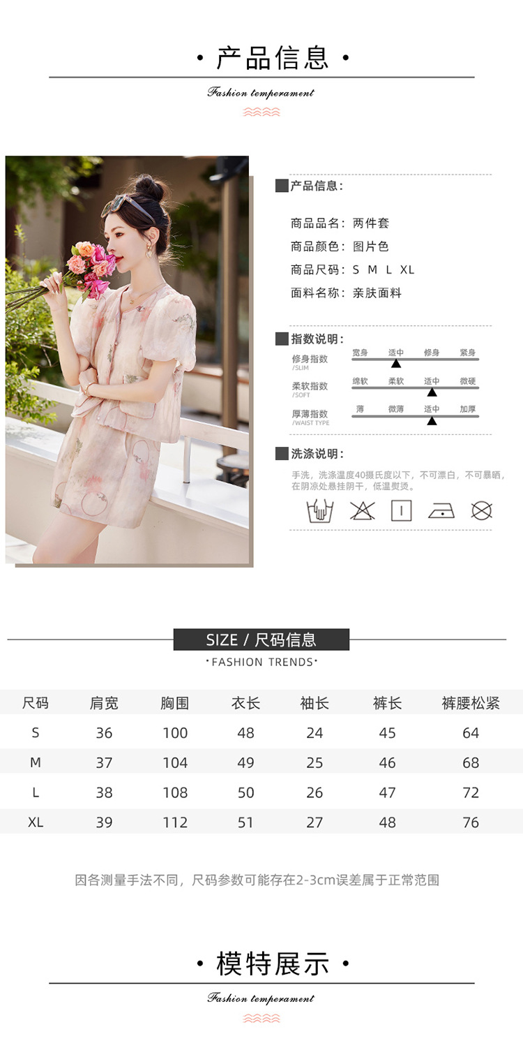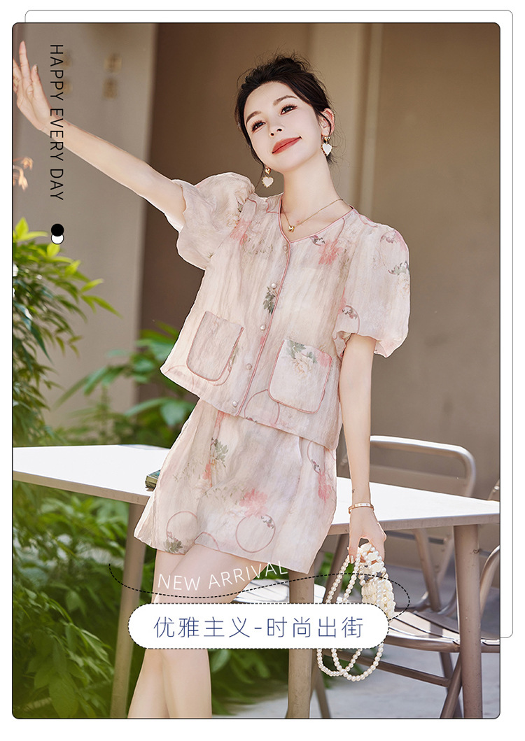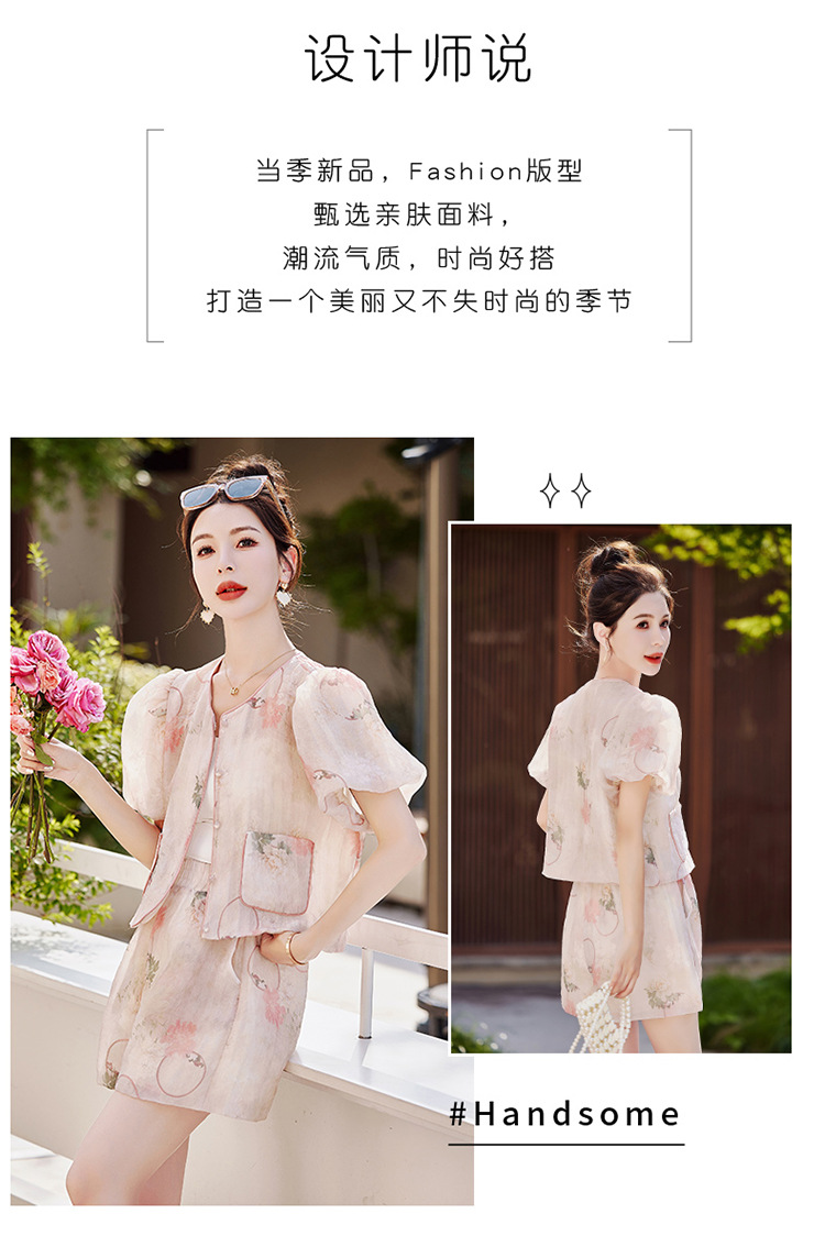 2024夏新款法式温柔小个子小香风短裤泡泡袖上衣两件套HR-HMG2869