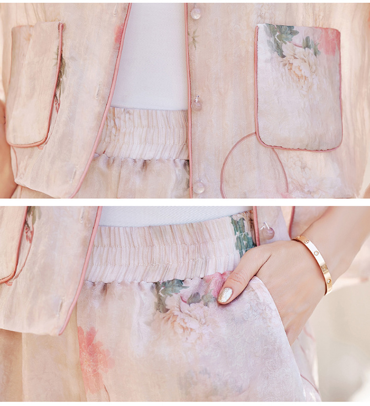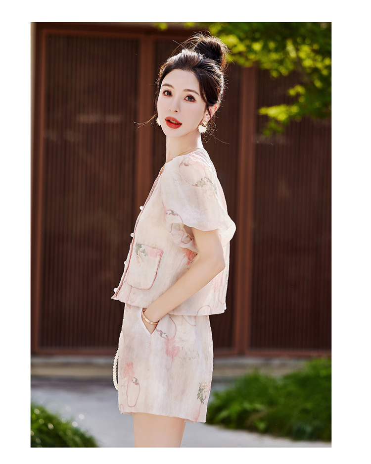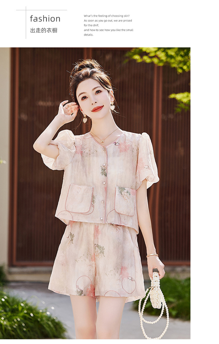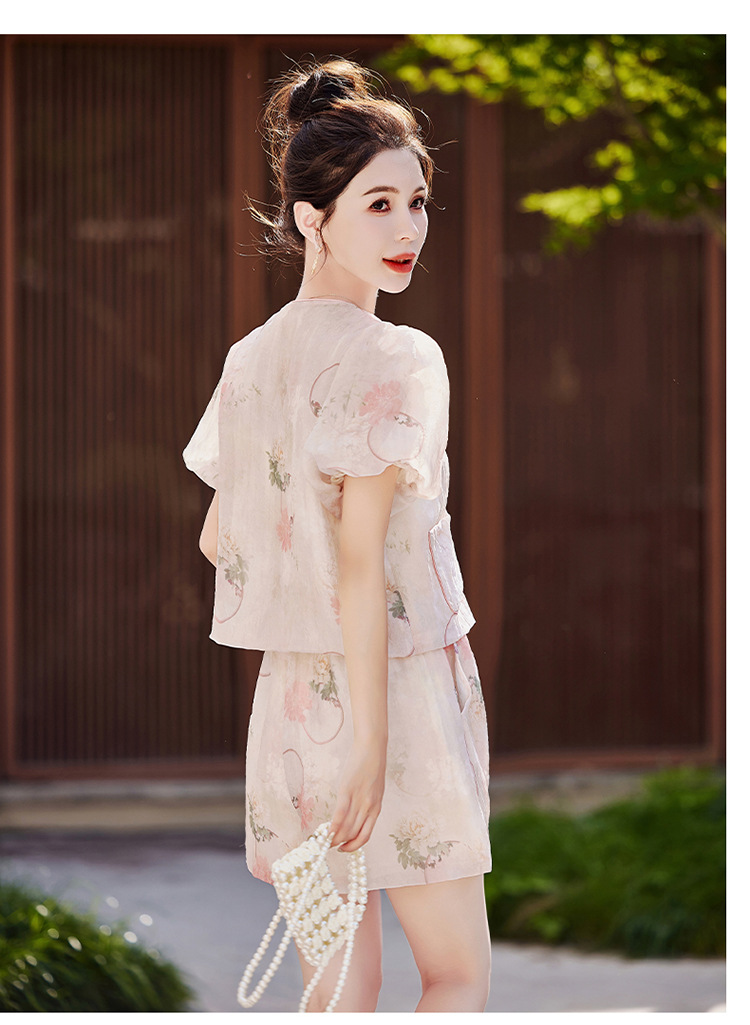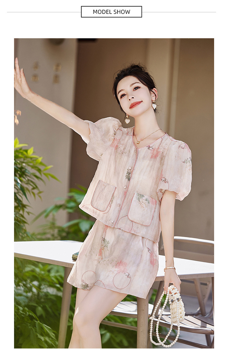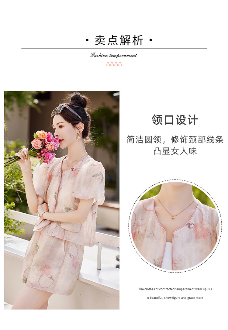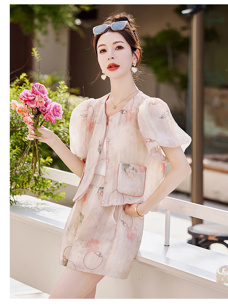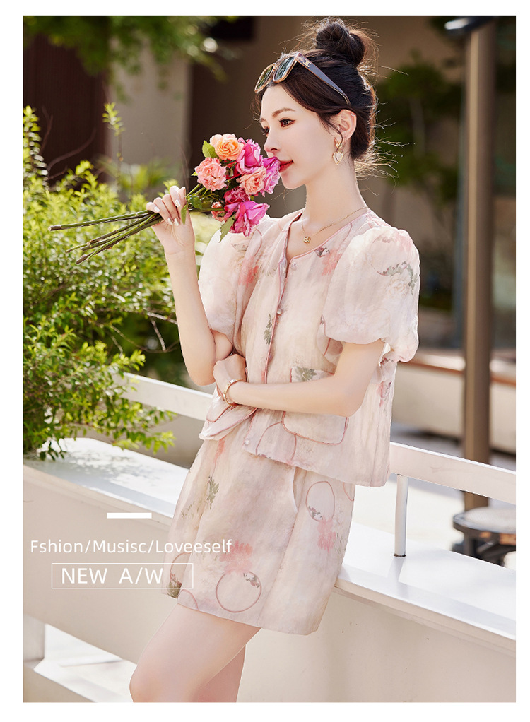 2024夏新款法式温柔小个子小香风短裤泡泡袖上衣两件套HR-HMG2869