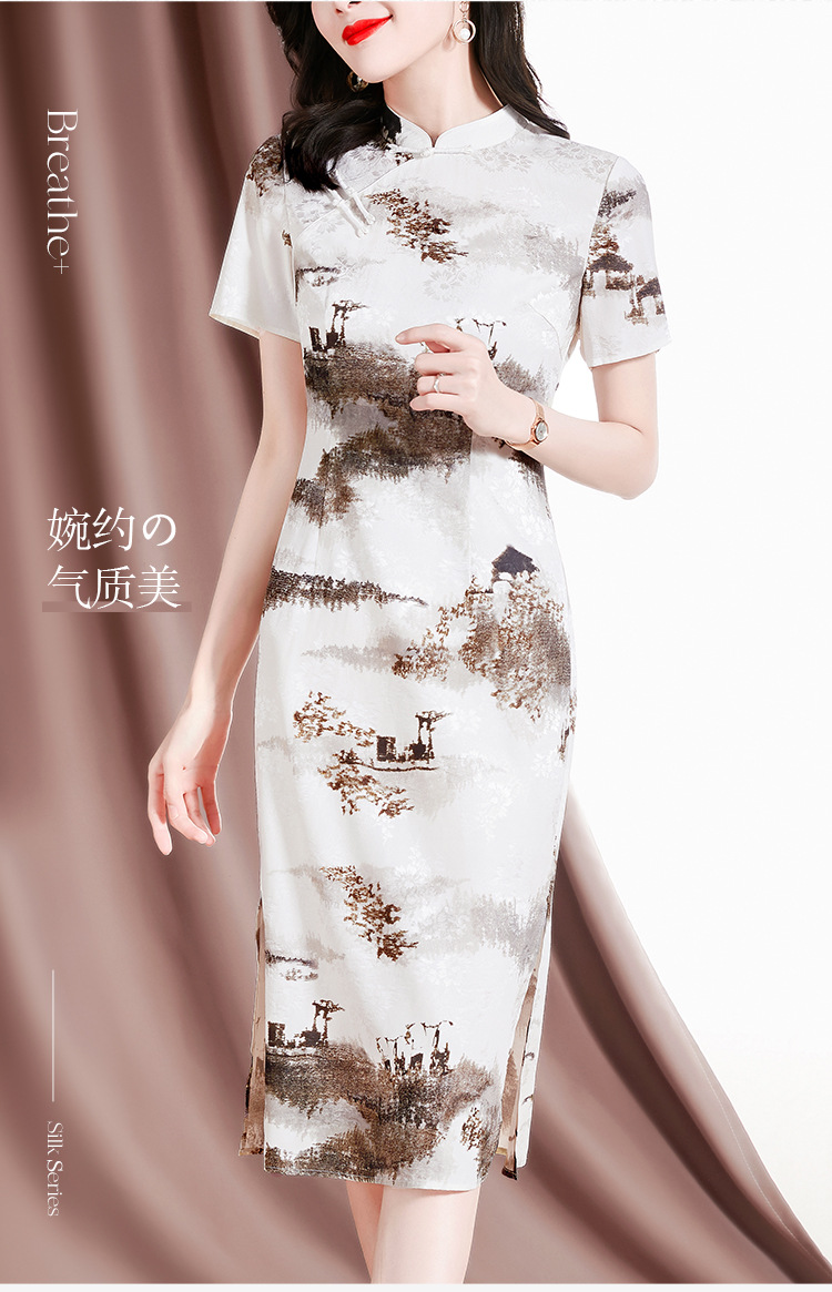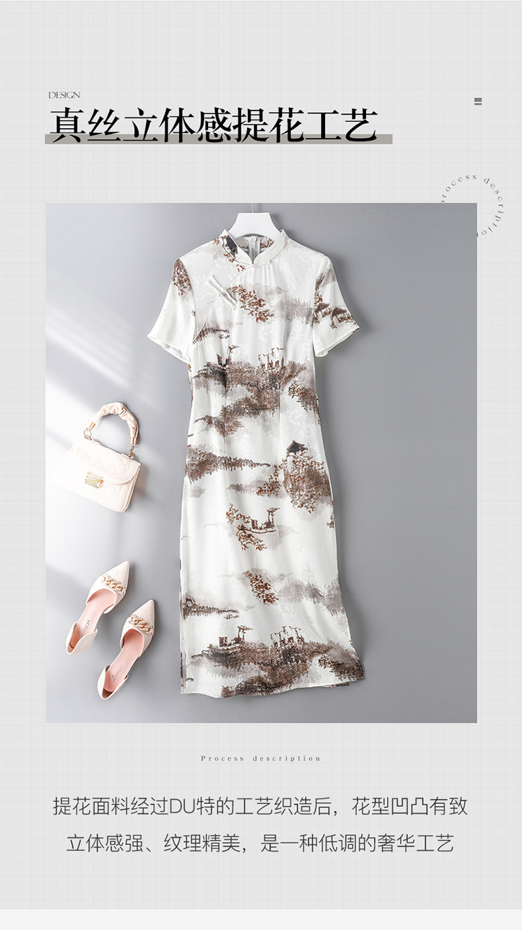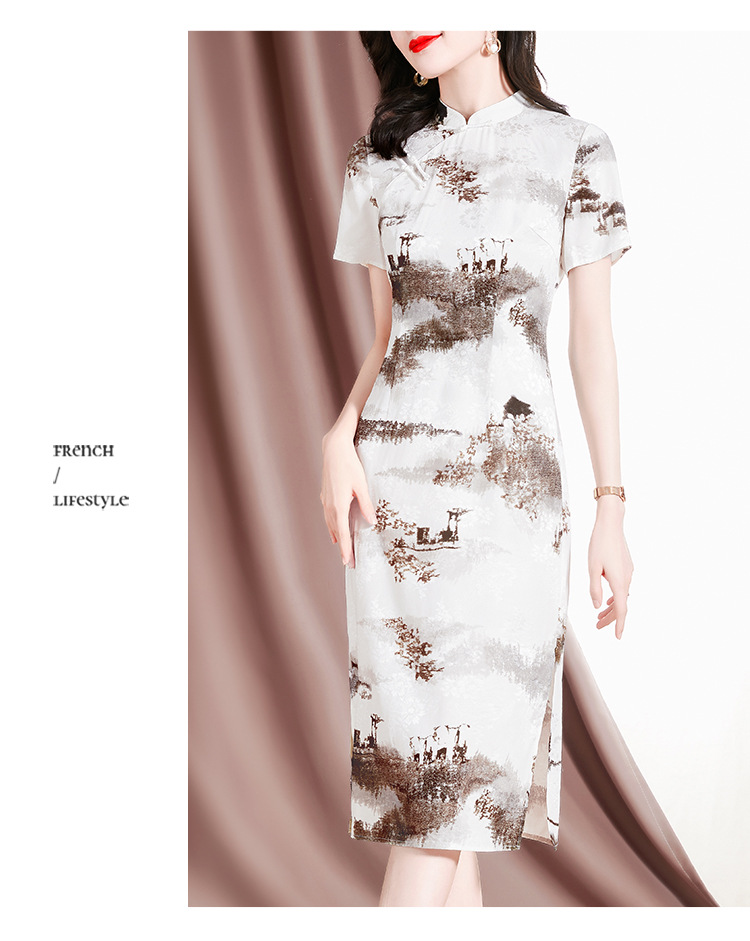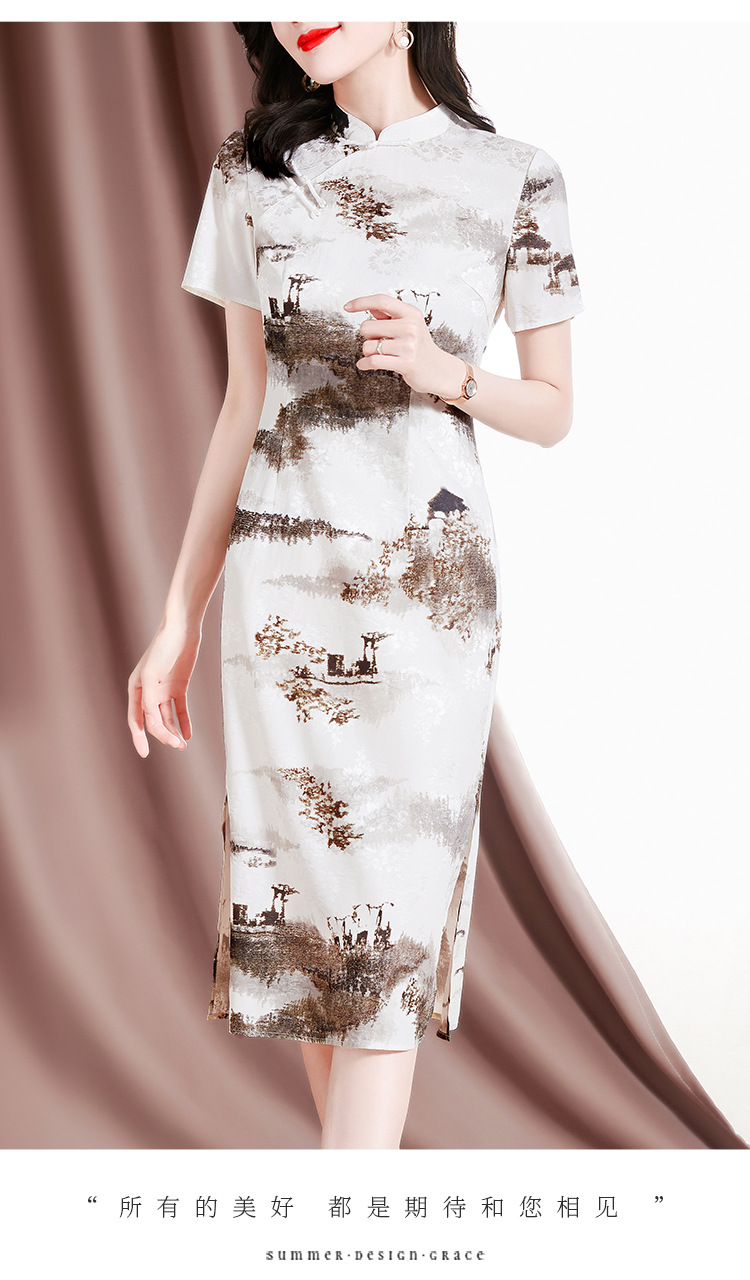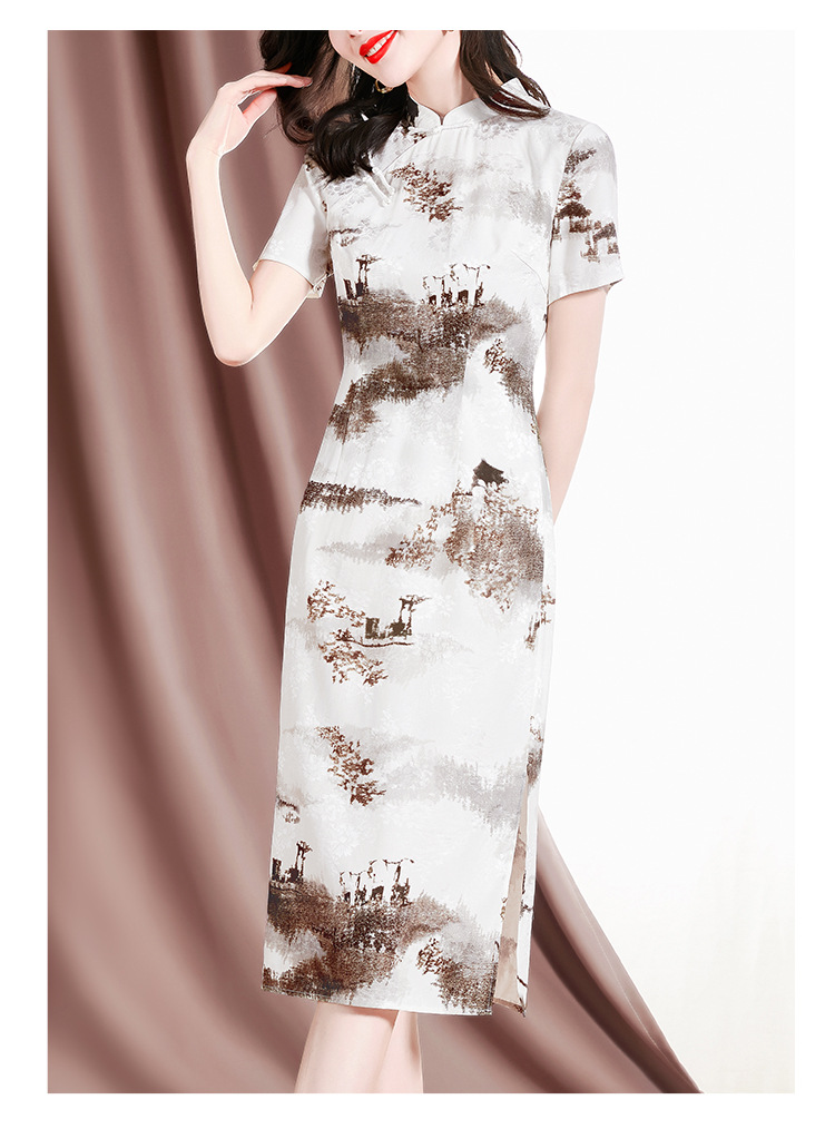 复古优雅,新款印花旗袍短袖连衣裙SM-82297133