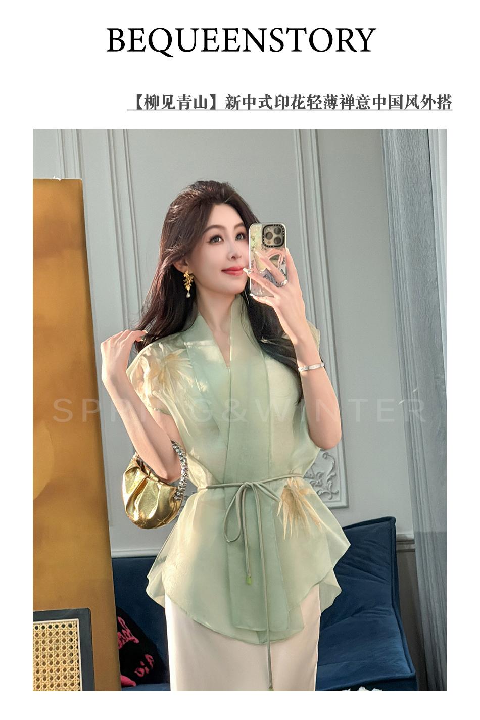 BeQueenStory【柳见青山】新中式时尚复古印花轻薄禅意中国风外搭