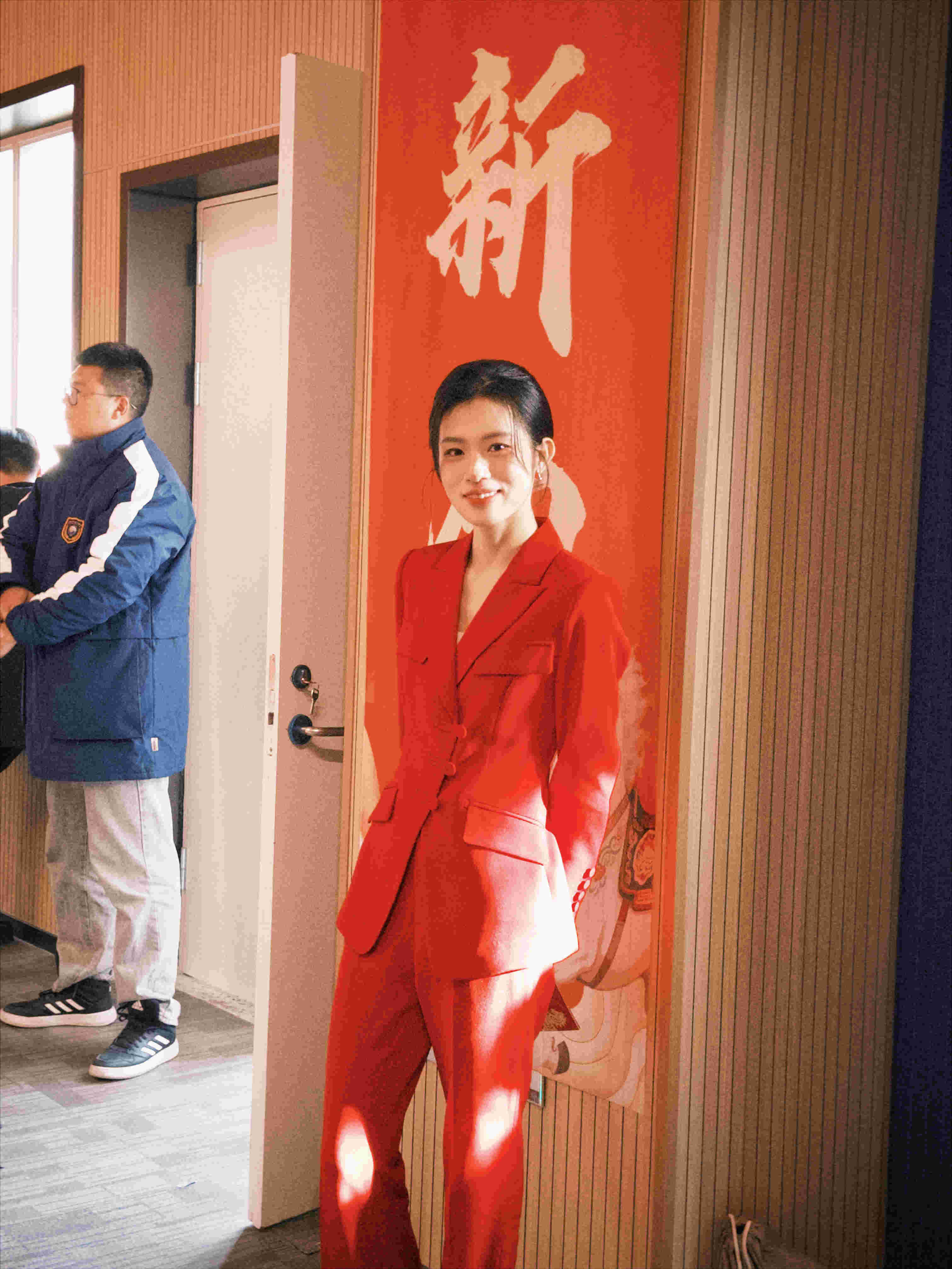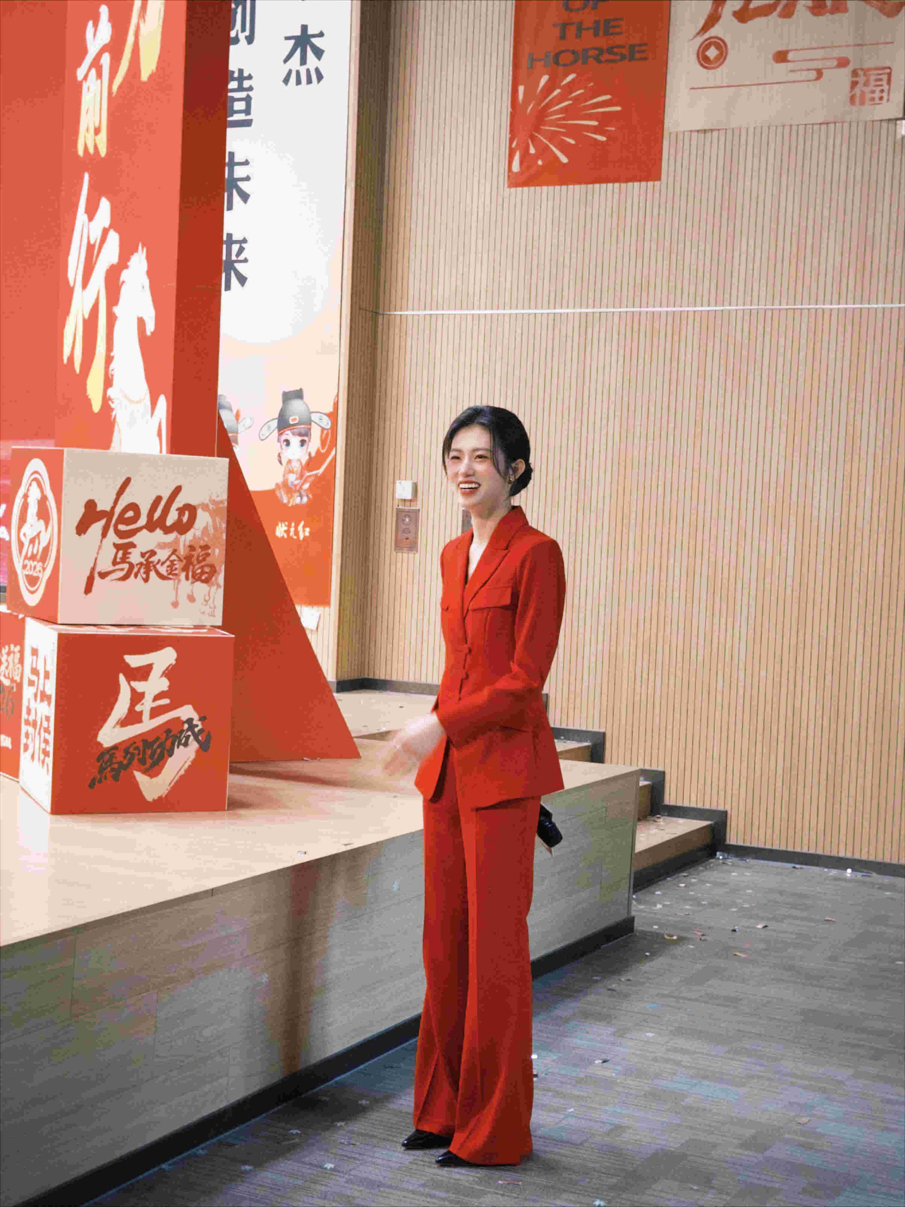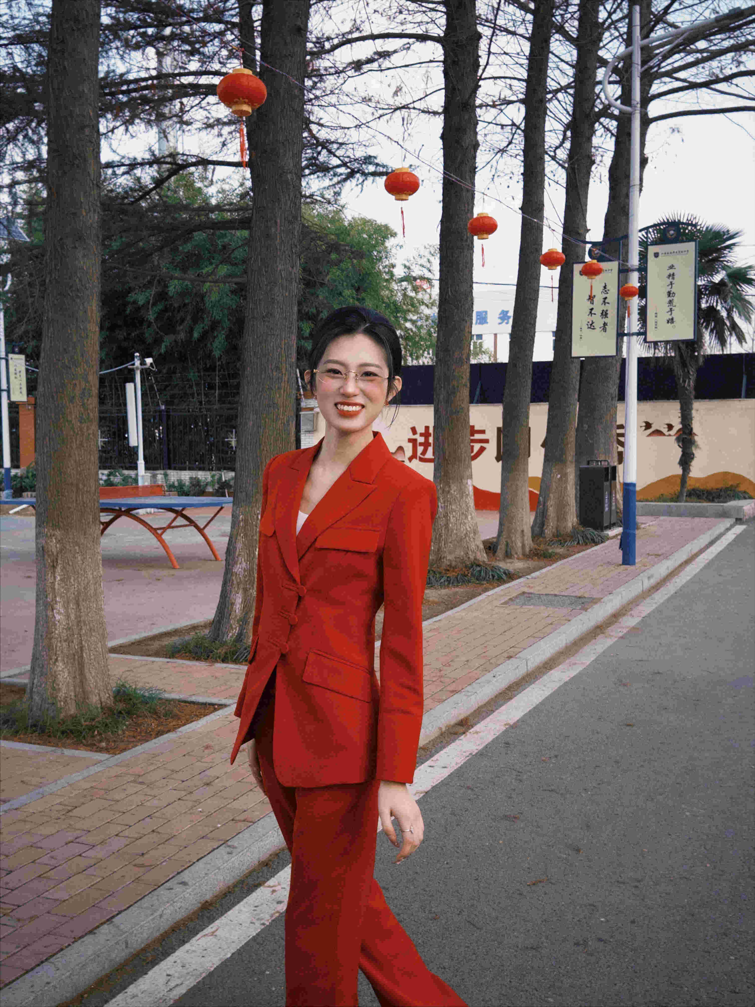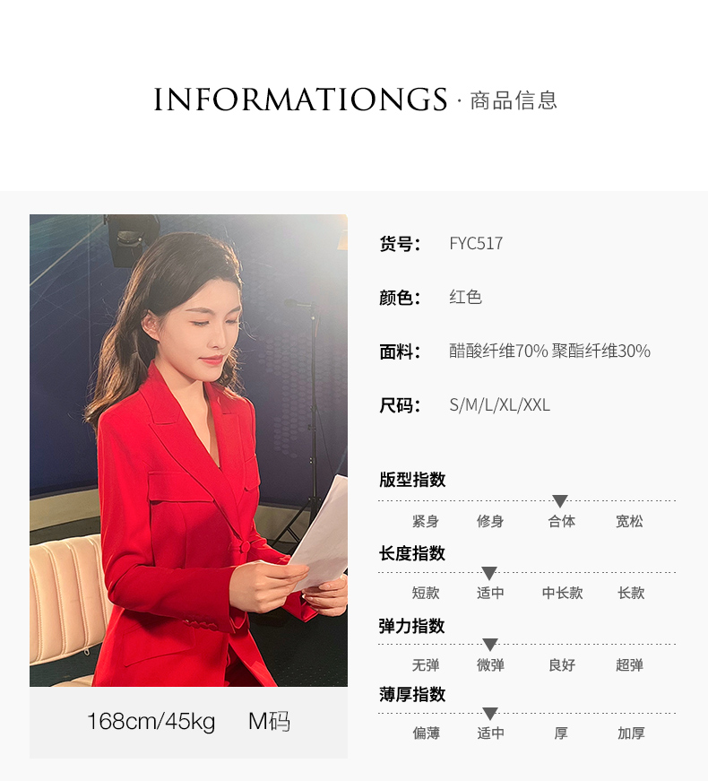 法小曼*子珍年会大红色设计感西装套装主持人演讲穿搭FYC517