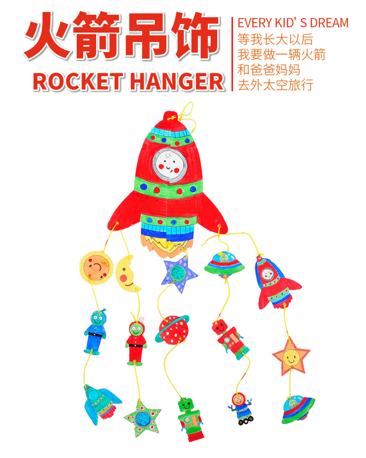 幼儿园课堂手工DIY卡纸火箭吊饰材料包