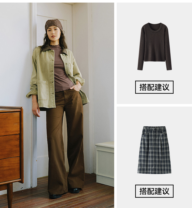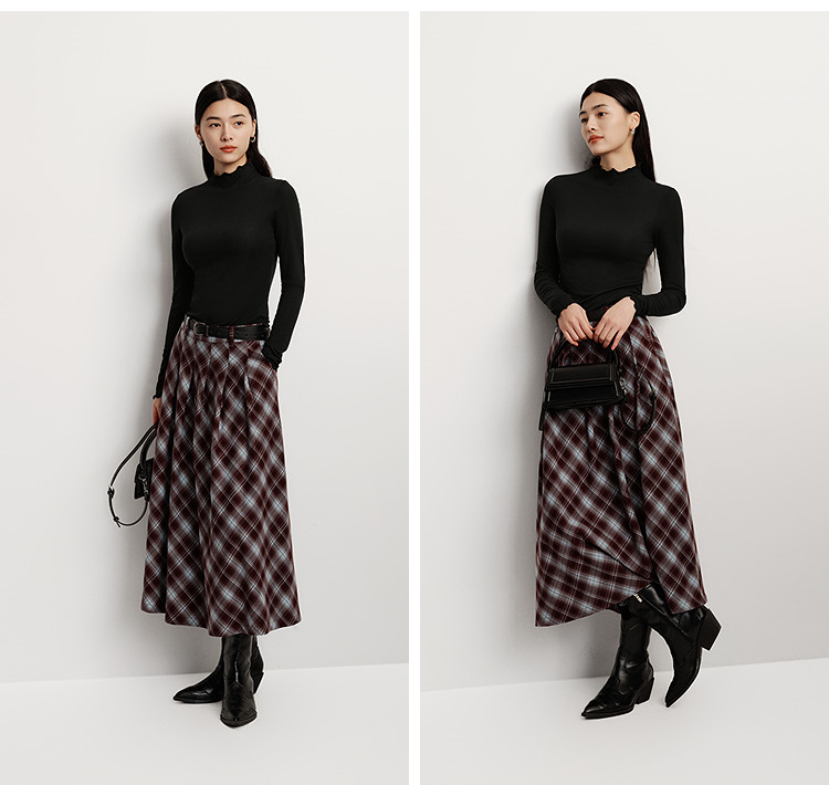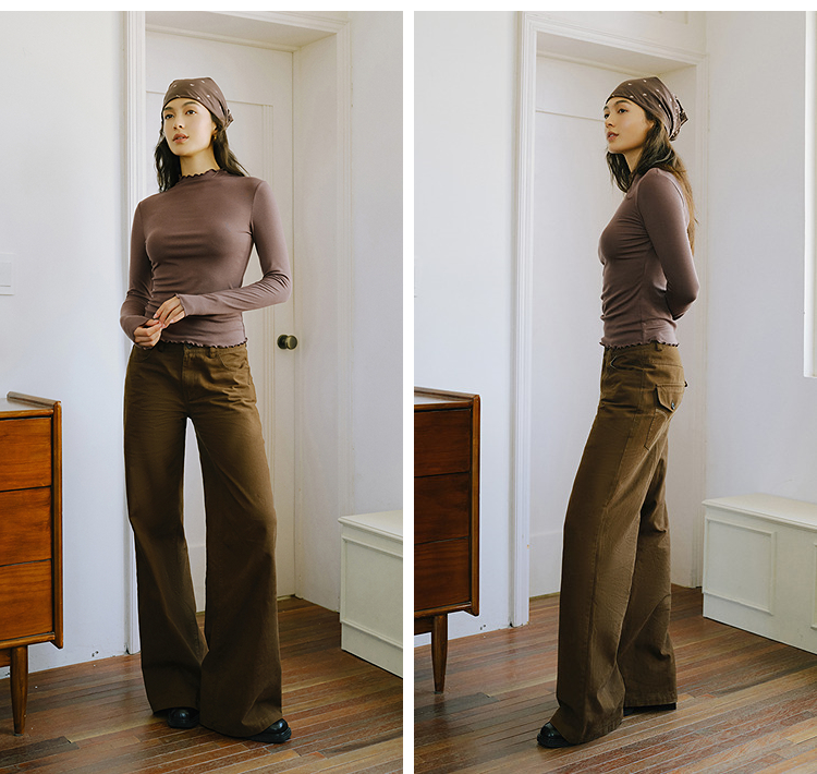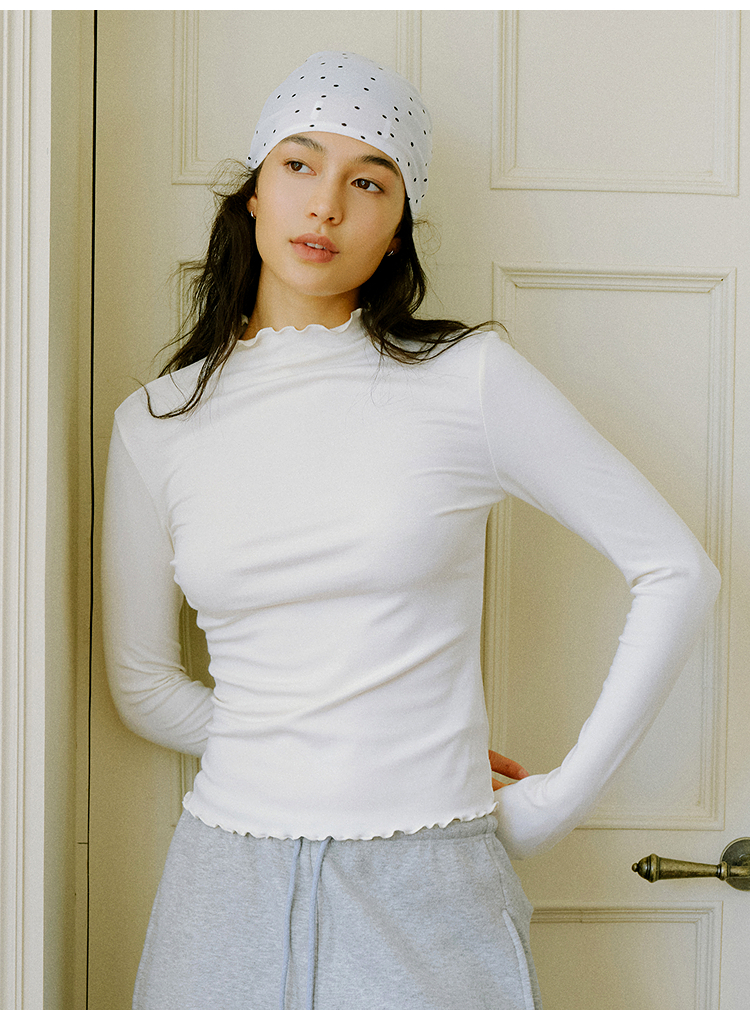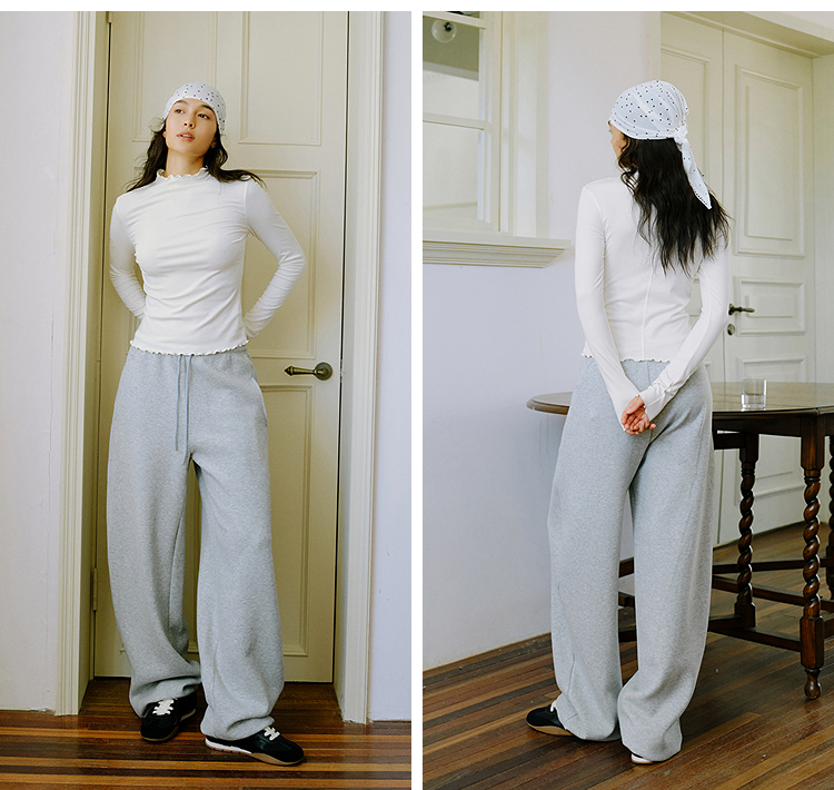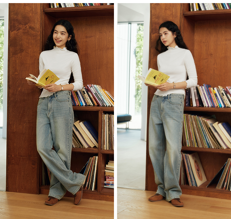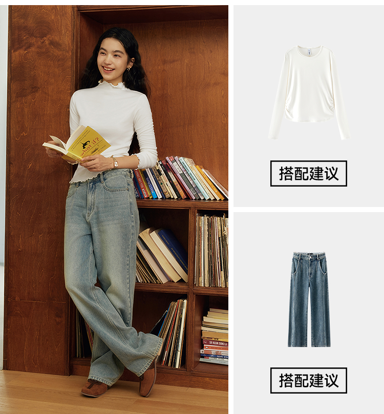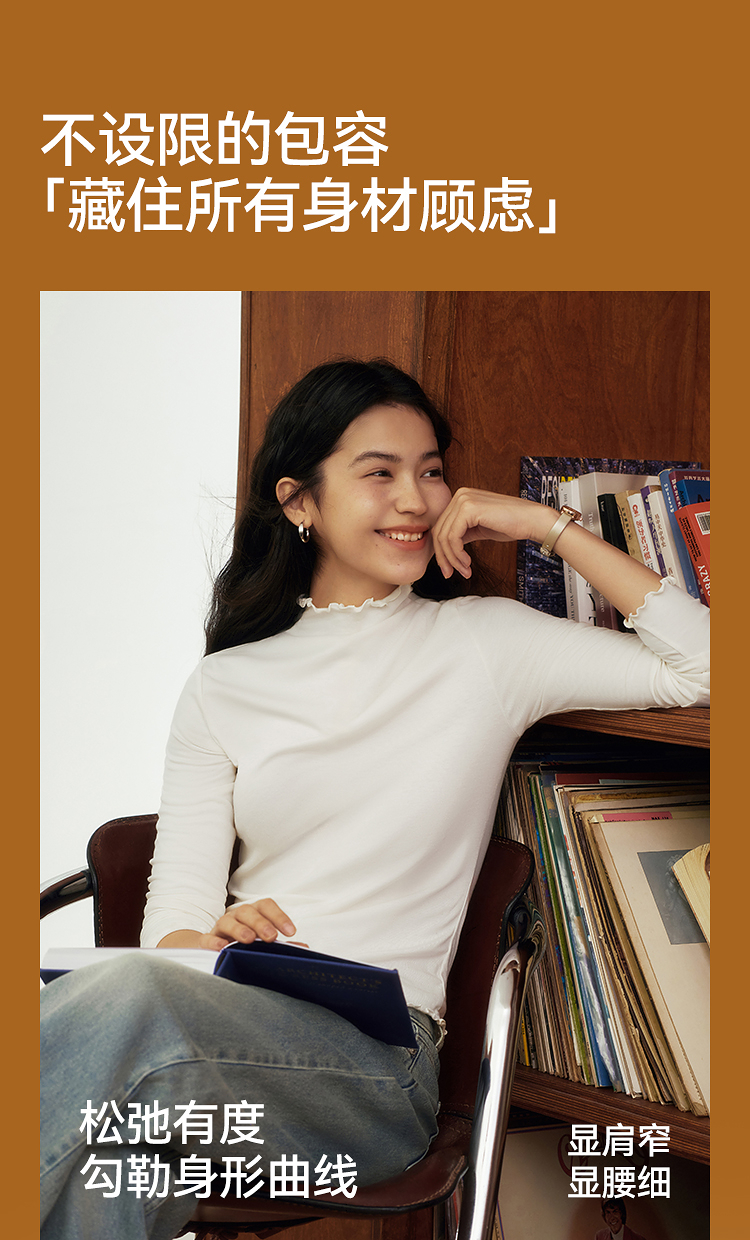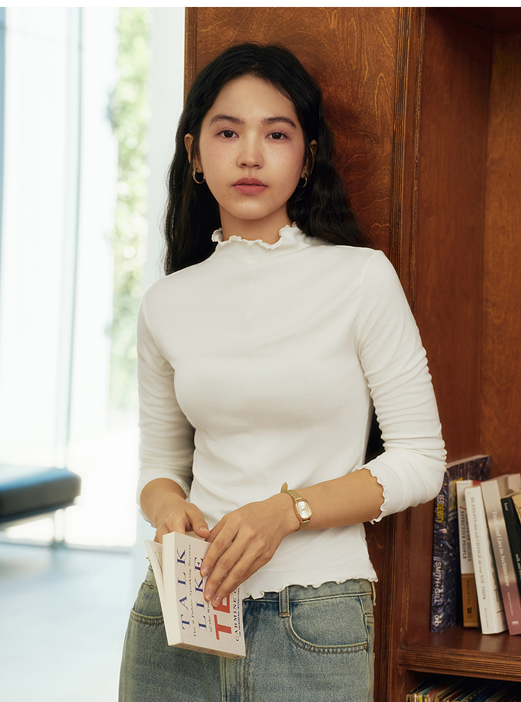 森马长袖T恤女半高领紧身纯色冬季2025新款发热抓绒木耳边打底衫