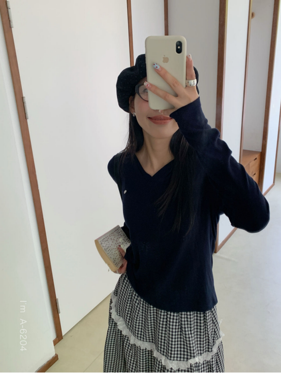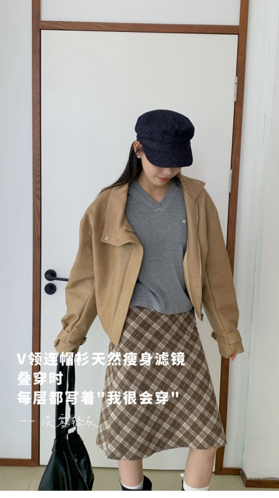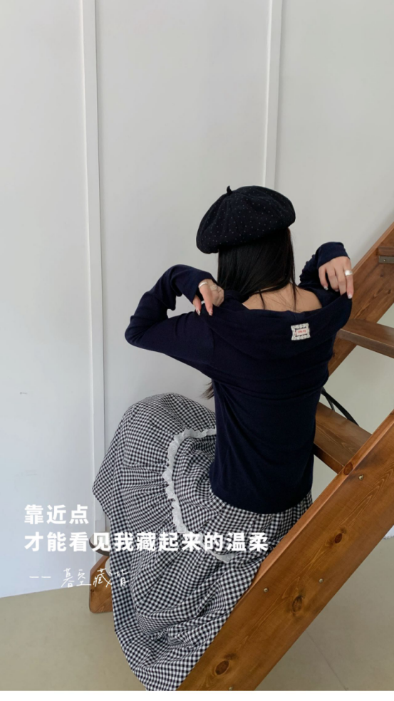 无论单穿还是叠穿 都自带适配魔法: 单穿时慵懒感漫过全身 叠穿时蕾丝标总能在不经意间透出gaoji感 不管是配温柔的裙装还是利落的裤装 它都能让整体造型在随性中藏着巧思 轻松拿捏「不费力的秋日时髦」
