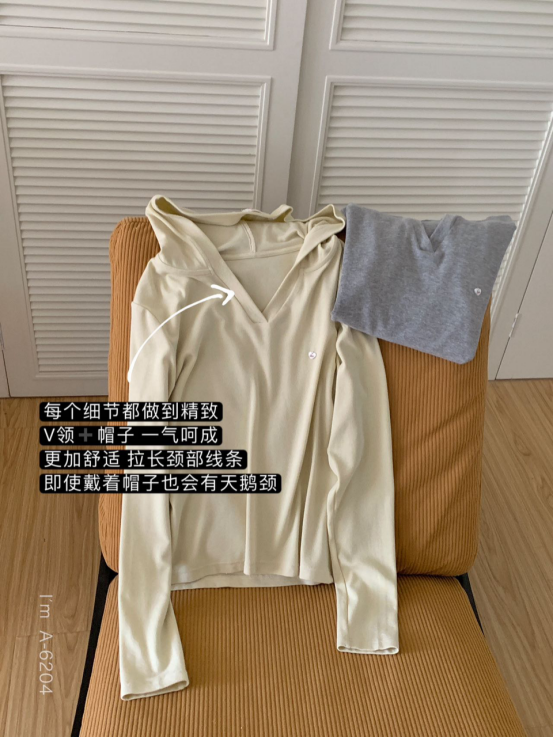 面料是自带绒感的慕斯羊绒 像把晒了一整天的毯子披在身上🧸 体温刚蹭上去就暖烘烘地回弹 早晚出门穿上它 冷风都被软乎乎地弹开 V 领做得刚好露出锁骨线条 连帽一戴也能修饰脖颈线条 这种「露与藏」的分寸感 简直是为秋装叠穿量身定制