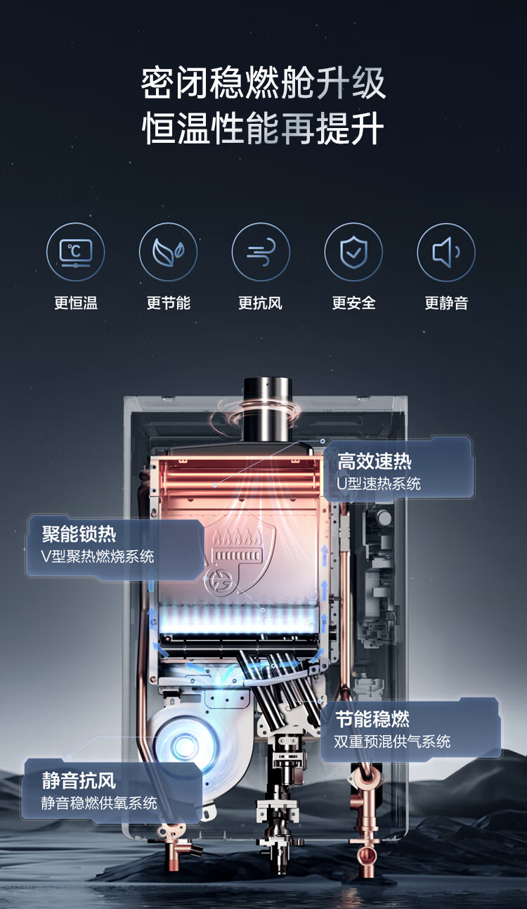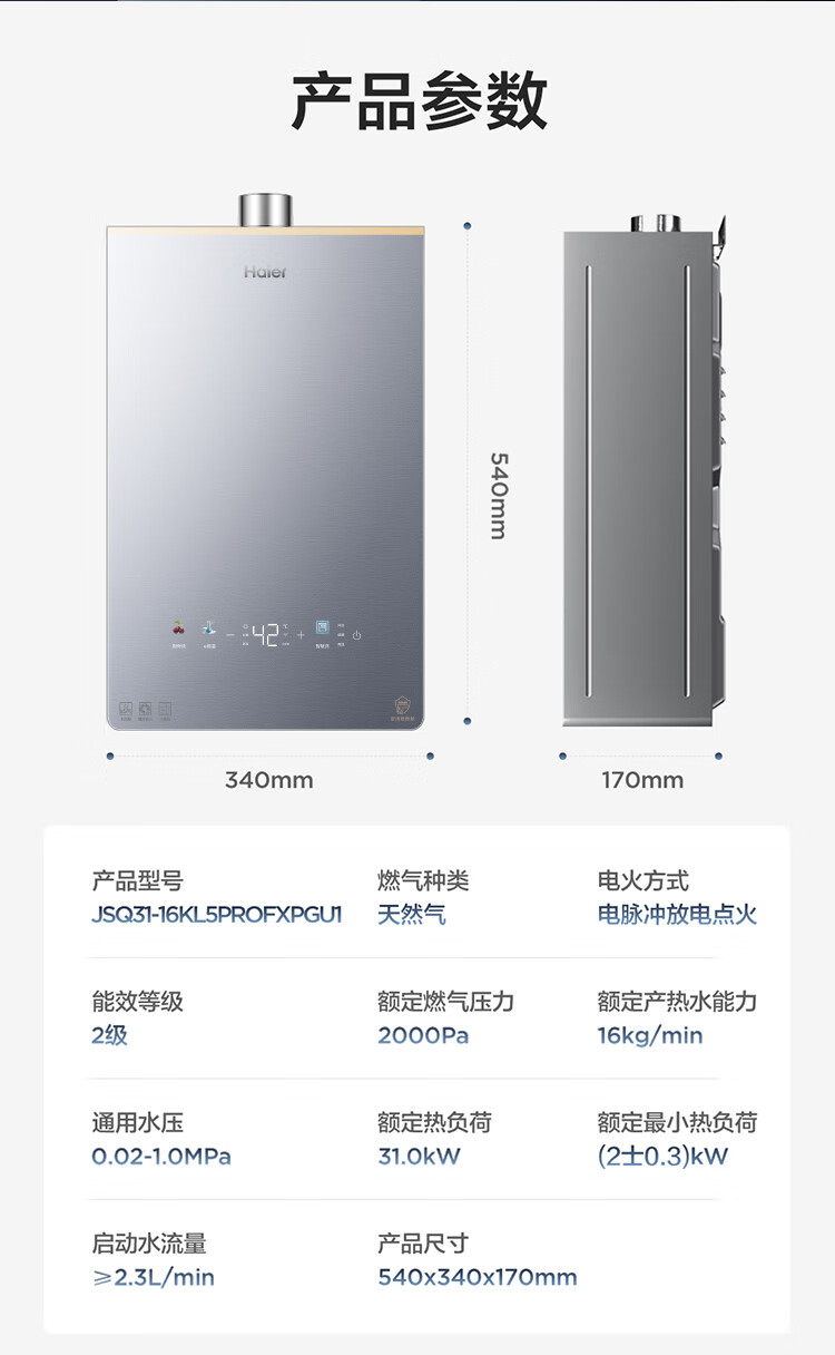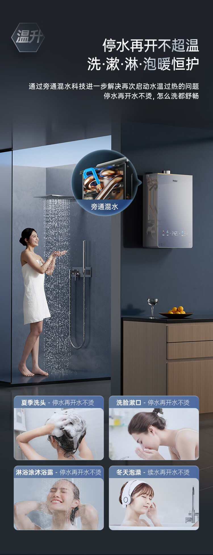 海尔(Haier)16升【K系列KL5PRO】燃气热水器天然气 无级变频水伺服五段微火JSQ31-16KL5PROFXPGU1【以旧换新】