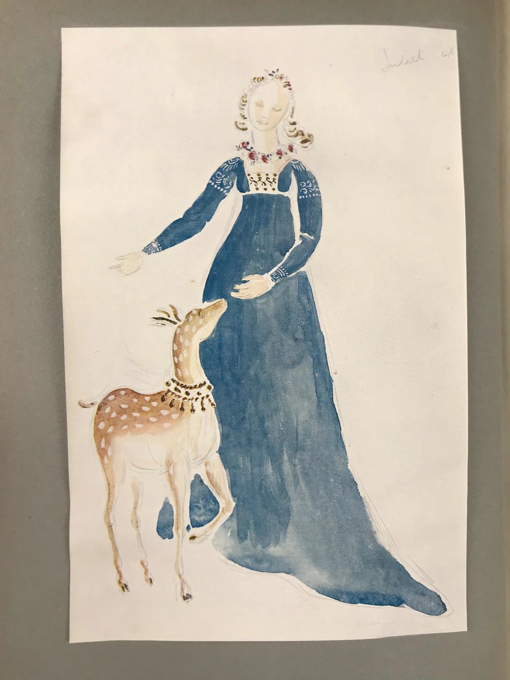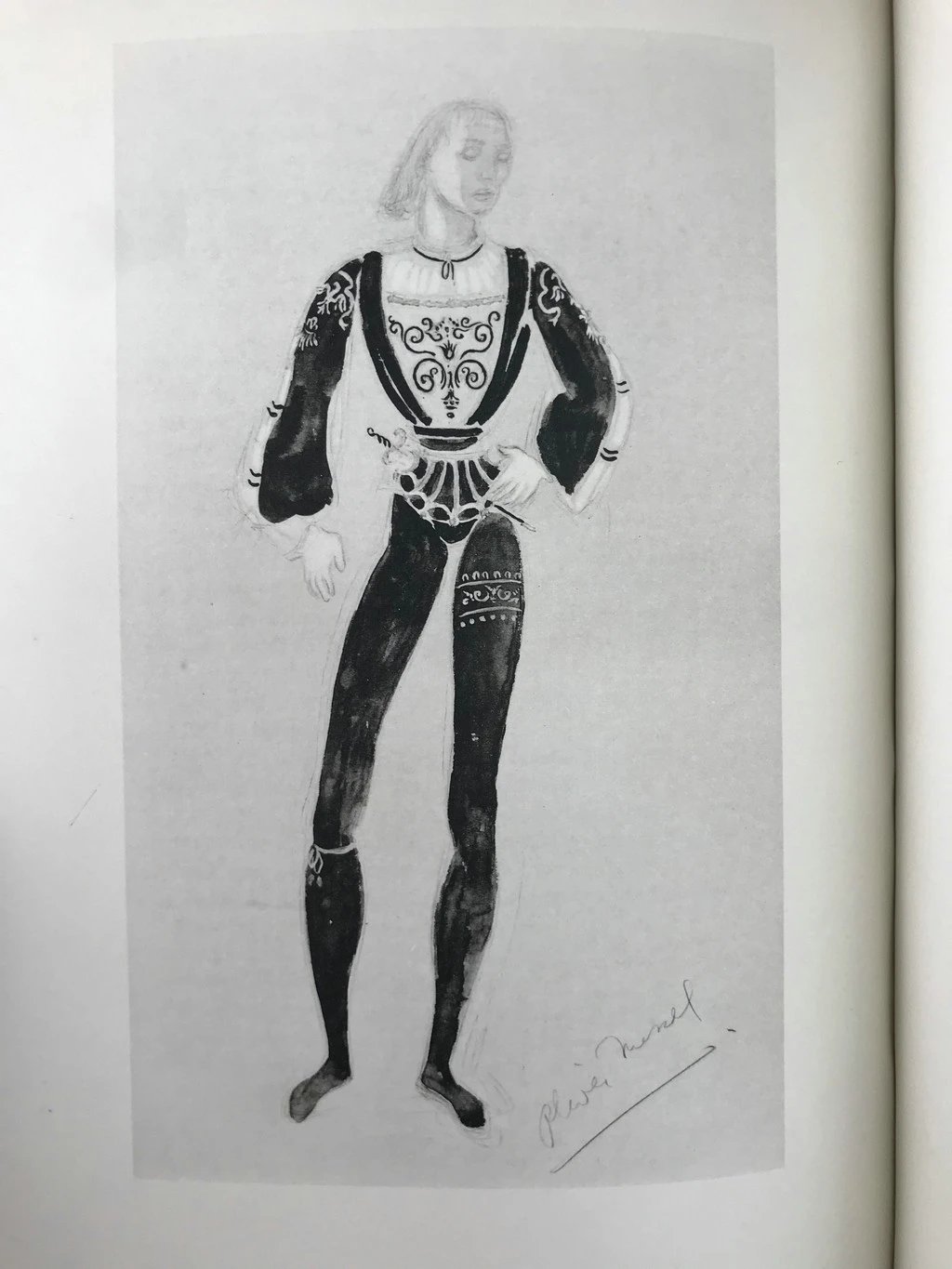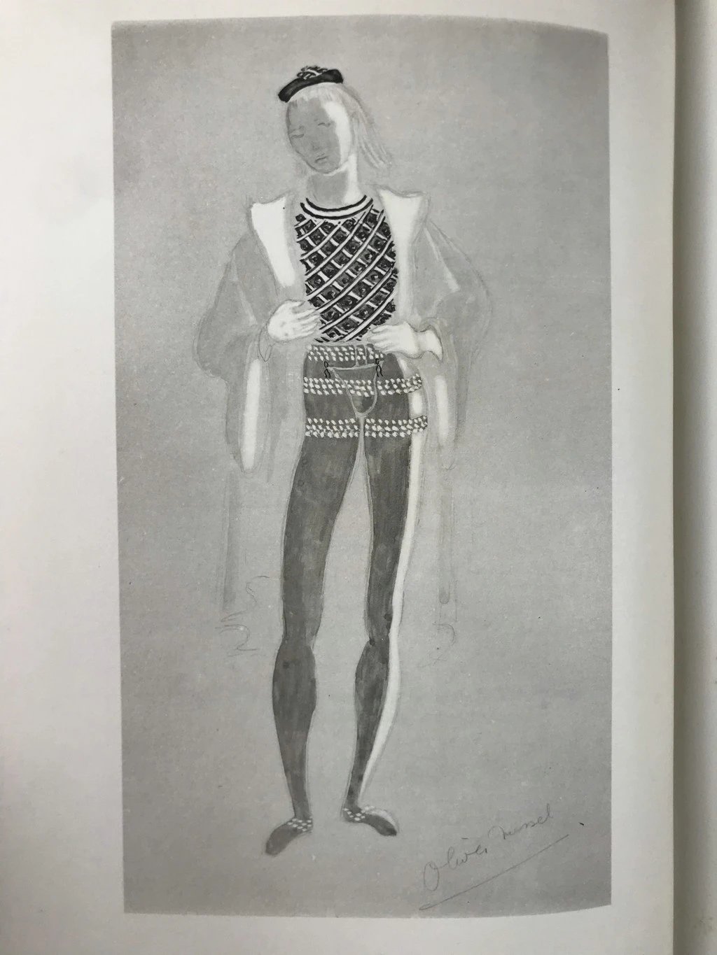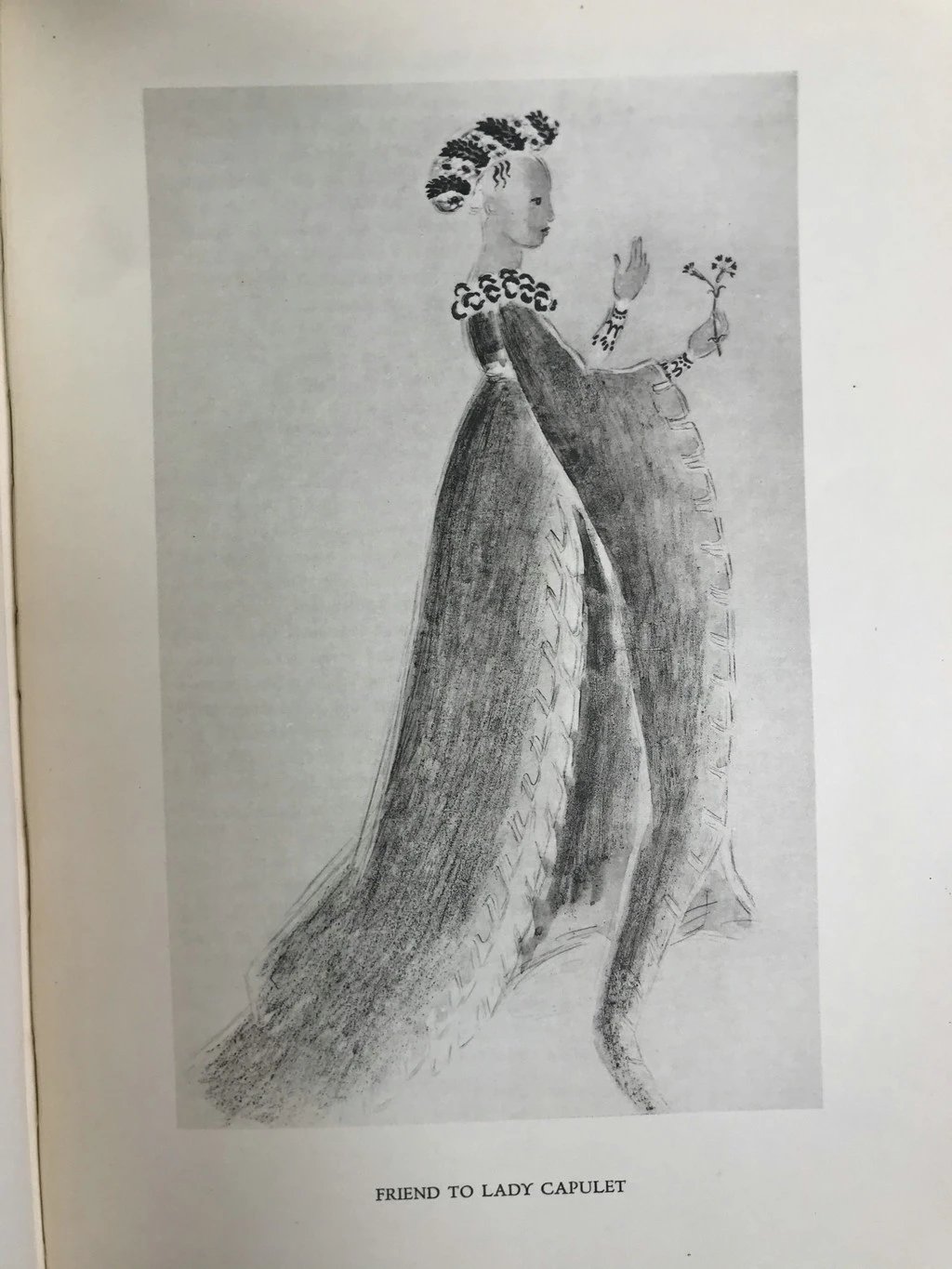 Oliver Messel(1904–1978)是20世纪英国最重要的舞台与戏剧视觉艺术家之一,其作品在戏剧设计史与书籍插图领域均占据重要地位。Messel以极高的装饰性美学、精致的线描技巧及对历史风格的诗意重构而闻名,尤擅将文学经典转化为富有象征意味与抒情气质的视觉形象。他长期参与莎士比亚戏剧的舞台创作,对文本结构与情感张力具有深刻理解。在为《罗密欧与朱丽叶》创作的插图中,Messel融合文艺复兴意象与20世纪审美精神,通过优雅而克制的构图,营造出既浪漫又带有宿命感的视觉氛围。这组插图不仅是对莎士比亚悲剧诗性的高度概括,也体现了Messel成熟时期的艺术风格,因而在插图本与戏剧艺术收藏领域中具有重要的艺术与文献价值。