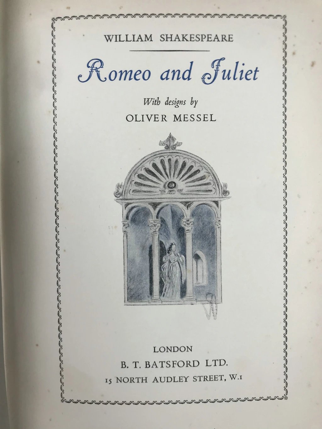 插图家签名本!1936年 莎士比亚《罗密欧与朱丽叶》 奥利弗·梅塞尔彩色手工贴图 精装大16开