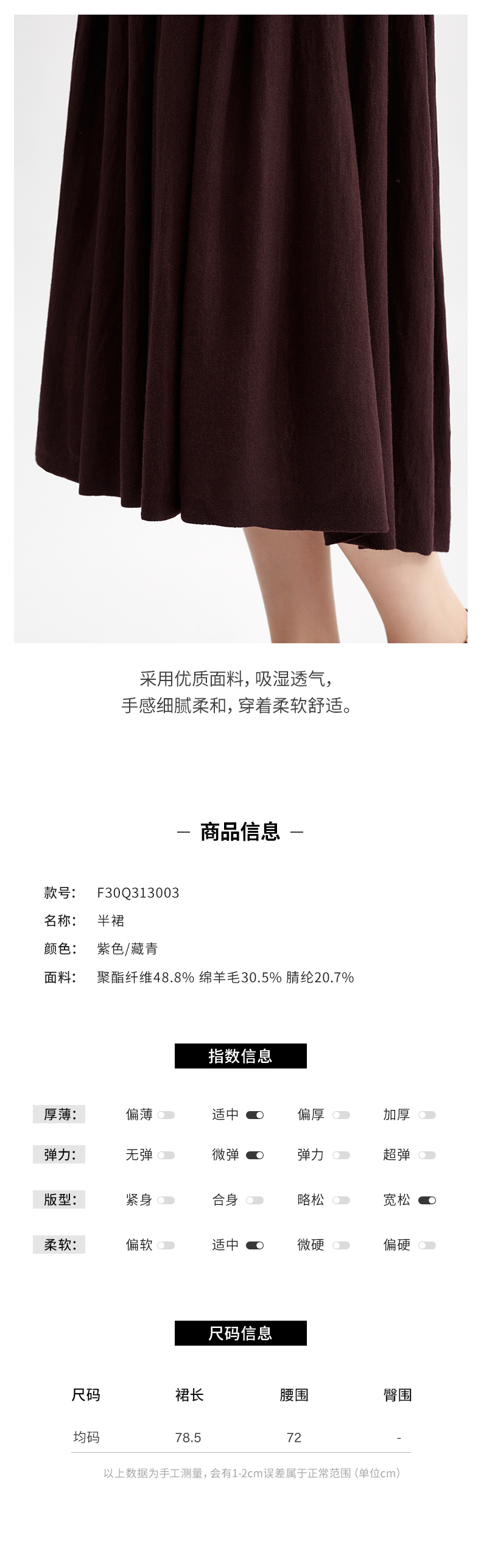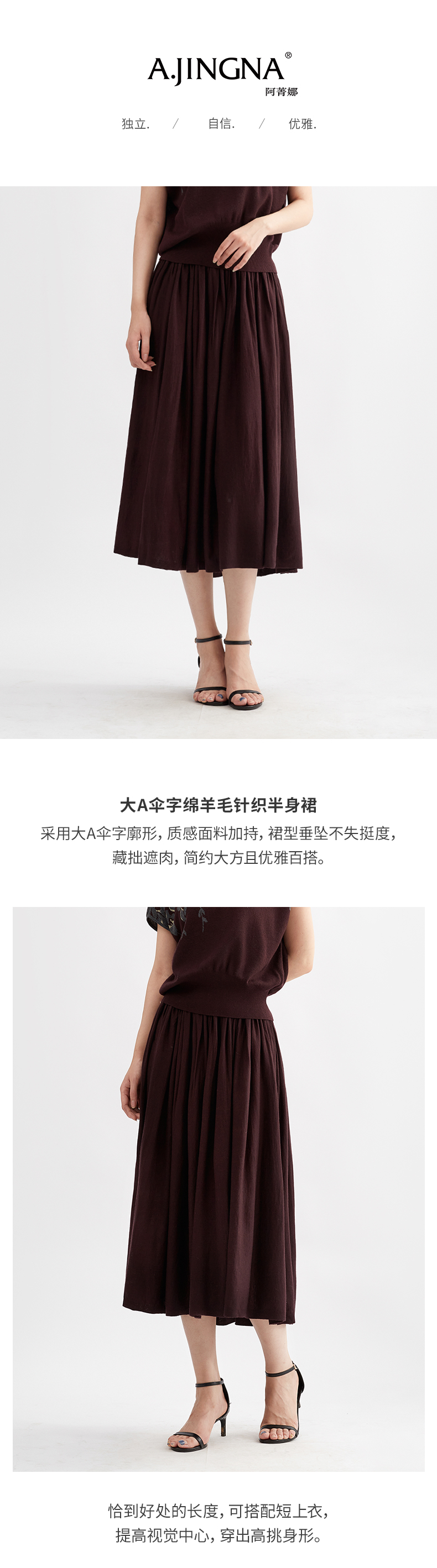 【淘衣节专享】阿菁娜绵羊毛A字廓形针织半身裙F30Q313003