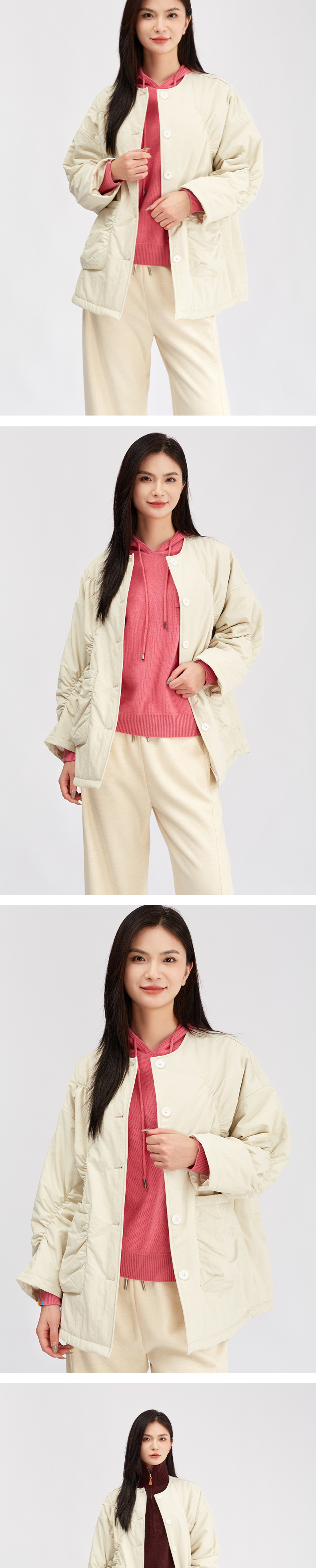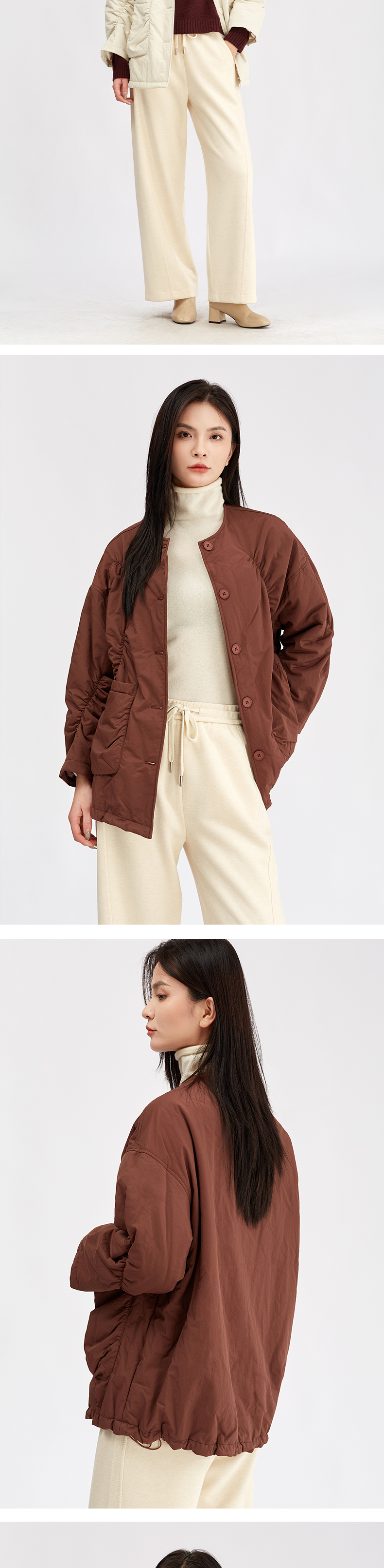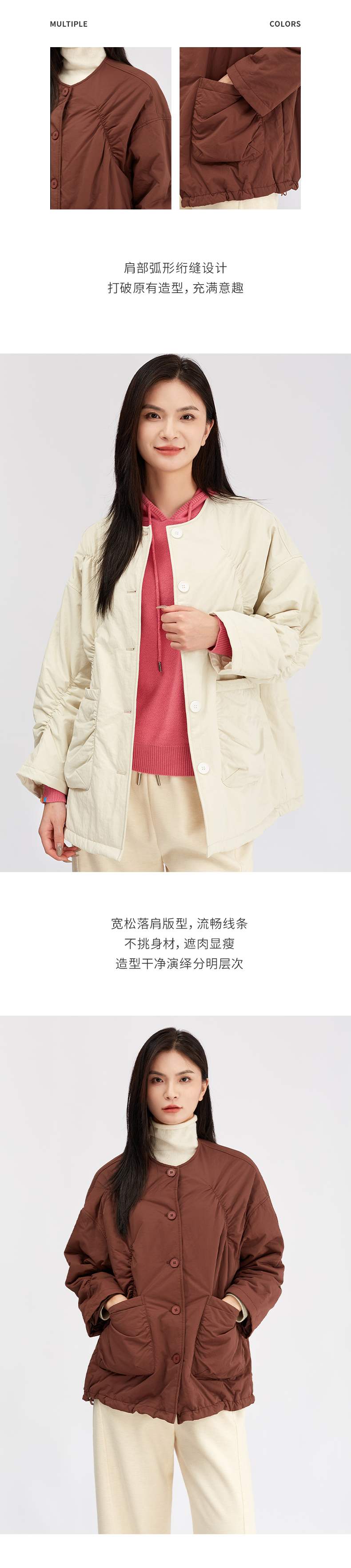 【弧形绗缝】阿菁娜冬季新款显瘦慵懒棉服弧形绗缝设计落肩宽松版型F30D215008