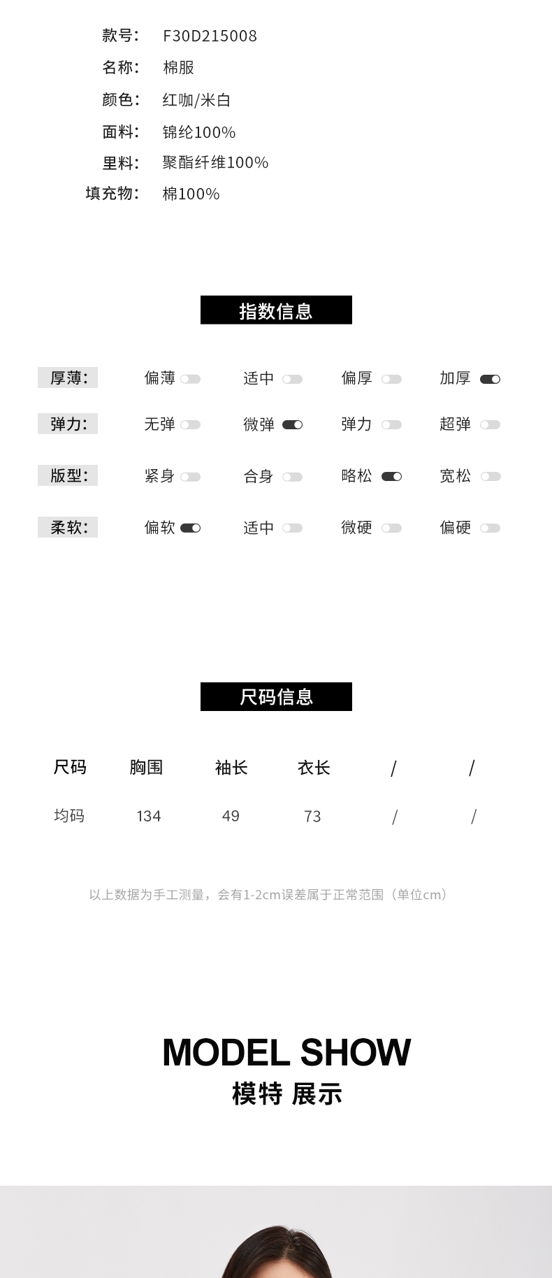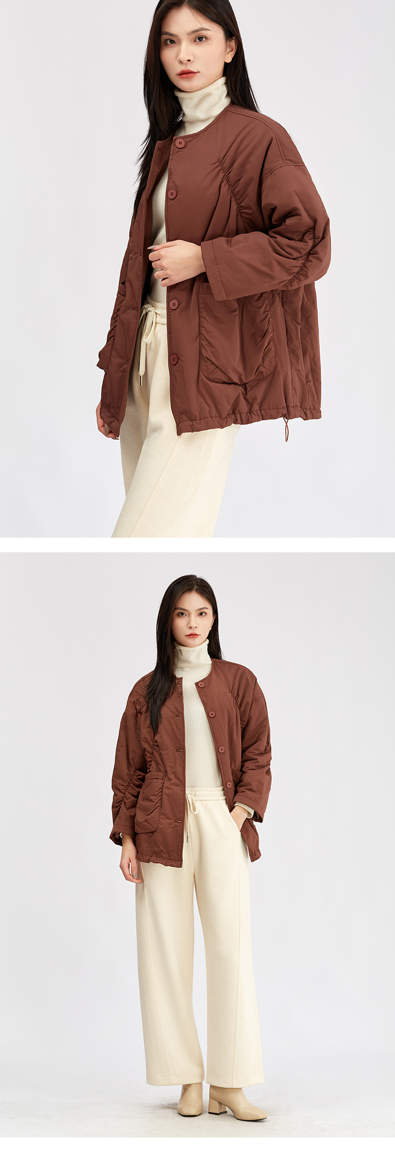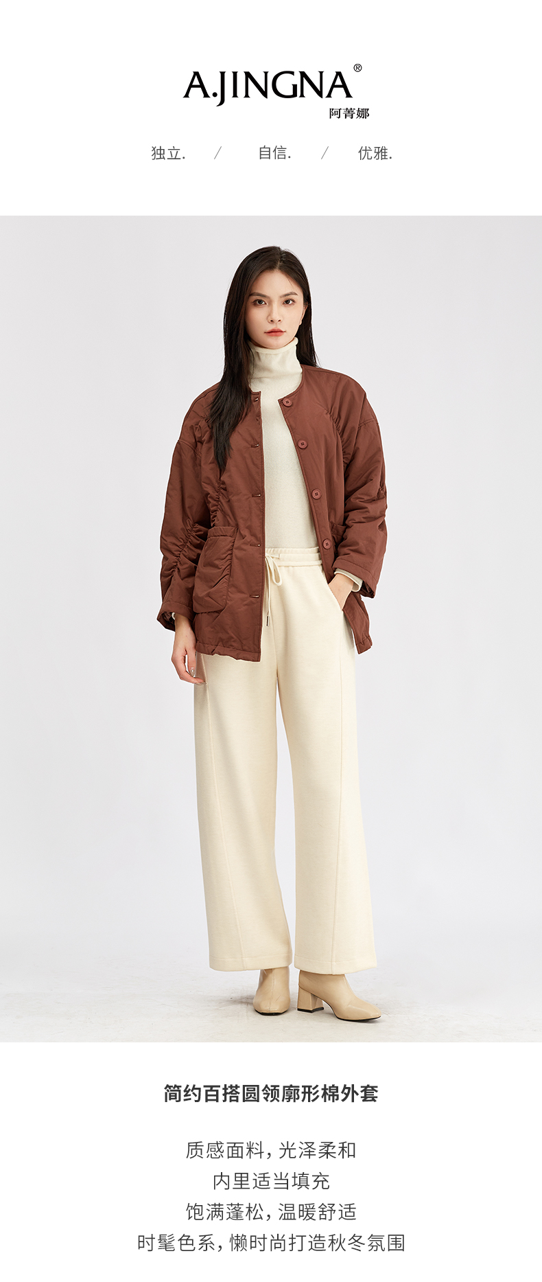 【弧形绗缝】阿菁娜冬季新款显瘦慵懒棉服弧形绗缝设计落肩宽松版型F30D215008