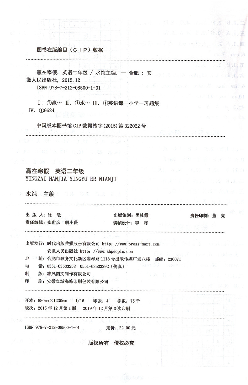 2020新版上海小学寒假作业 英语 2年级/二年级 赢在寒假 小学生寒假作业本练习册 基础巩固拓展提升新课预习 安徽人民出版社