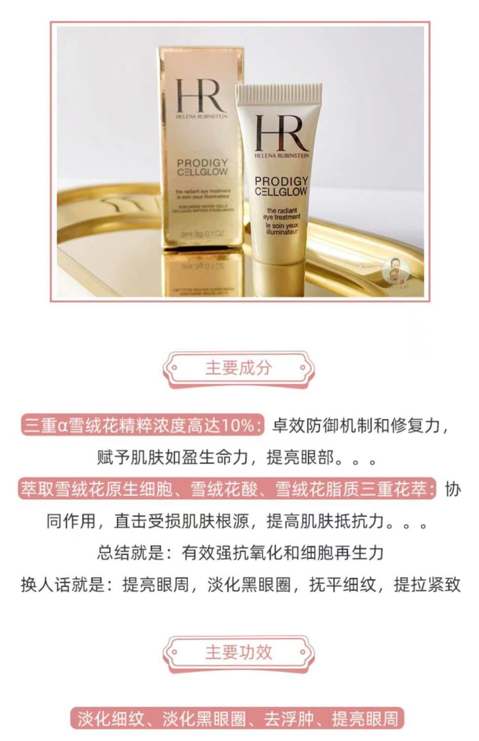 【预售 急单慎拍】HR赫莲娜高光眼霜3ml小样 至美琉光眼霜清爽补水淡化黑眼圈眼袋