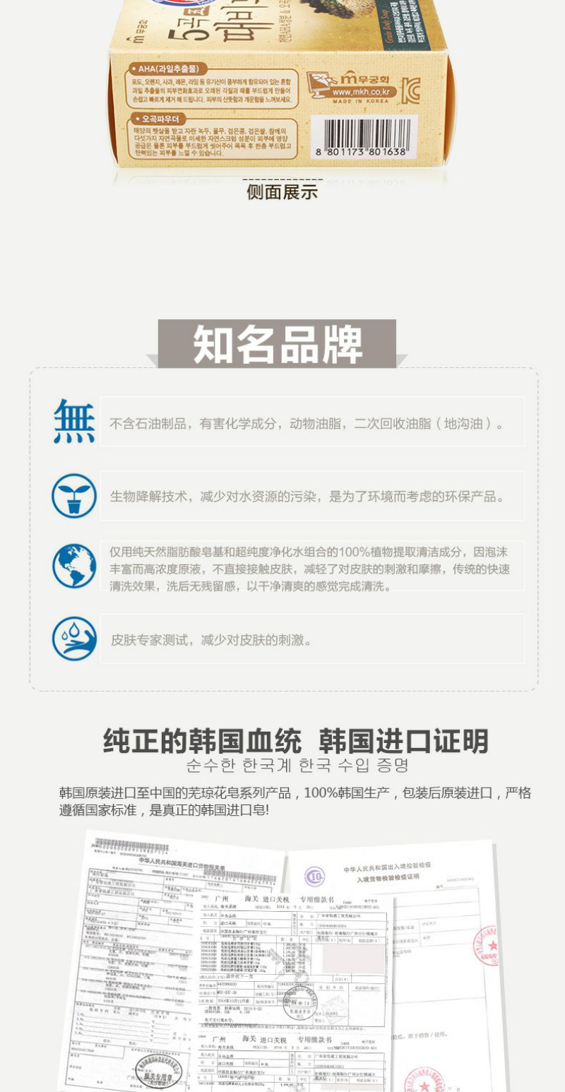 【中欧班列精选】韩国原装进口芜琼花五谷安心去泥皂100g/块