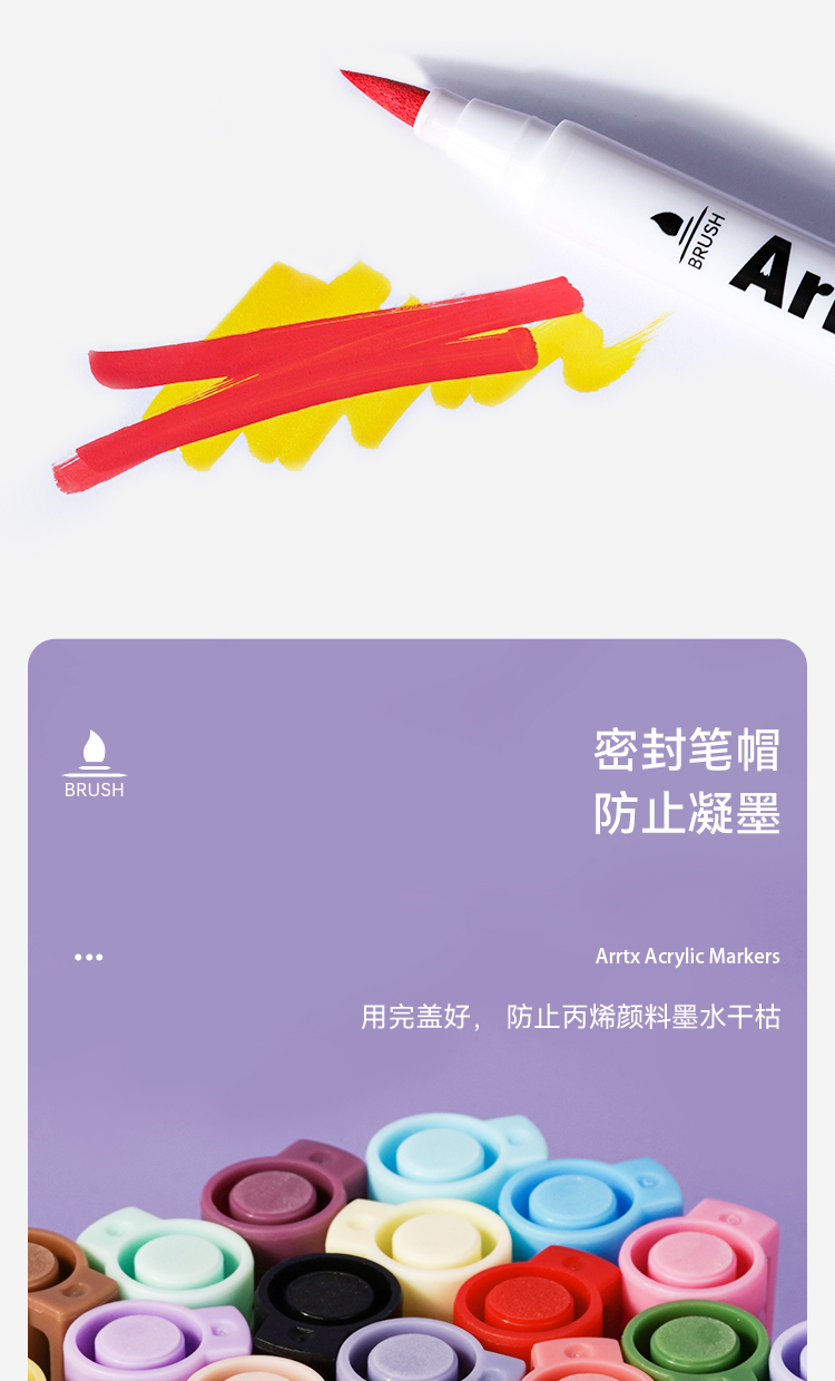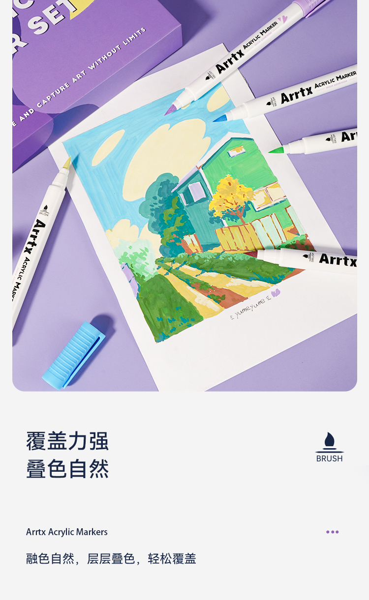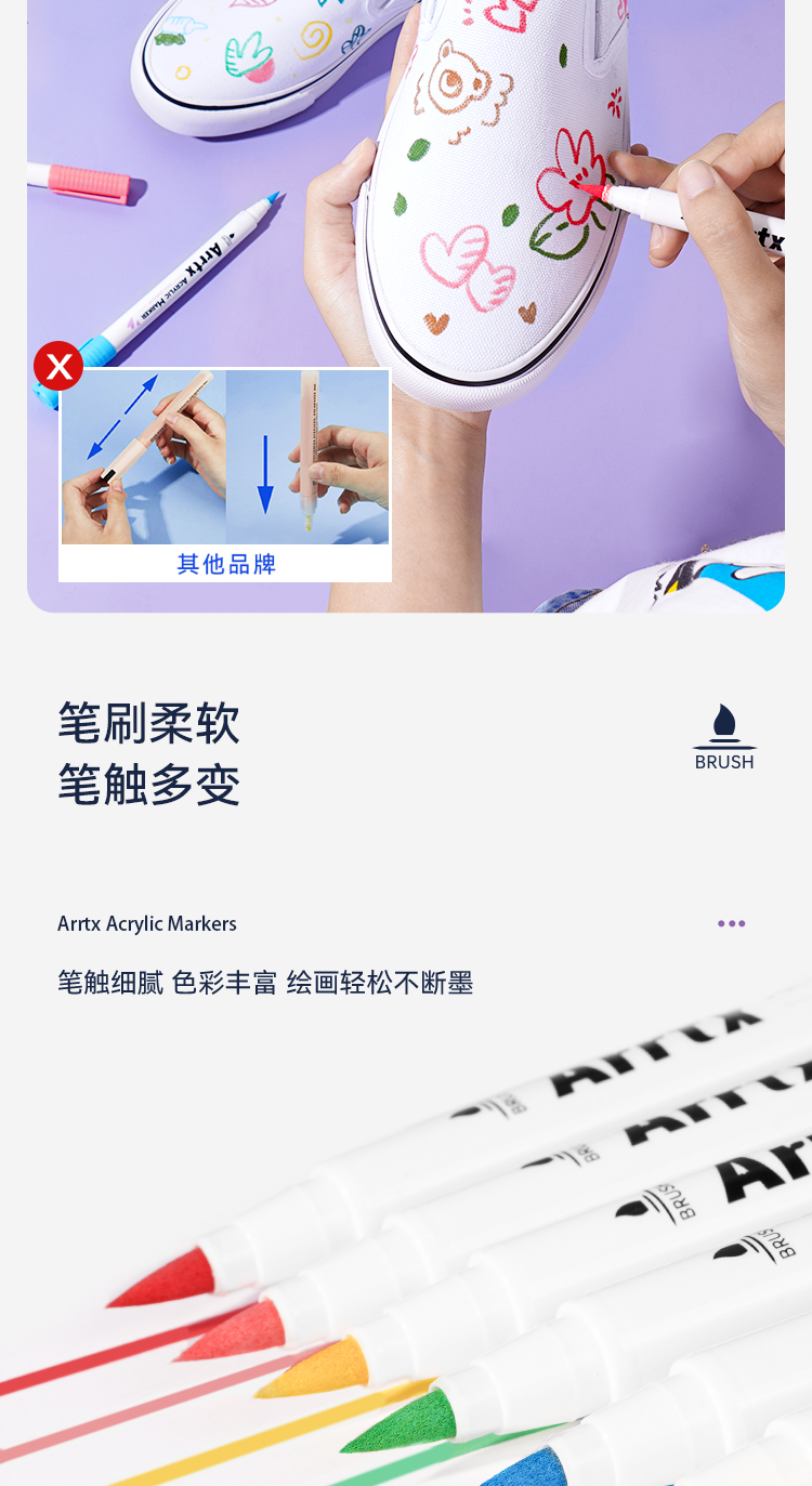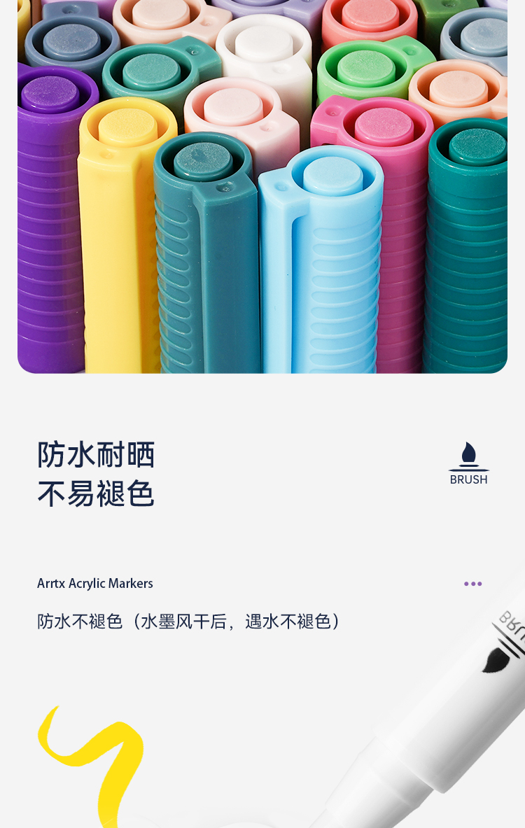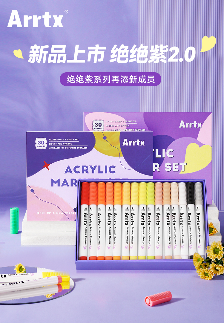 Arrtx阿泰诗丙烯马克笔套装30色绝绝紫防水软头DIY画鞋相册丙烯颜料马克笔彩色涂鸦笔套装手绘学生美术生专用