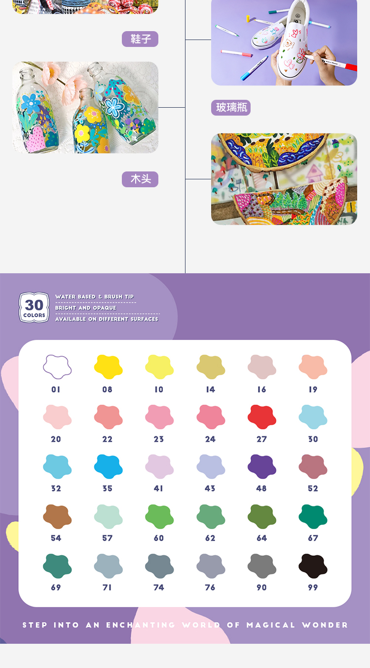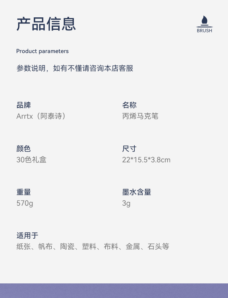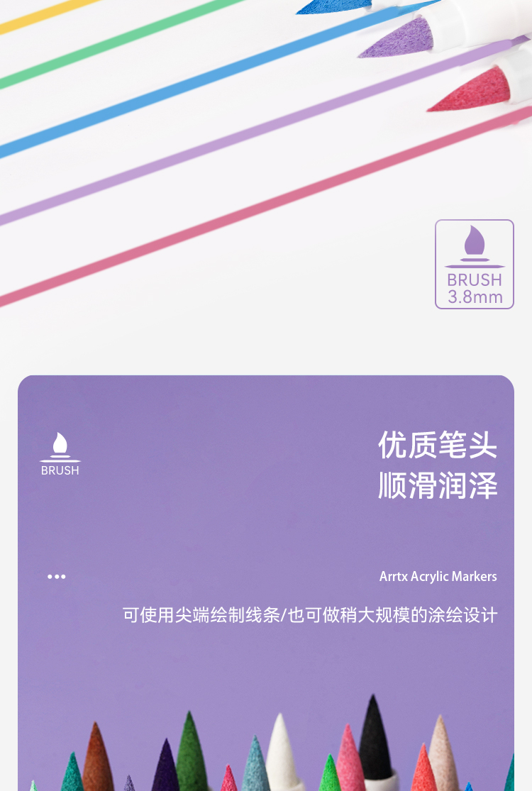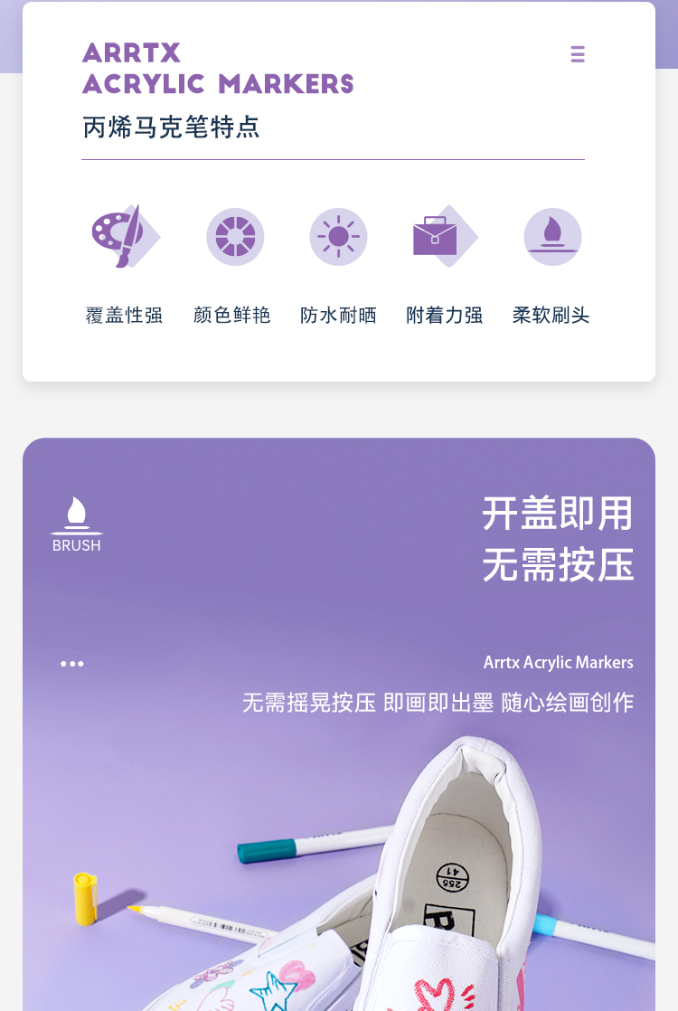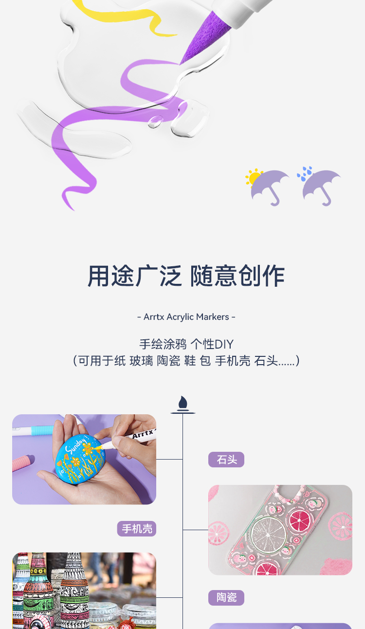 Arrtx阿泰诗丙烯马克笔套装30色绝绝紫防水软头DIY画鞋相册丙烯颜料马克笔彩色涂鸦笔套装手绘学生美术生专用