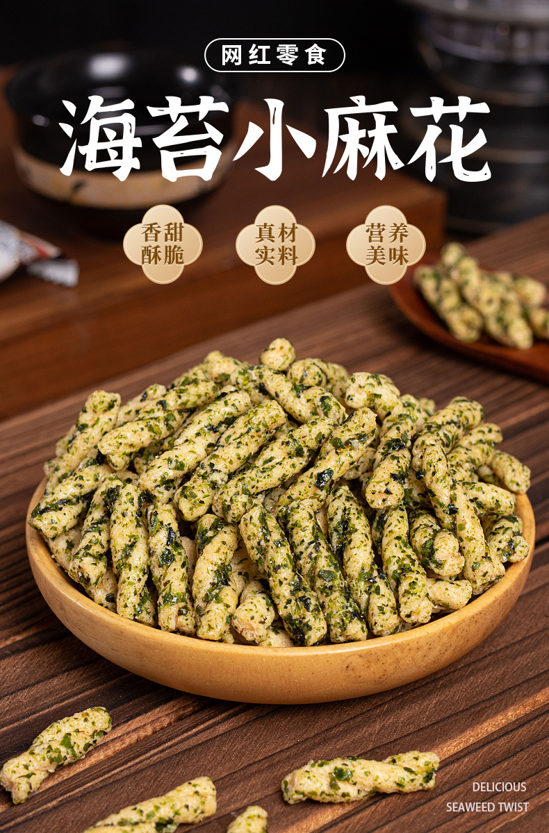 【手工海苔麻花,越嚼越香!】 这一口香酥够香!够脆,回归本味,营养均衡,多吃也不腻,独立包装解馋休闲食品,茶楼麻将打牌聚会零食QQ