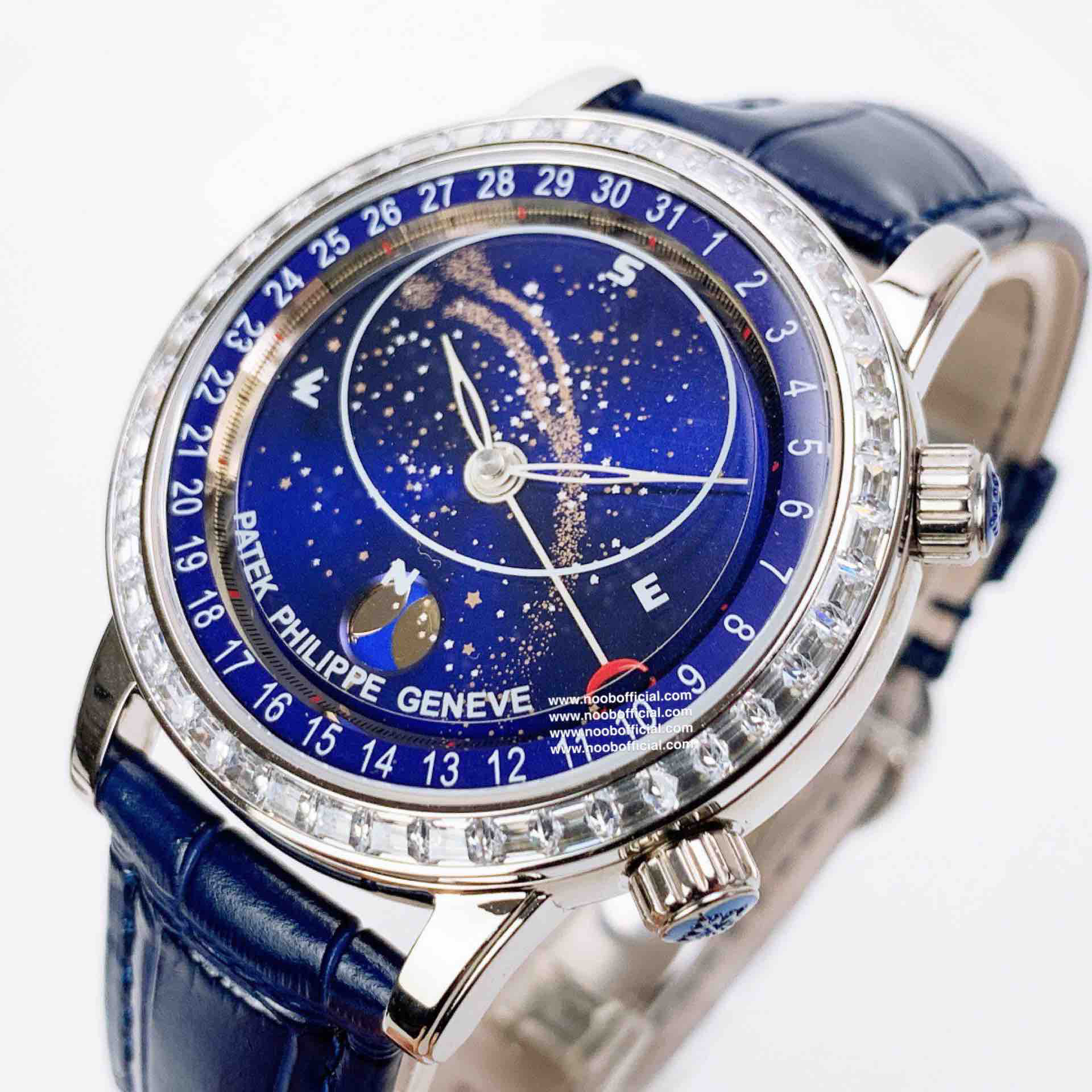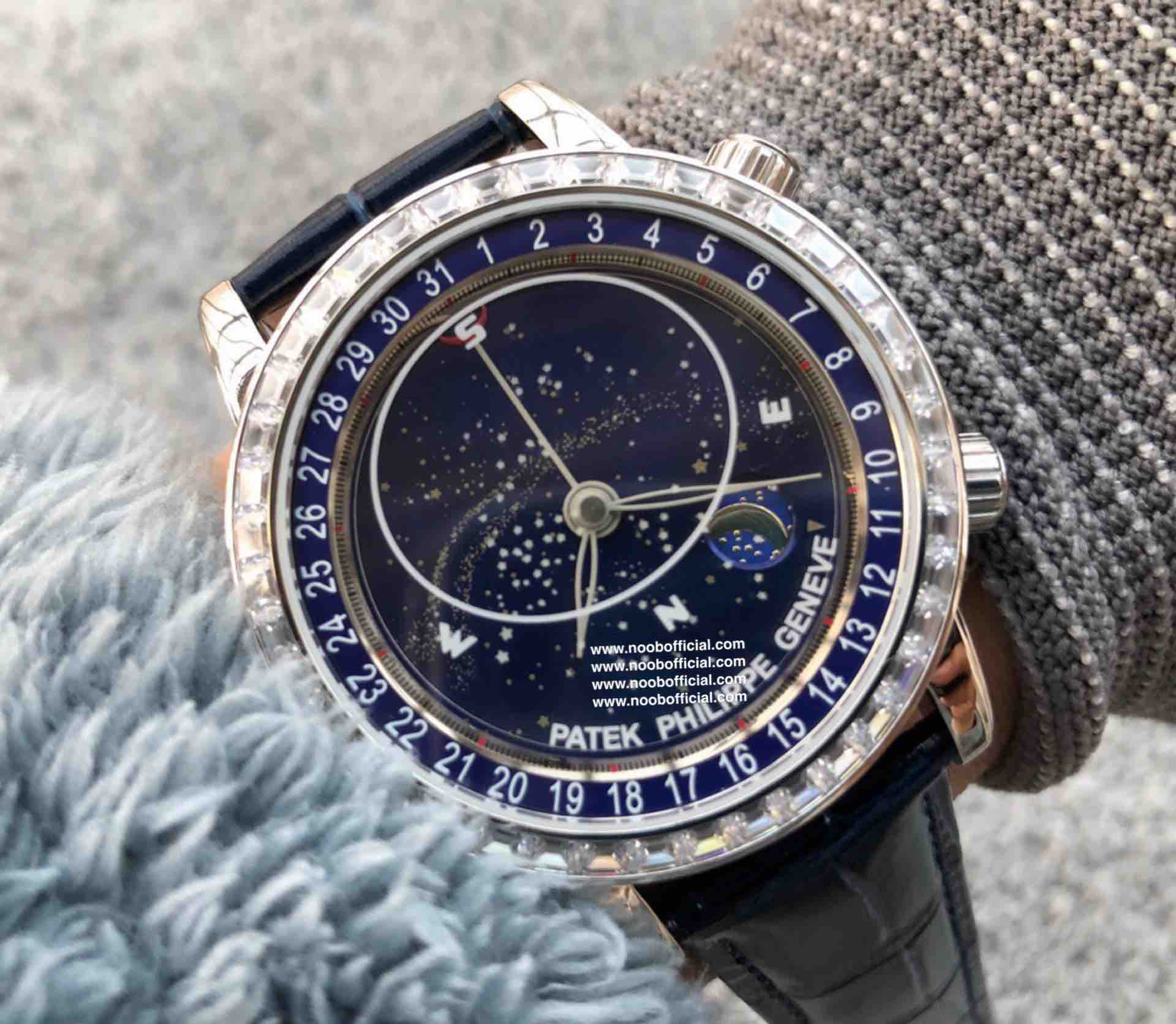PP Factory 2020最新力作 V3升级版 市场最高版本 顶级复刻 PP百达翡丽 星空5102天月款日内瓦苍穹系列,你可想象把星空佩戴在腕上吗?这款星空腕表独具特别星象功能,蓝色圆表盘上就能欣赏日内瓦苍穹图,还有金色月球运行轨迹,熬时20个月 采用进口9015改造而成的珍珠陀,和正品一样机芯,表盘上的月亮会根据天空的月亮月满圆 月蚀弯的情况自动变化 表壳前后玻璃采用先进技术处理让玻璃折射光提高,让表盘看起来更加通透 似乎没有玻璃的感觉,5字位把头调星空盘转动。本厂壳身百.达翡.丽花纹 花重金采cnc深雕刻 立体感凹凸感 超强。升级了24小时自转的星空 手表尺寸43毫米!PP匠心之作 值得你拥有!