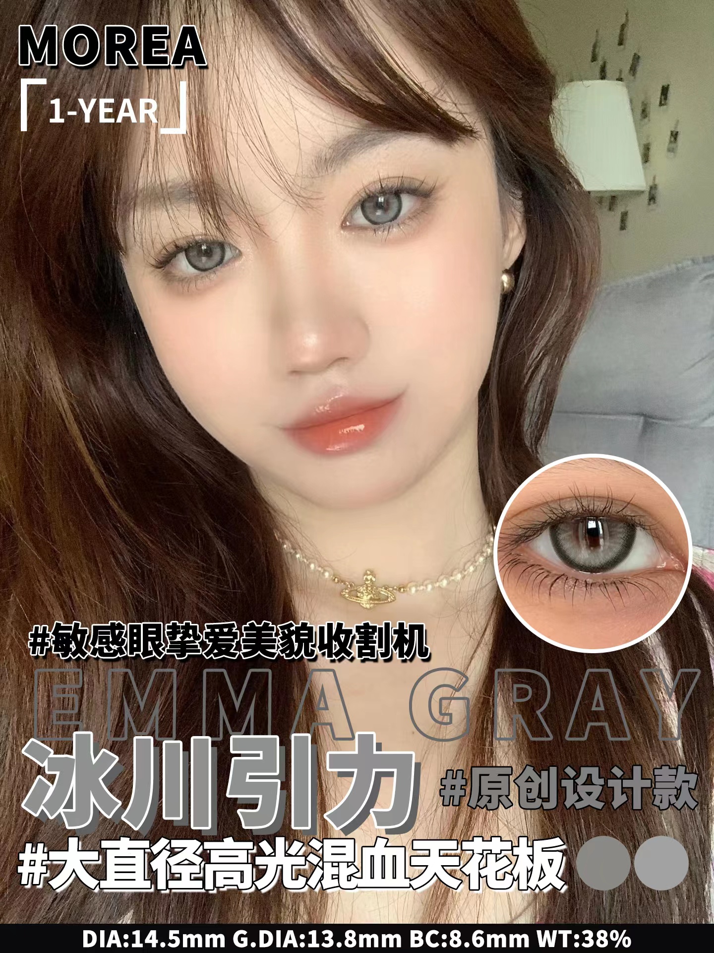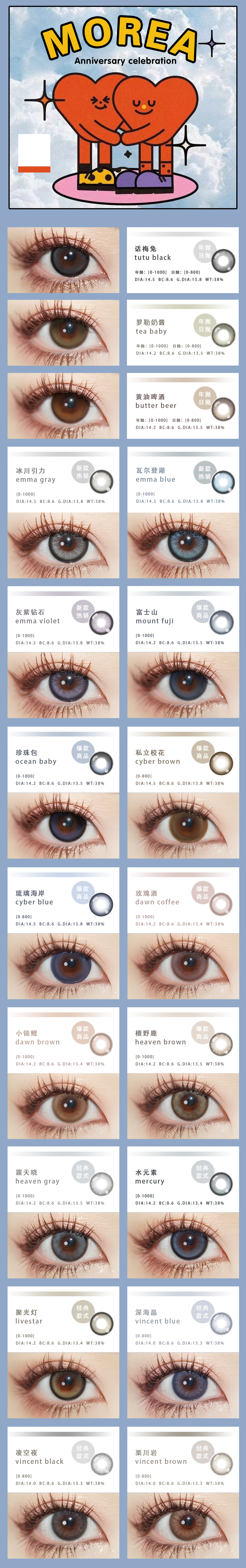 morea 年抛美瞳 冰川引力 直径14.5mm着色13.8mm 0-1000含525/575