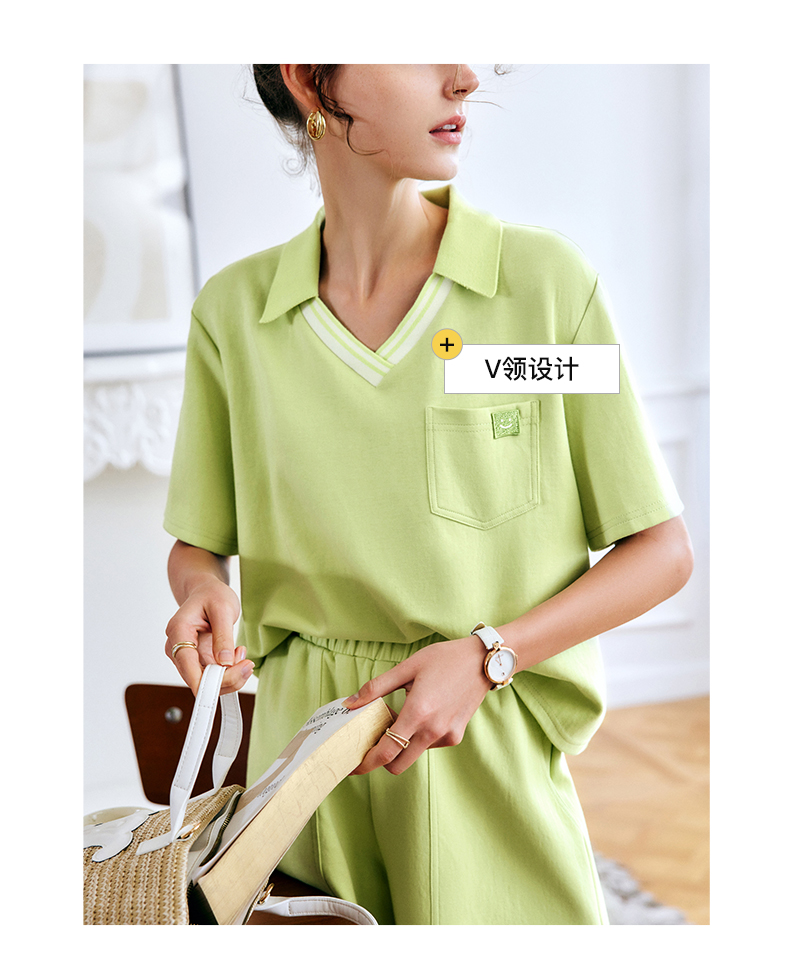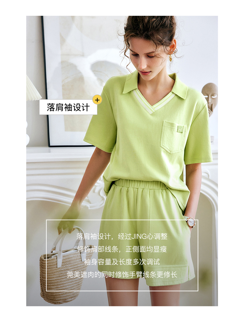 欧芮儿OLrain法式休闲时尚套装女夏季2022年新款T恤短裤两件套
