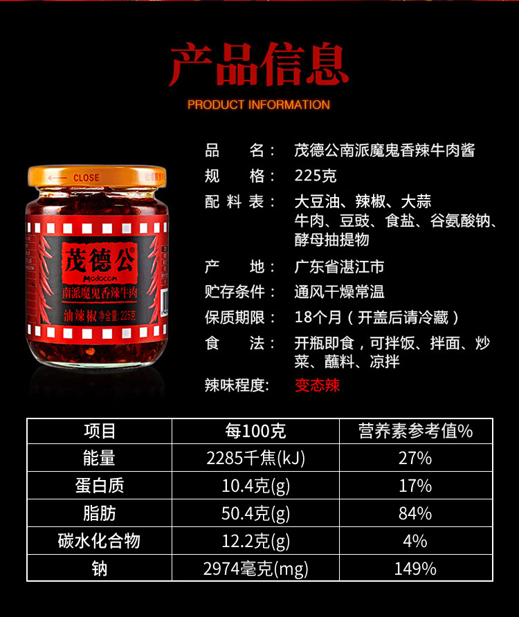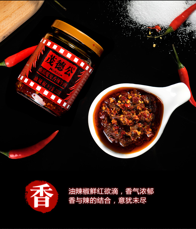 茂德公香辣牛肉辣椒酱超辣魔鬼特辣自制农家拌饭拌面下饭辣酱225g
