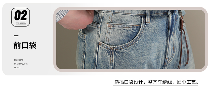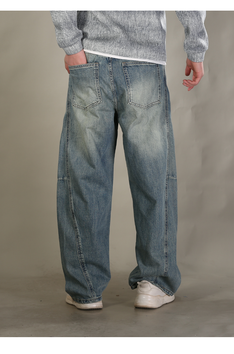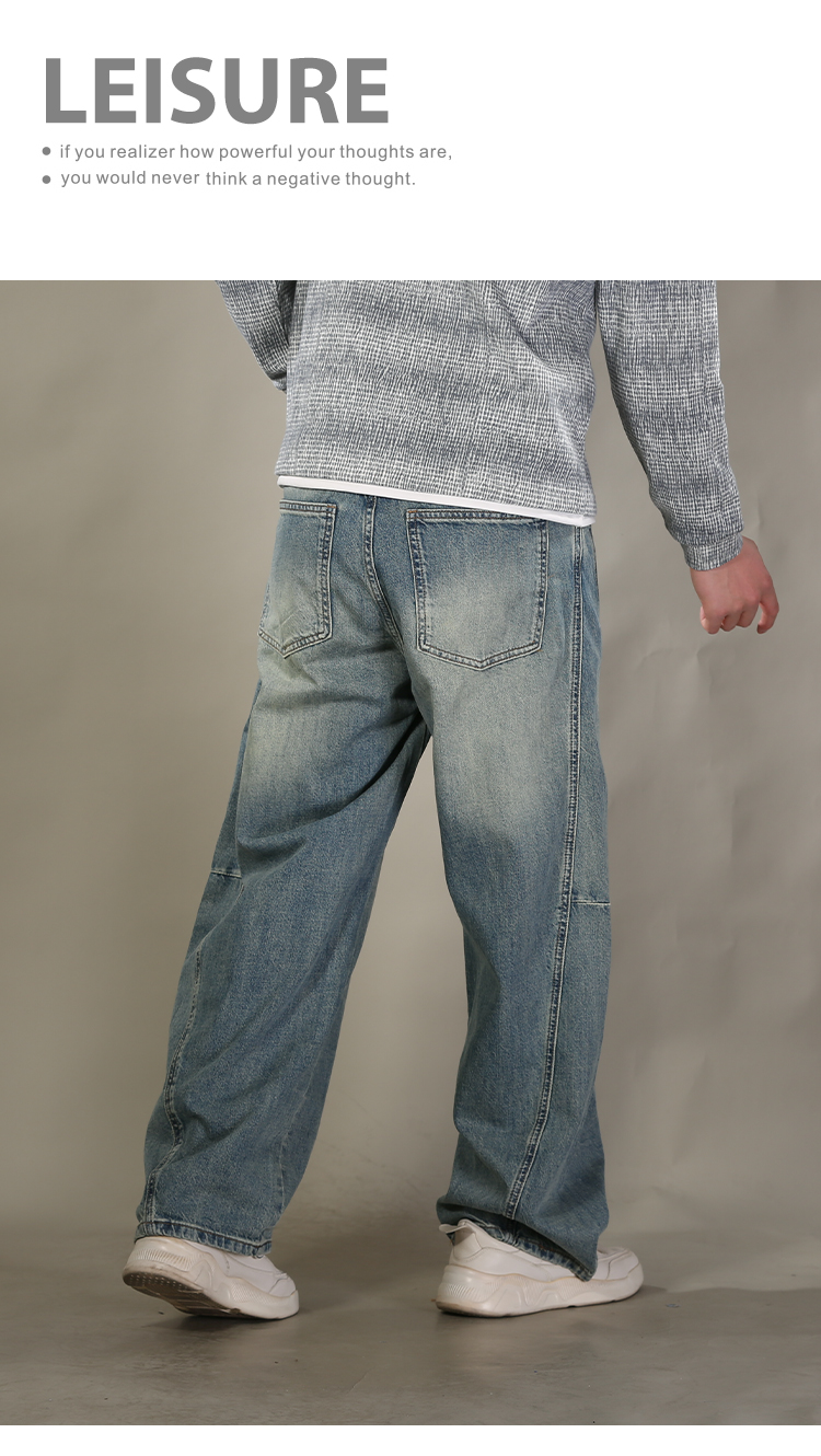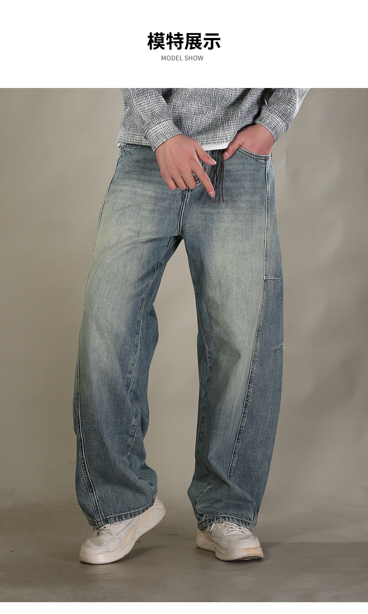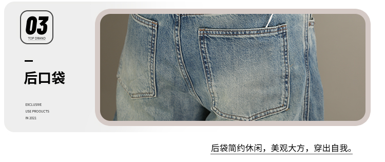 DRONKOO 2026 半松紧腰铜色钮扣裤袢吊绳前后破骨中厚牛仔长裤