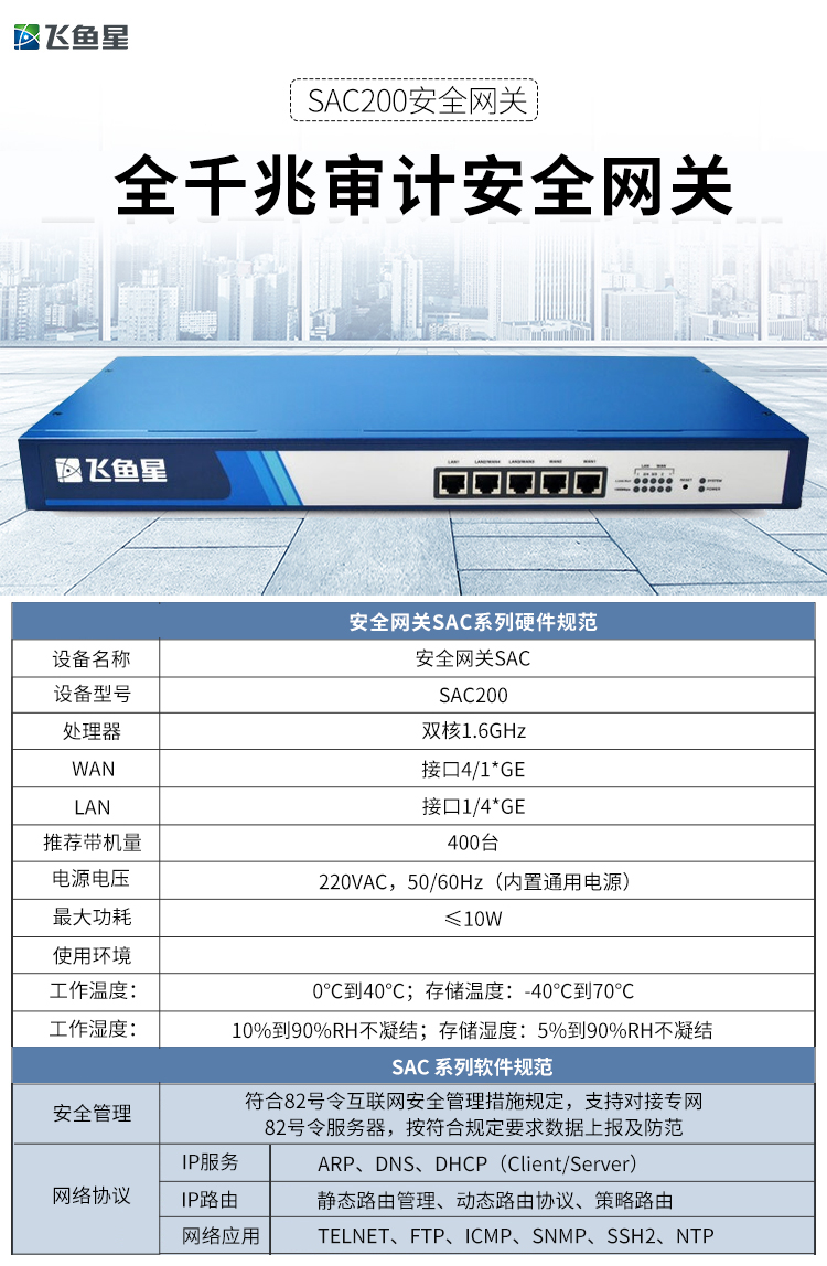 飞鱼星 SAC200 千兆企业路由器 行为管理/VPN路由