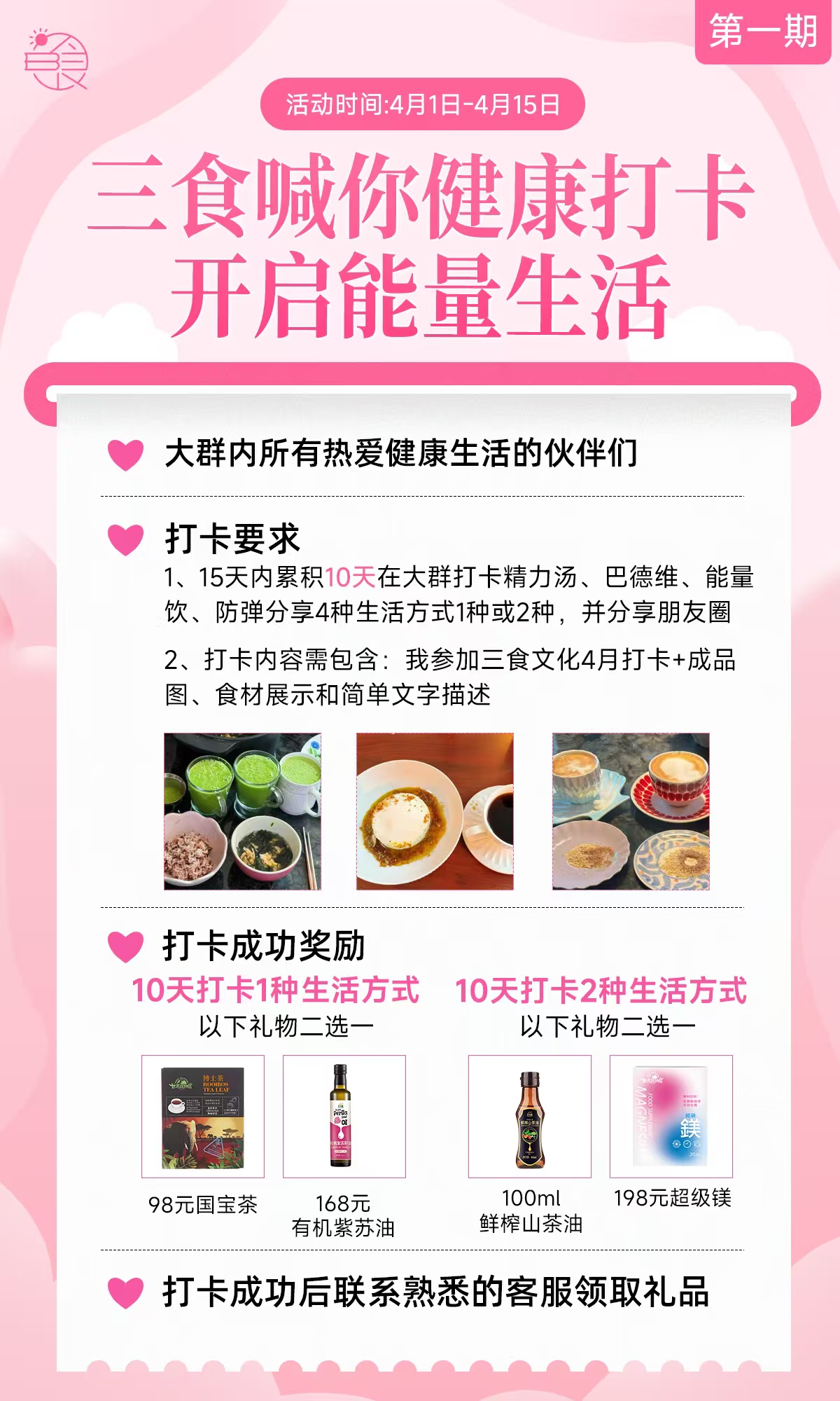 4月打卡福利,10天打卡2种生活方式,礼物2选1