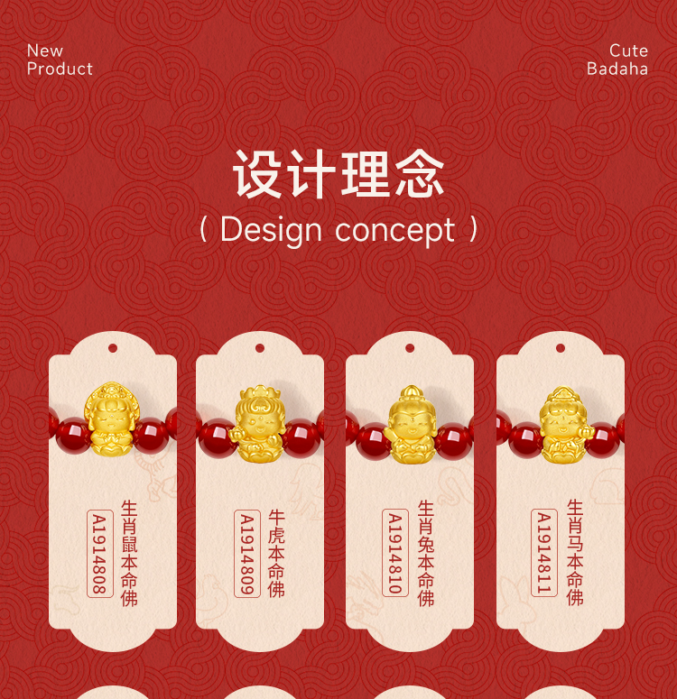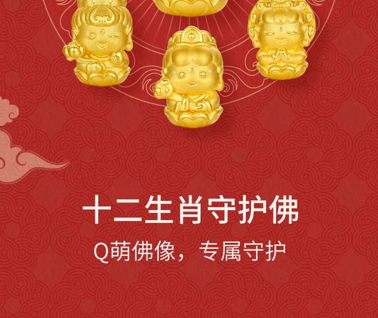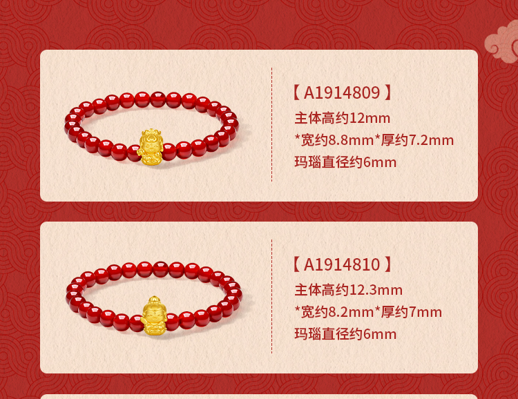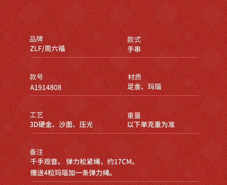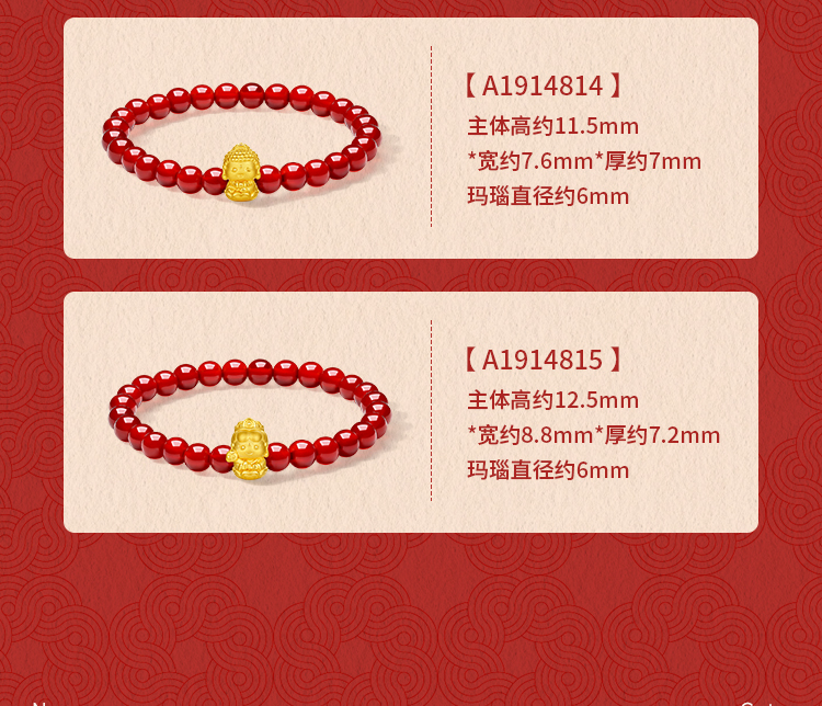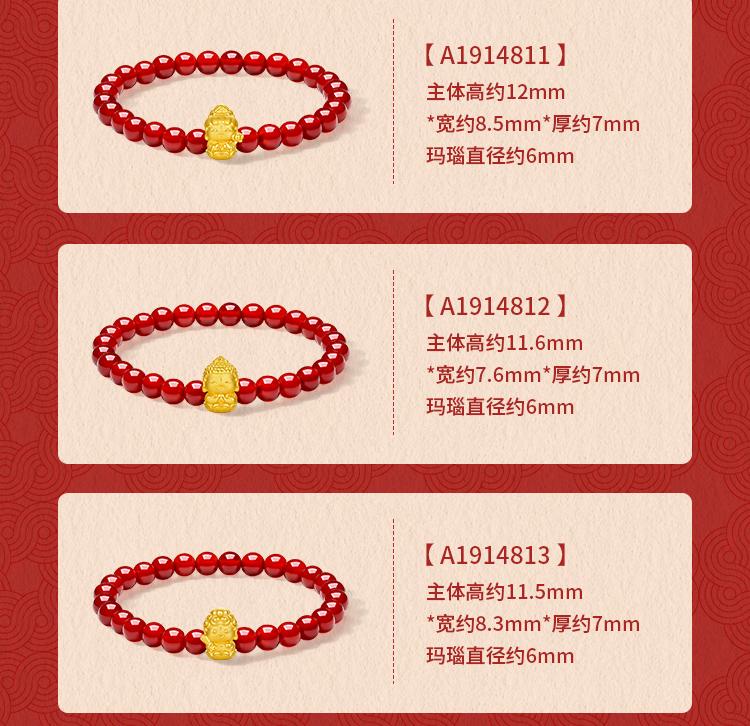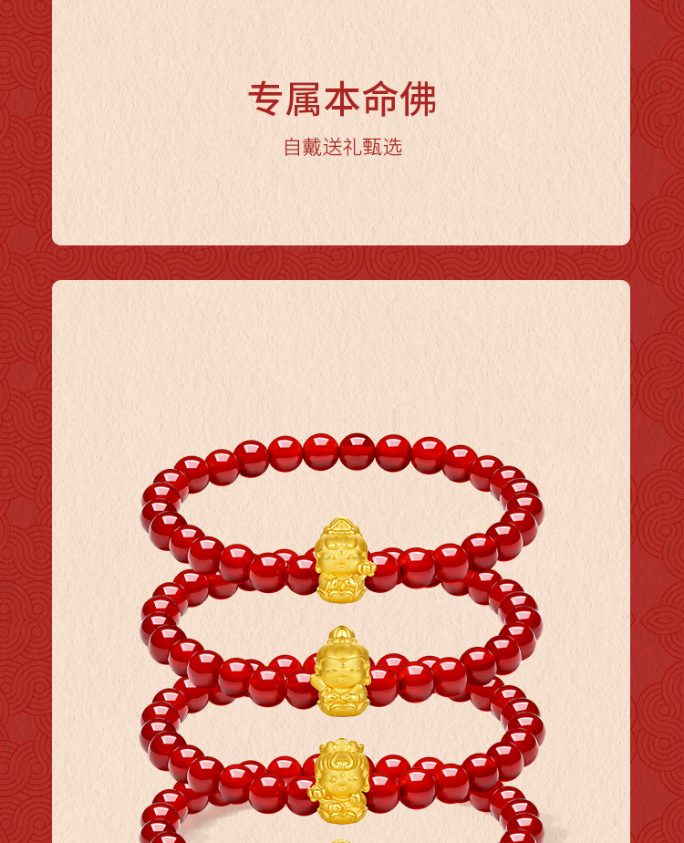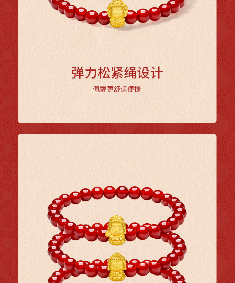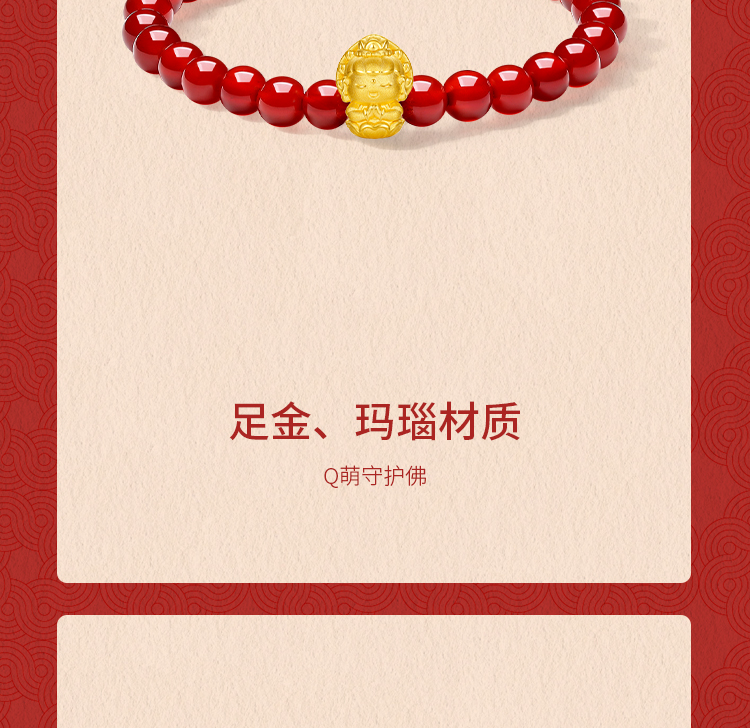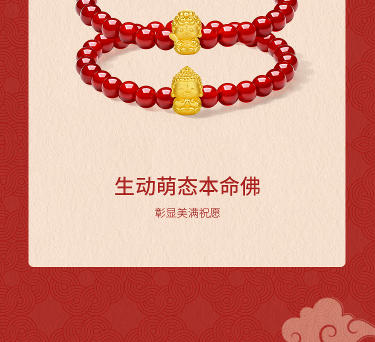 周六福黄金手串女3d硬金定价十二生肖守护萌佛红玛瑙本命年生肖蛇