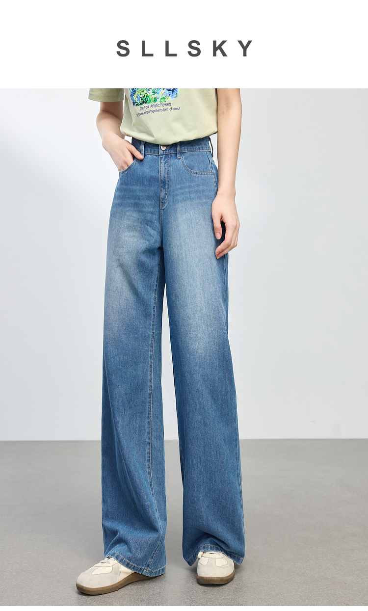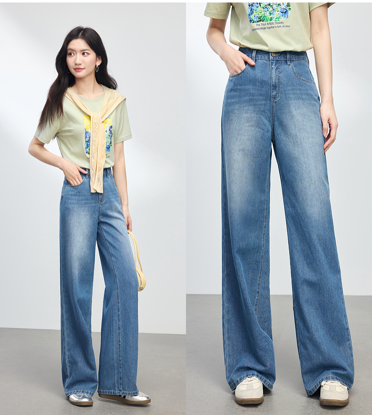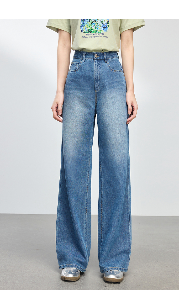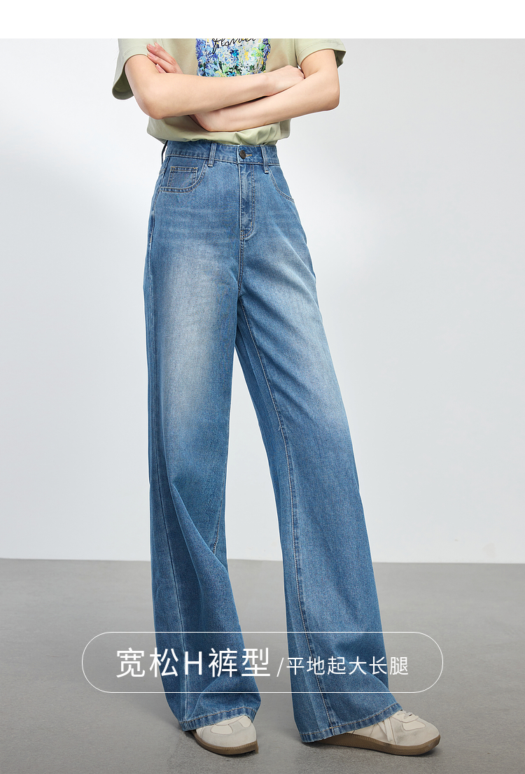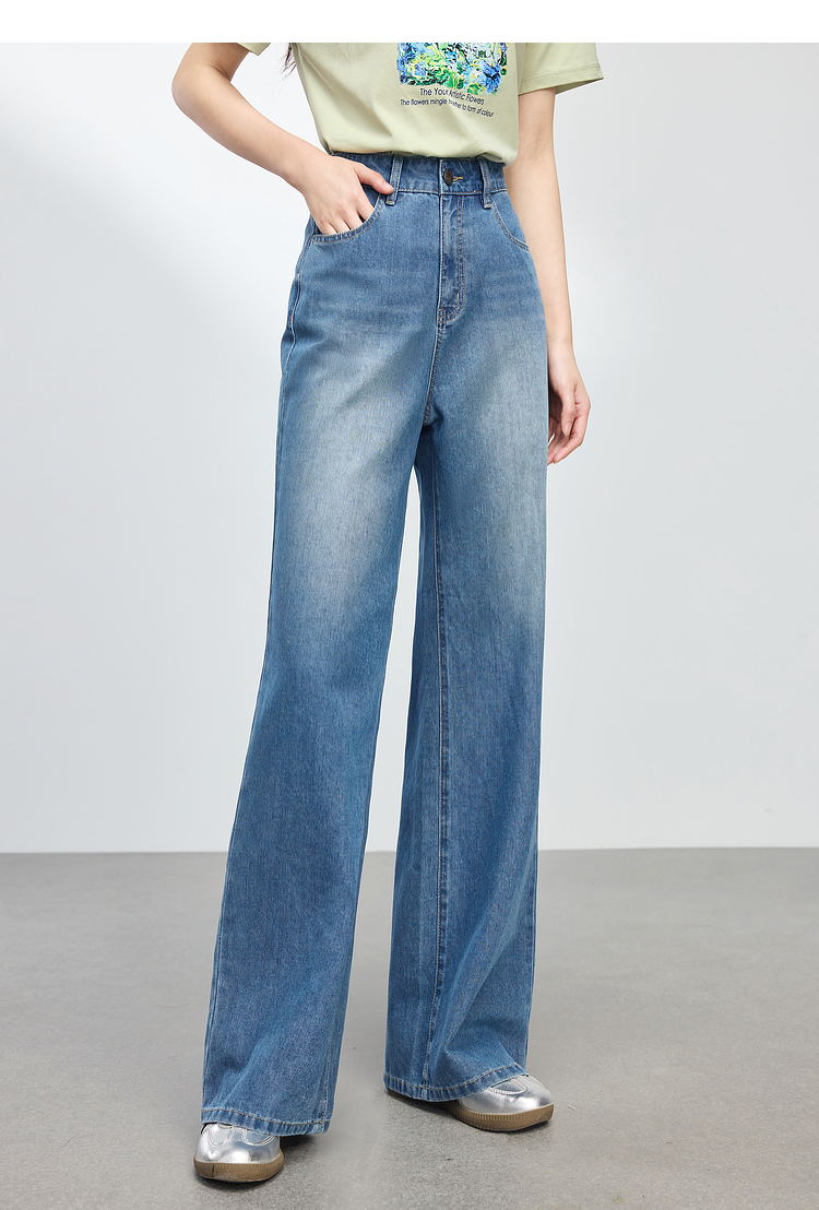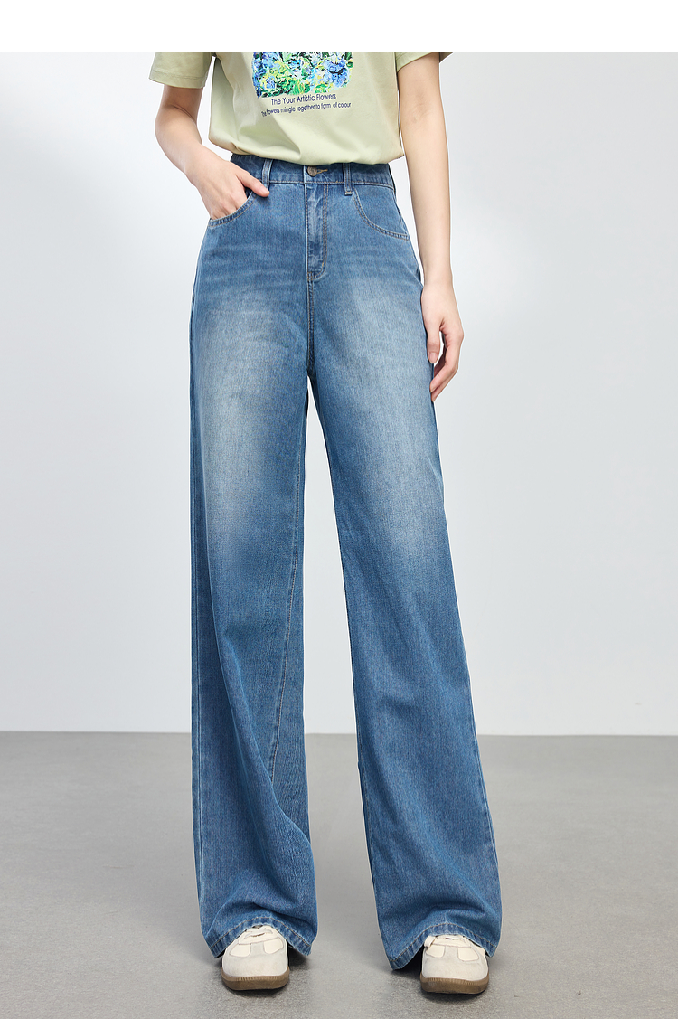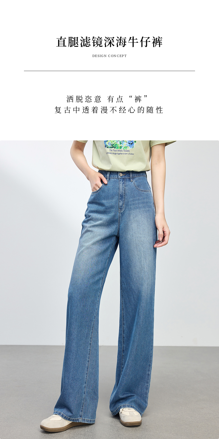 【专属特价】熙世界复古直筒牛仔裤女春夏薄款2025新款宽松显瘦窄版阔腿长裤子