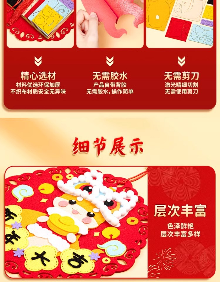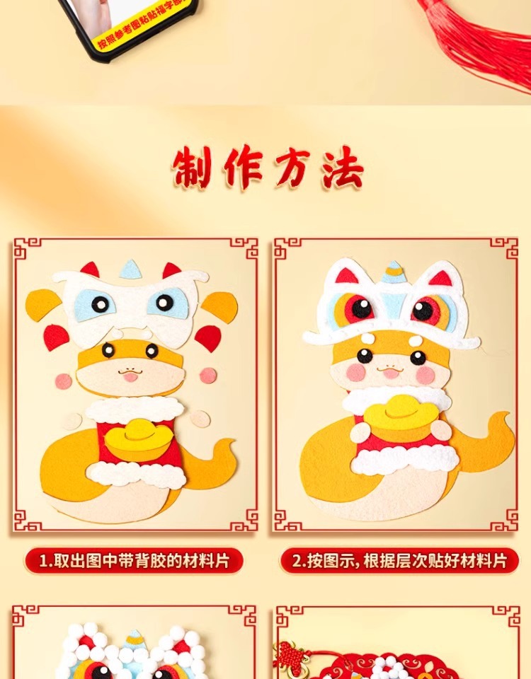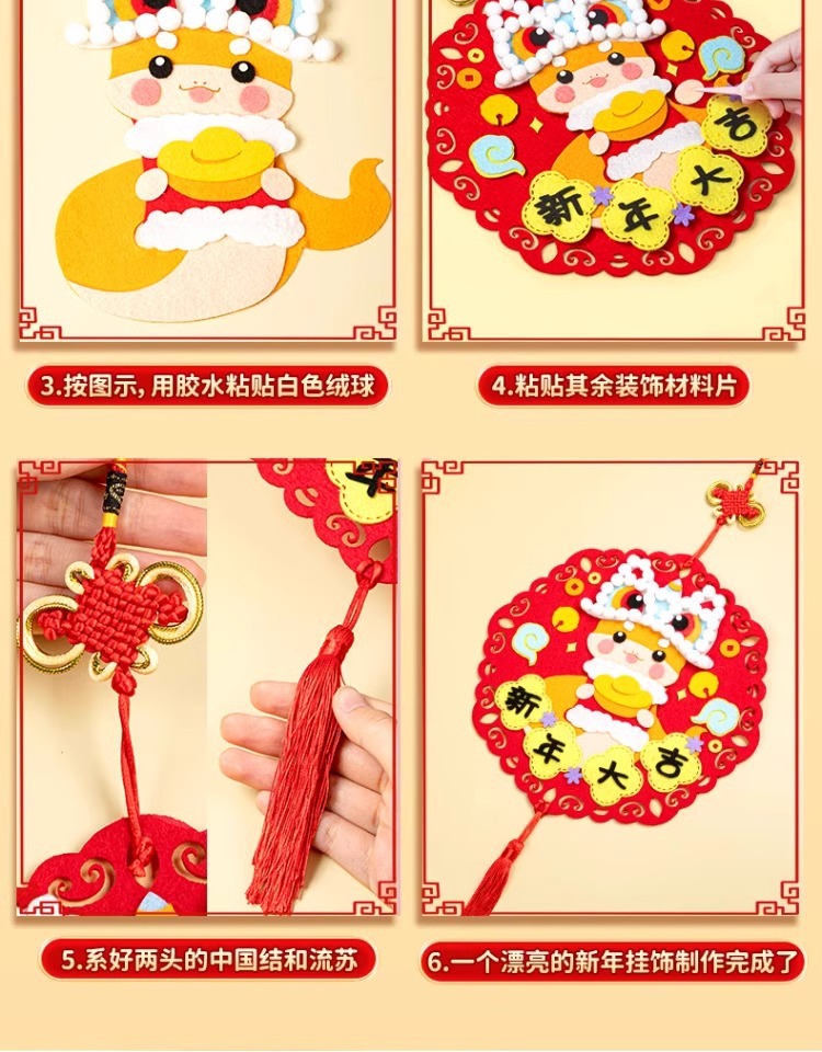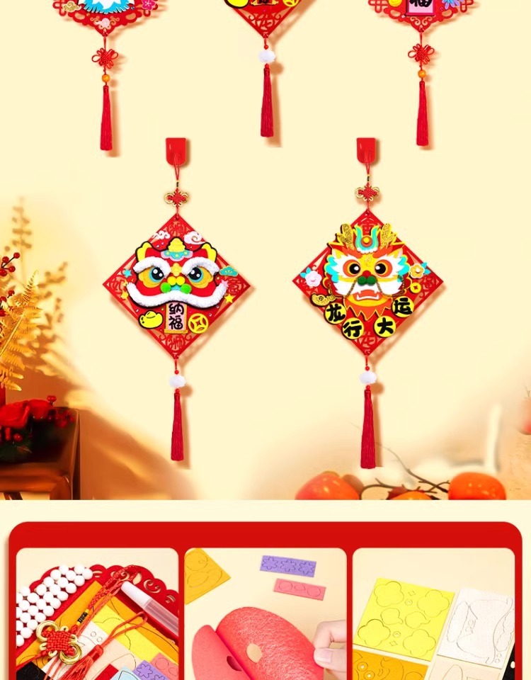 【学龄前适用的新年福字贴画】2026年新款新娘元旦手工 DIY 材料包 儿童春节挂饰制作玩具