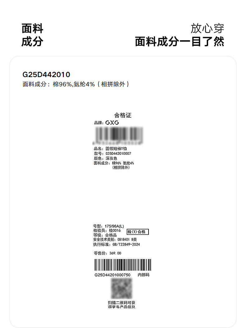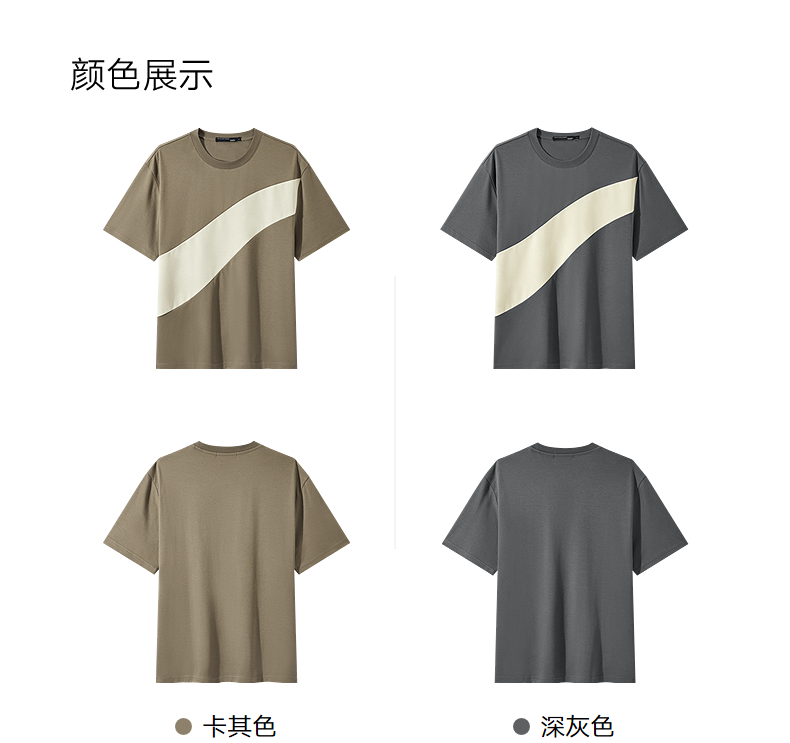 2025春夏热卖GXG男士短袖经典圆领拼接设计休闲百搭男士短袖