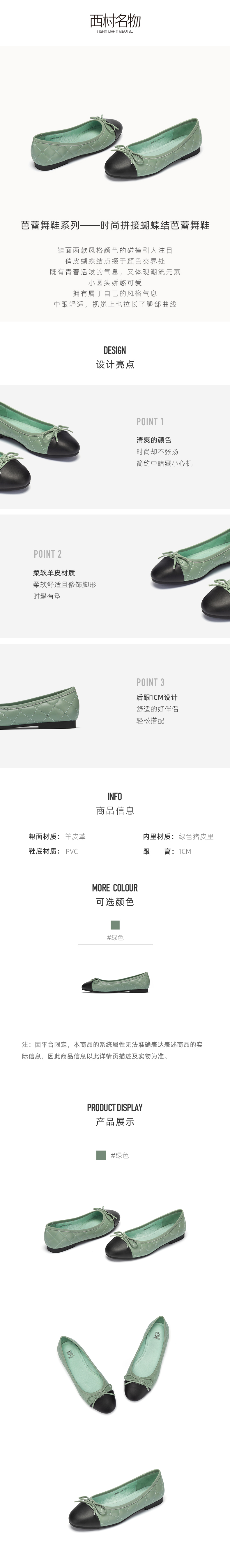西村名物2020秋季新品奶奶鞋女平底浅口简约蝴蝶结芭蕾舞鞋X20CE30471