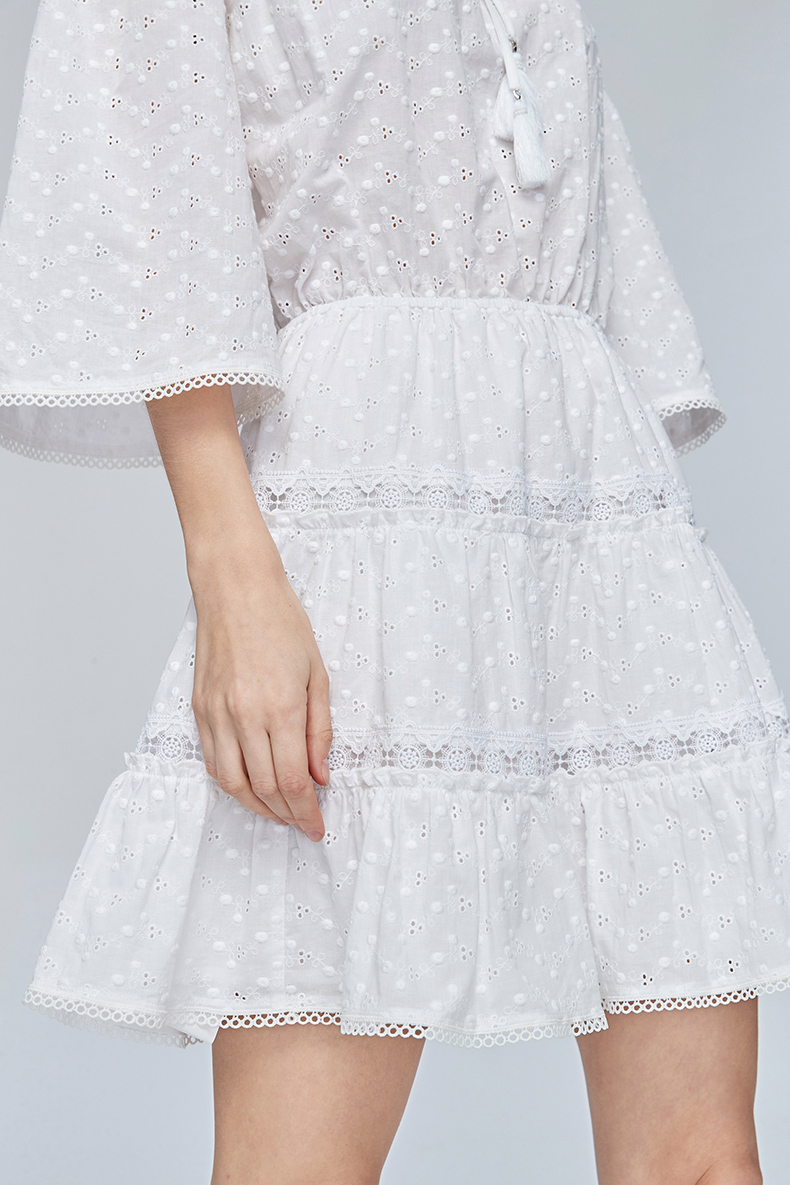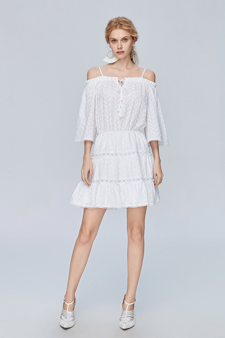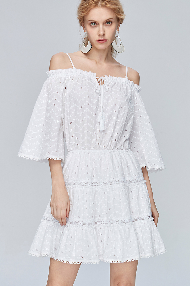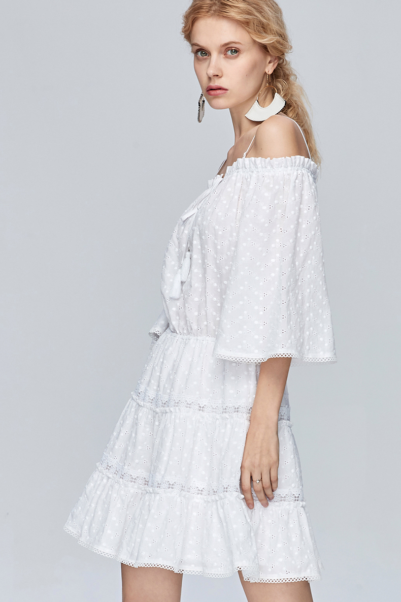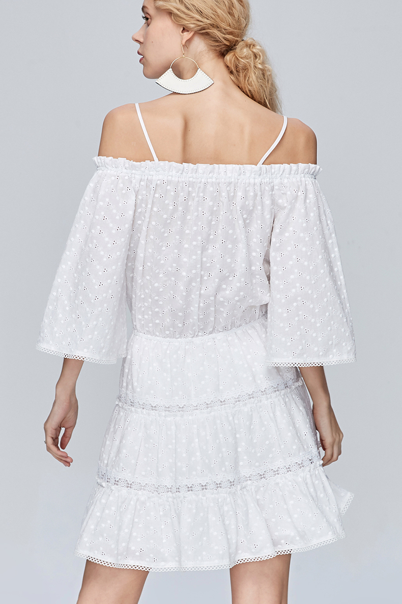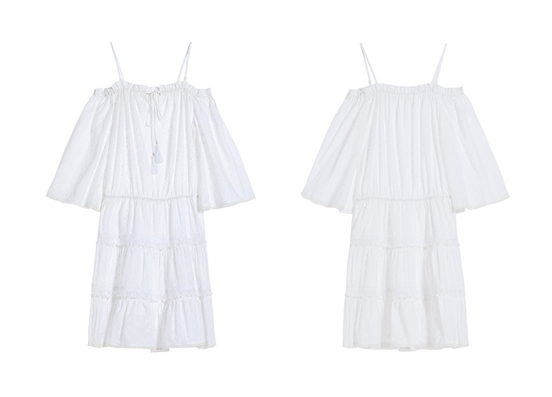 Miss Sixty夏季一字领喇叭袖高收腰白色超仙气吊带连衣裙692DJ8290000
