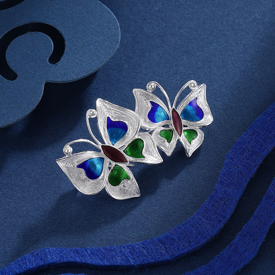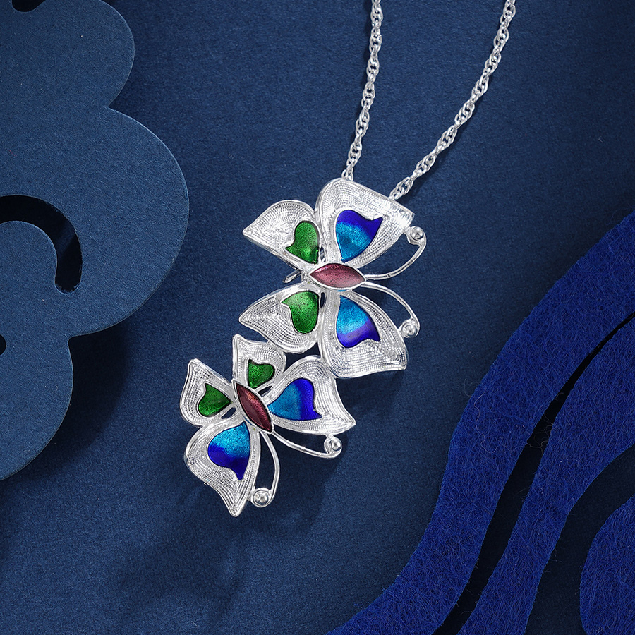 子佩集S990银【庆相逢】胸针吊坠两用【MXXZ001】(不含链)花丝珐琅彩蝴蝶2311