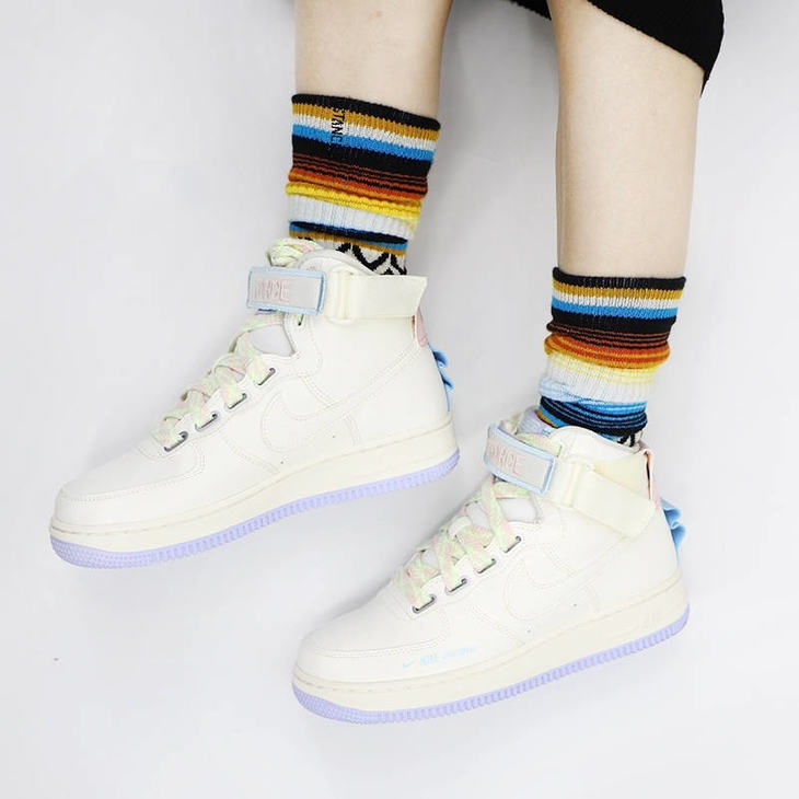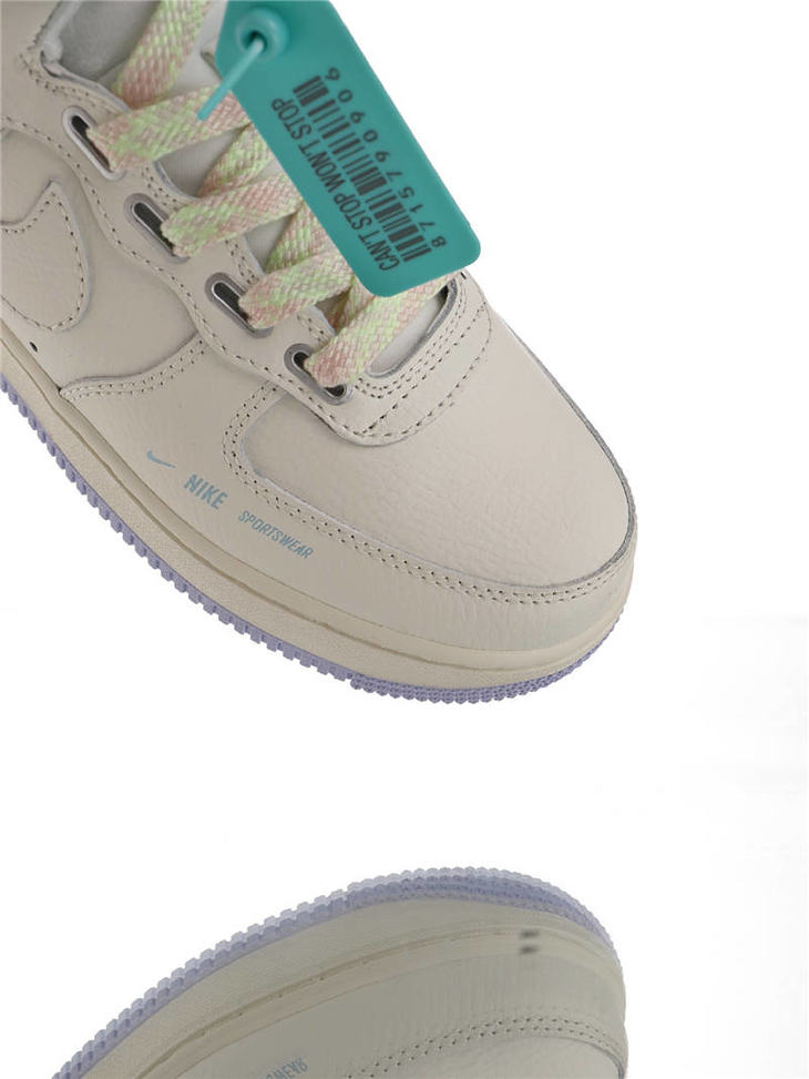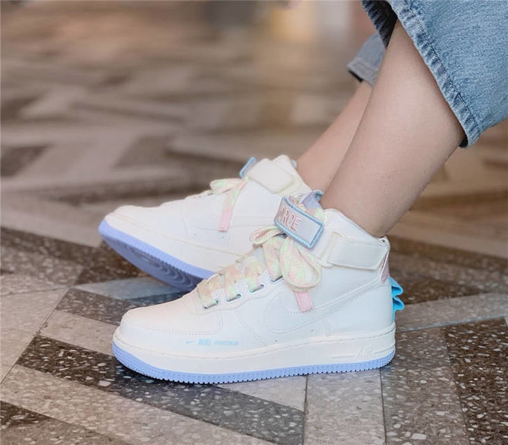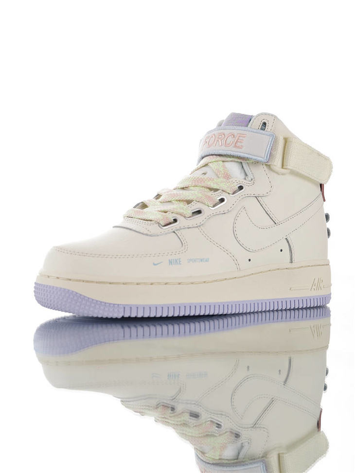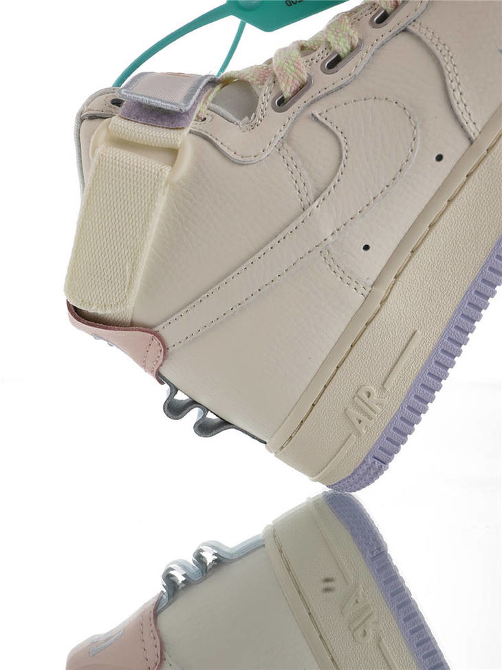 耐克Nike Wmns Air Force 1 High UT 替换LOGO魔术贴 原模具开发打造 硬质头层荔枝纹皮革 内置全掌air sole气垫 皮革乳白浅紫