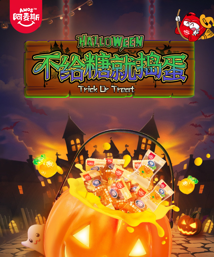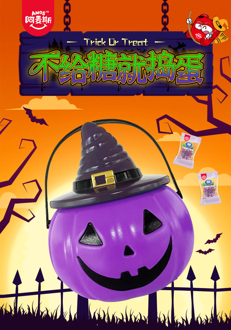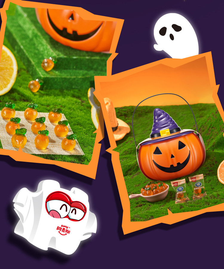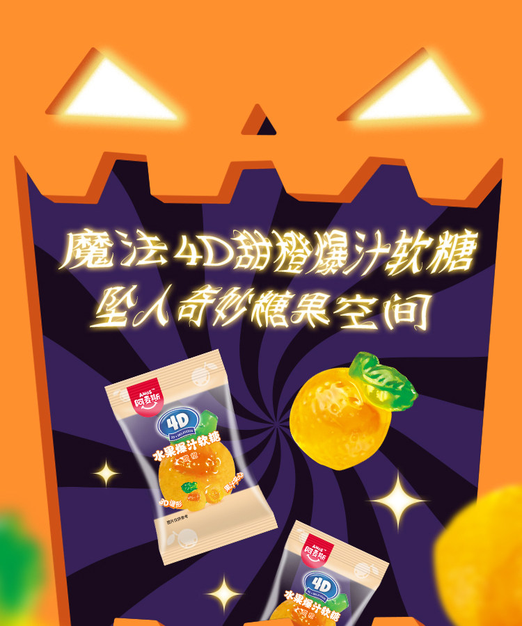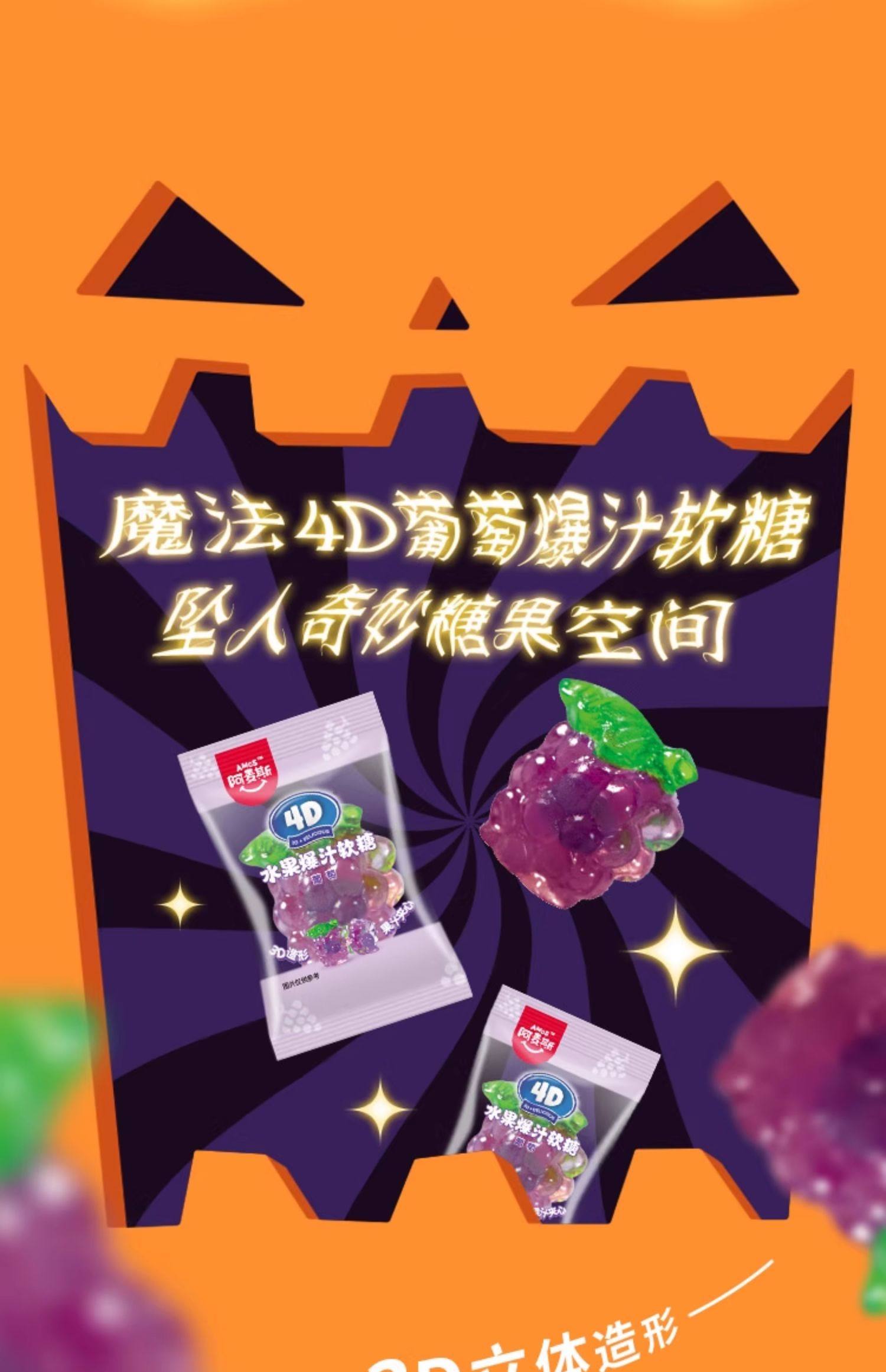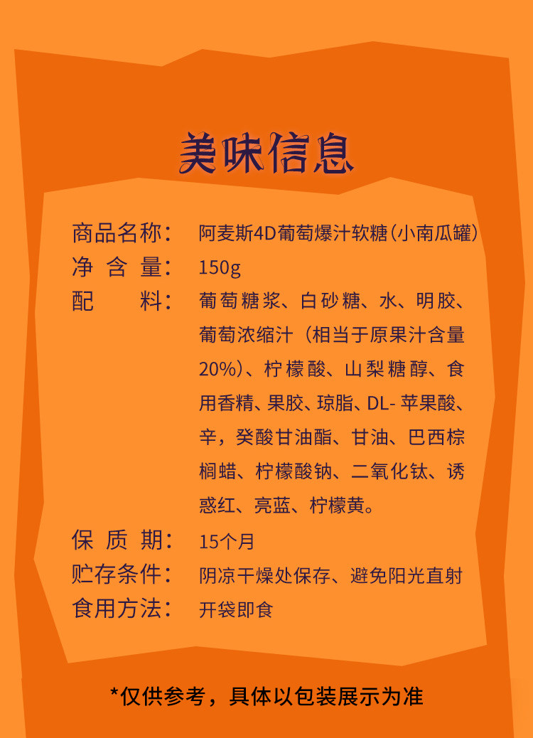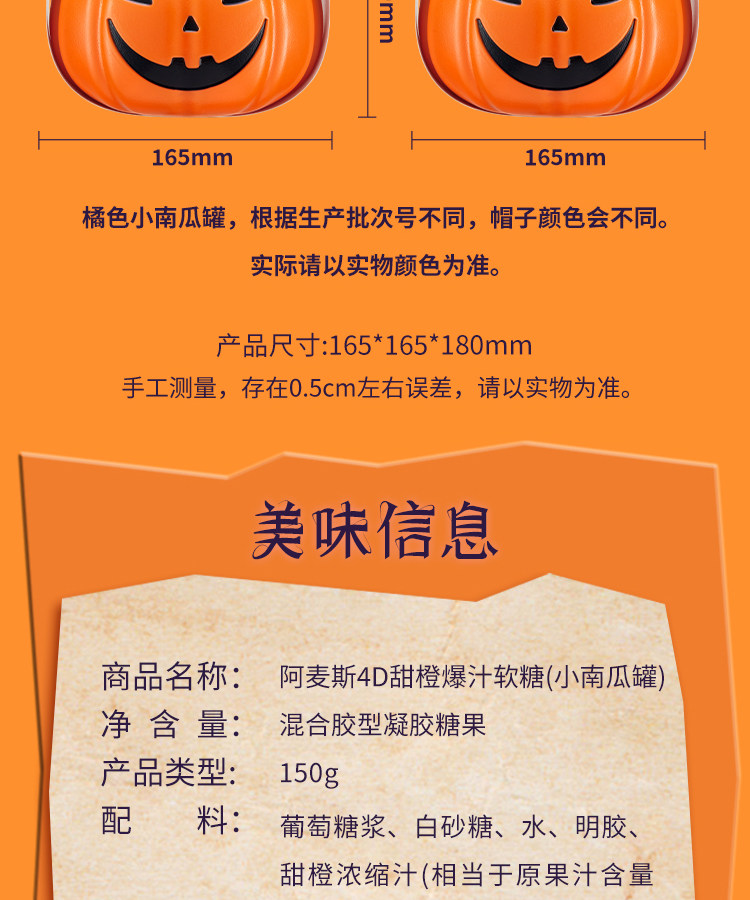 阿麦斯4D爆汁软糖小南瓜罐150g(葡萄/甜橙)
