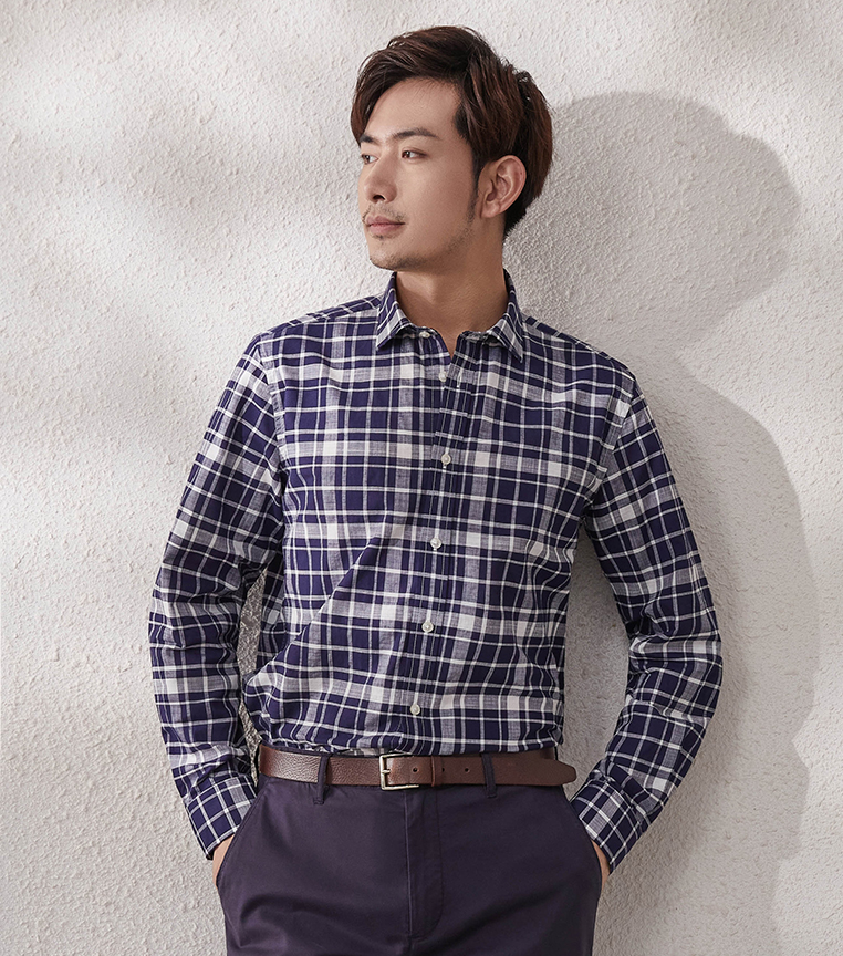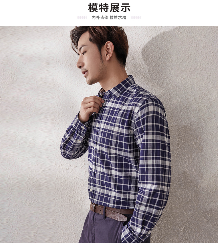【纯棉蓝白格纹衬衫】 71211017 男士衬衣